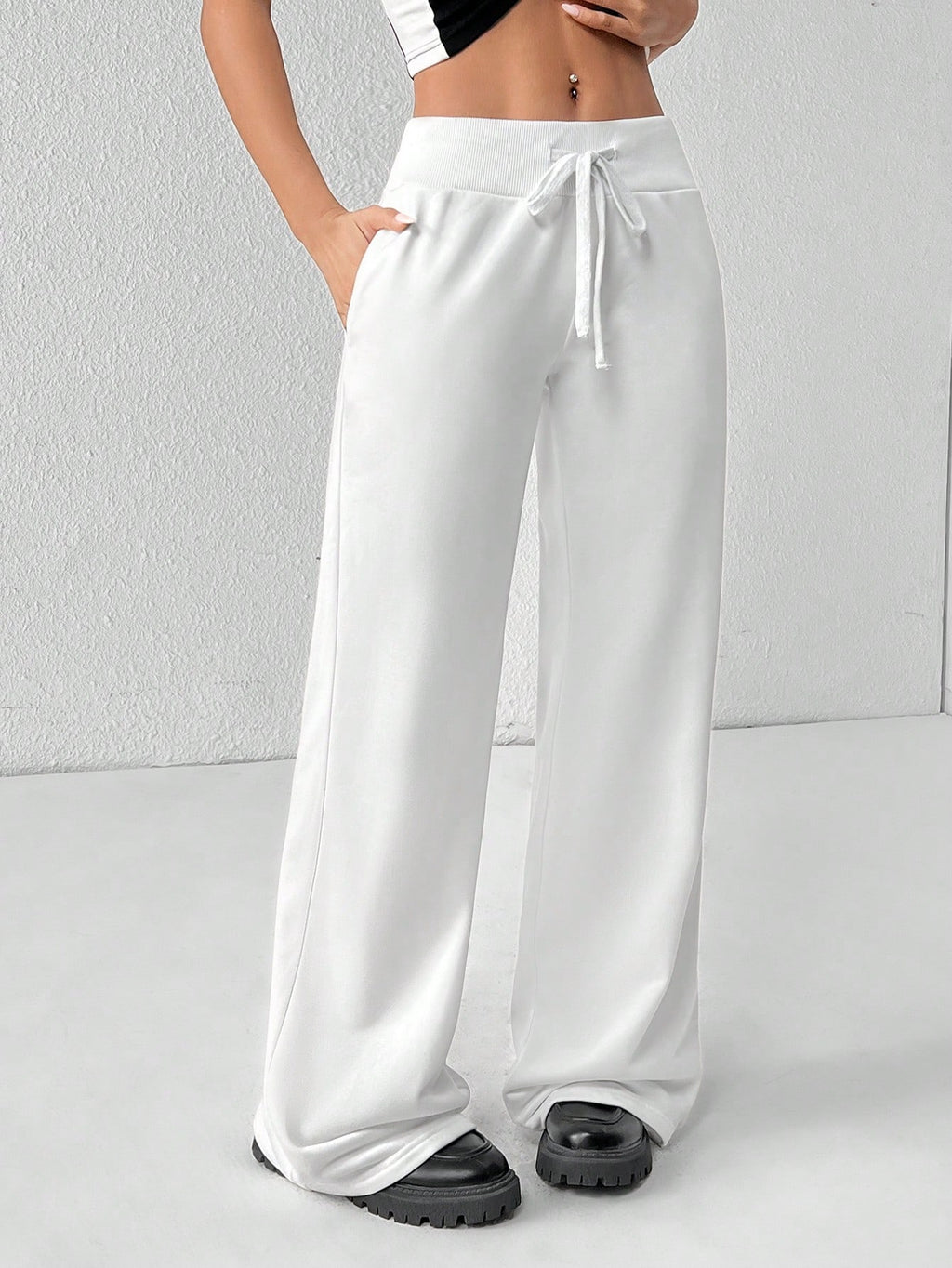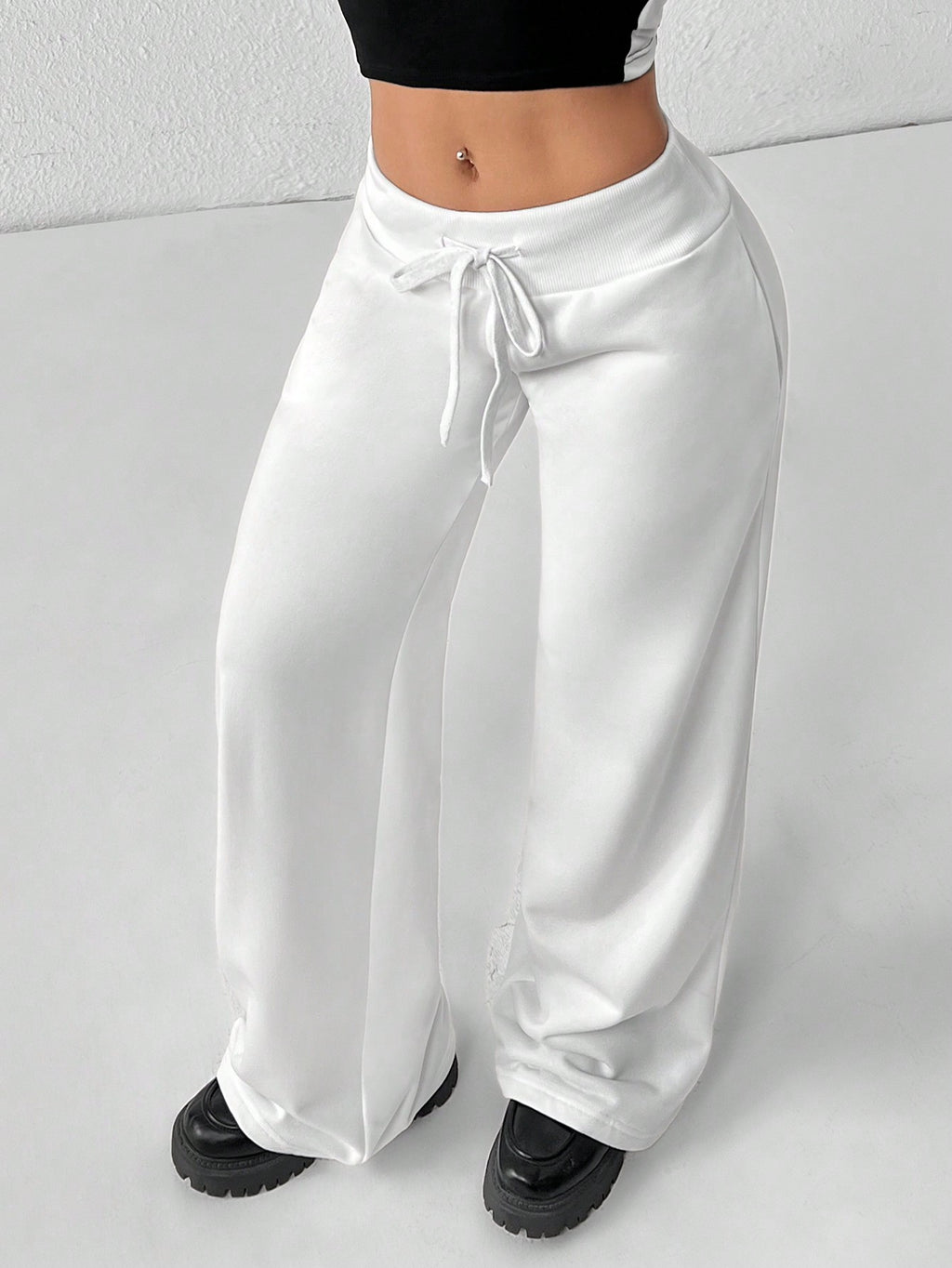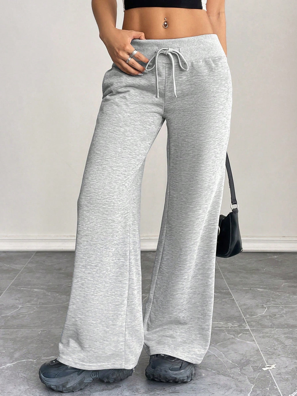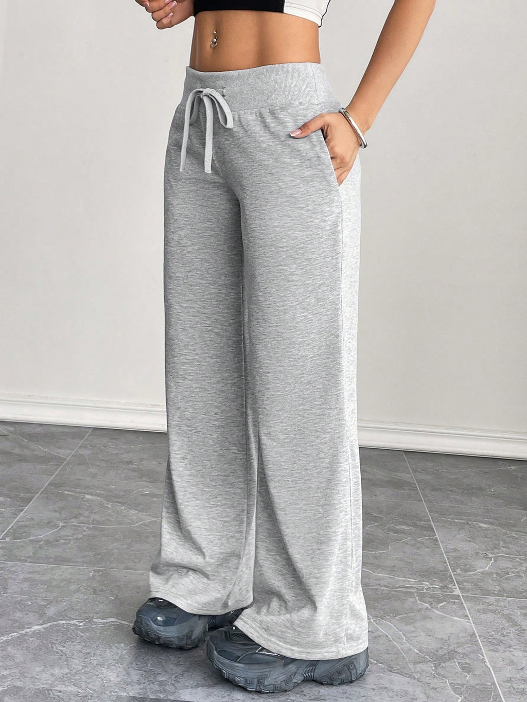 BELLAVOG Comfortable And Casual Plain Knitted Low-Rise Wide-Leg Women's Sweatpants