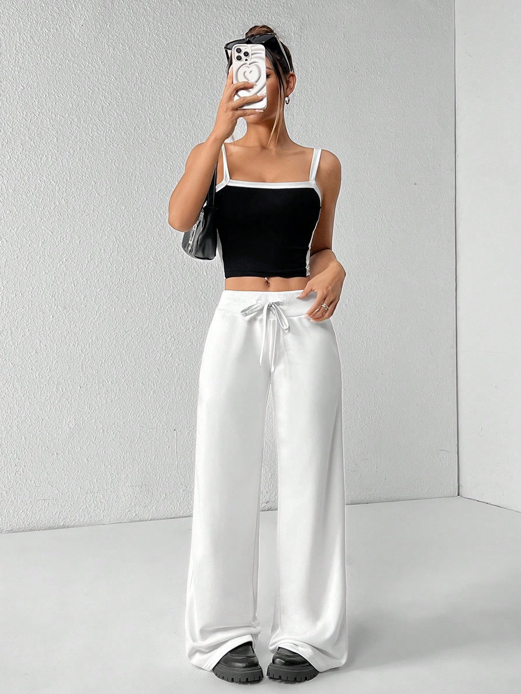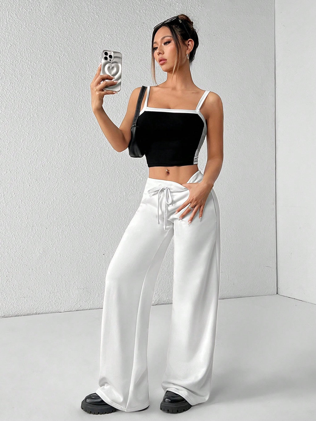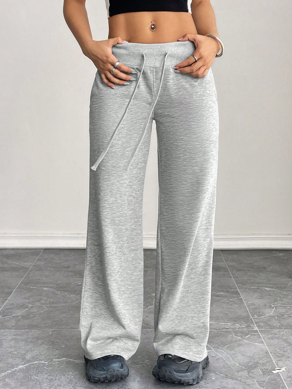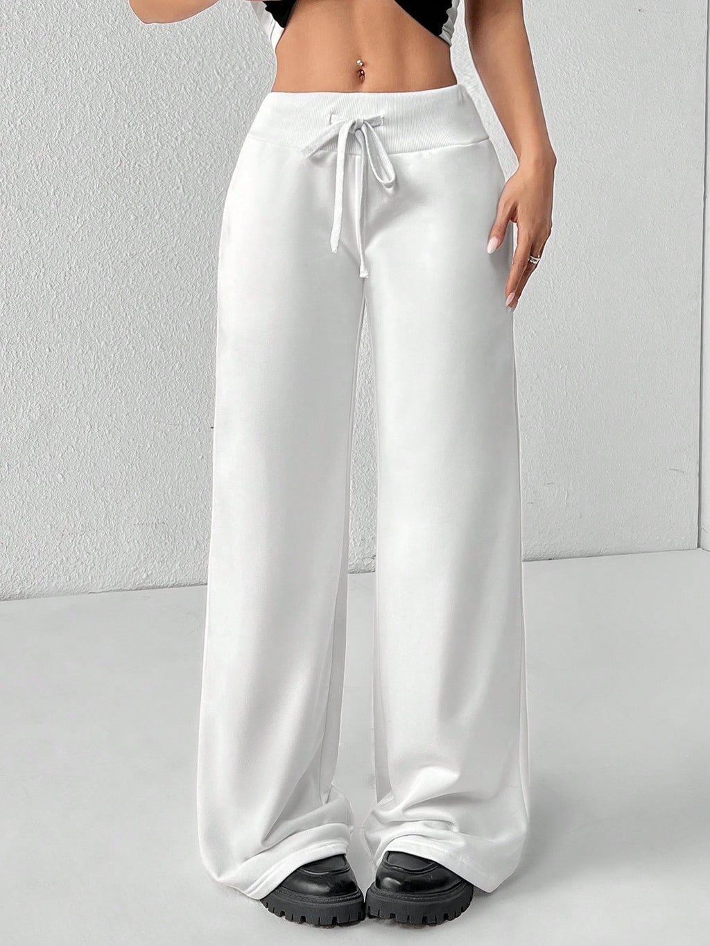 BELLAVOG Comfortable And Casual Plain Knitted Low-Rise Wide-Leg Women's Sweatpants