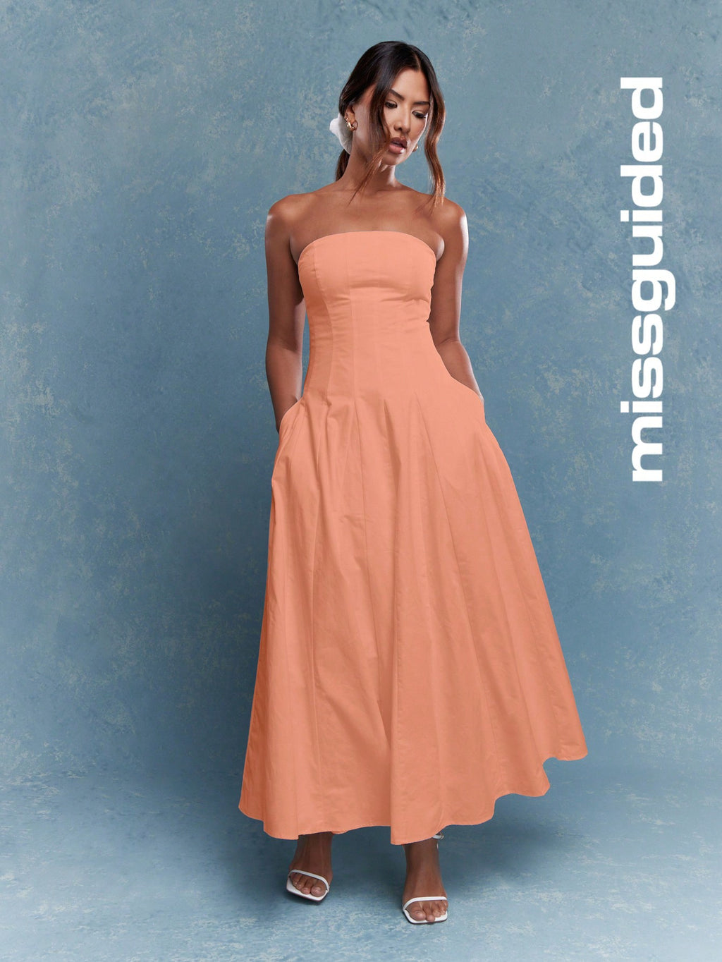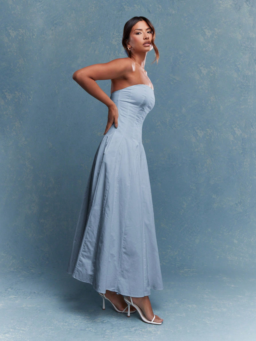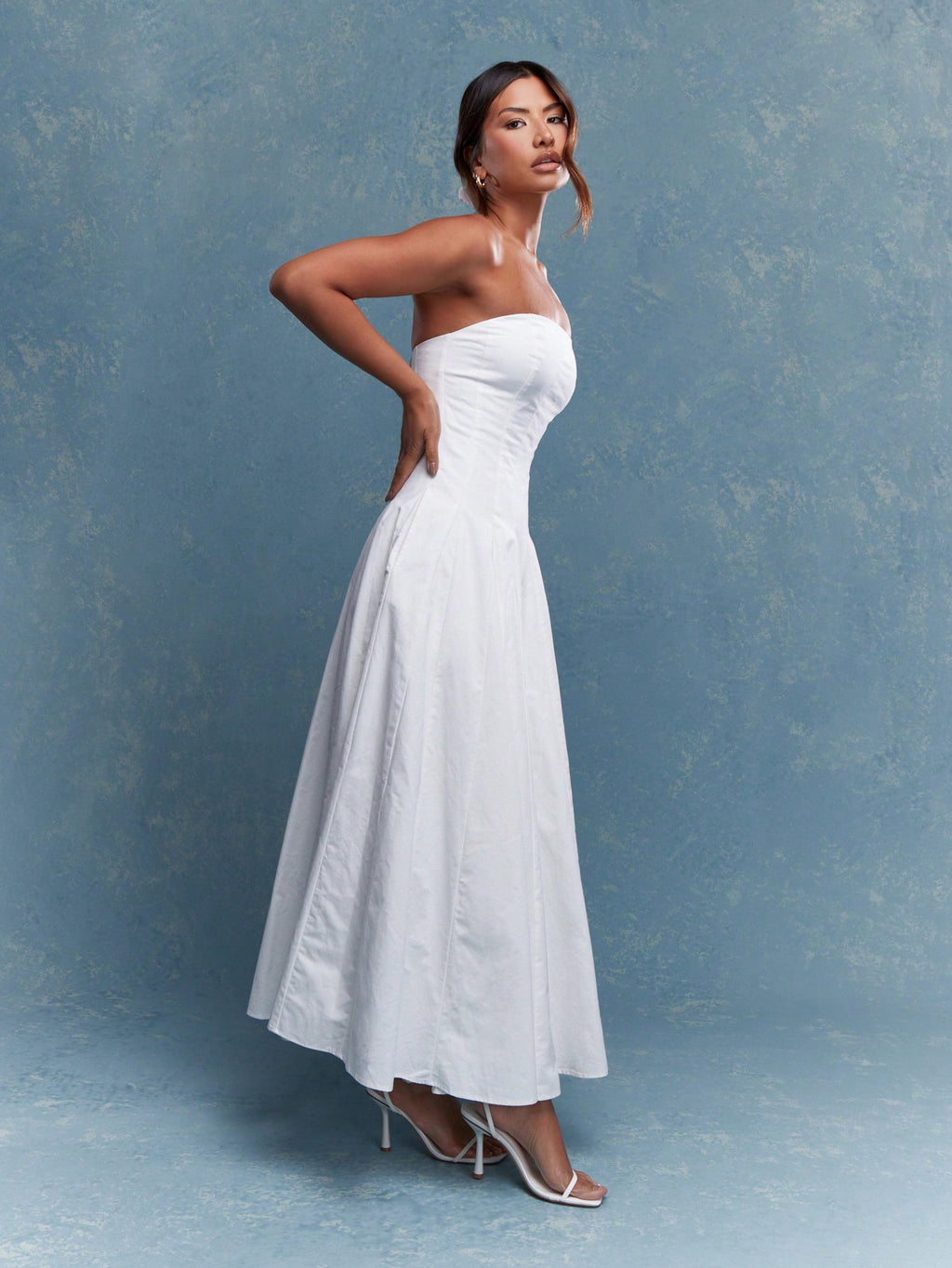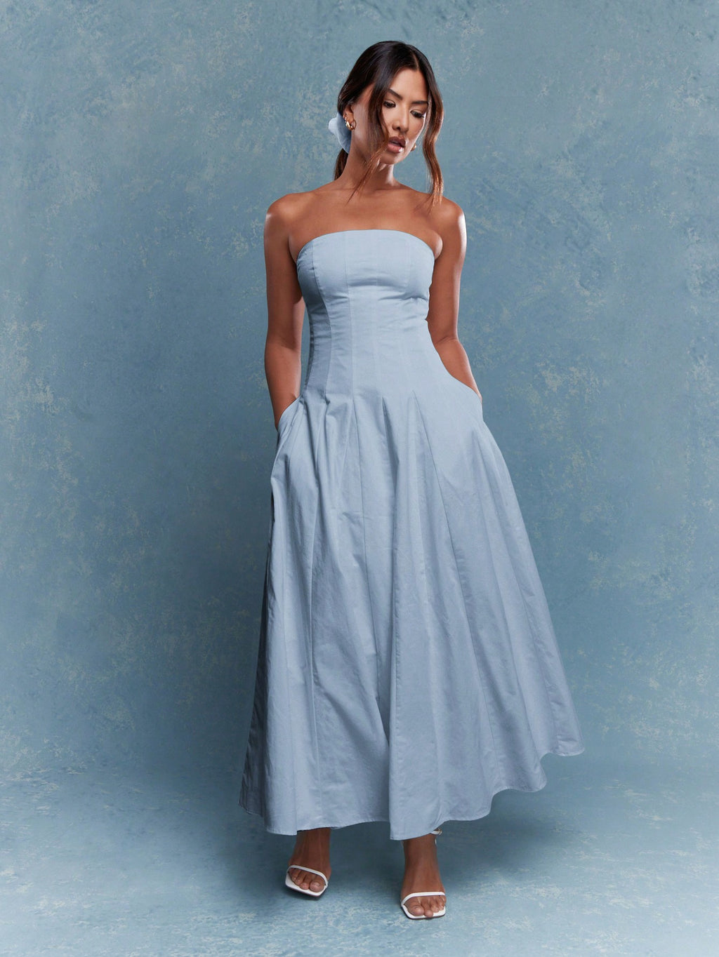 BELLAVOG Corset Bust Pleated Strapless Bandeau Maxi Dress With Scrunchie Mother Day Outfit Cute Sundress