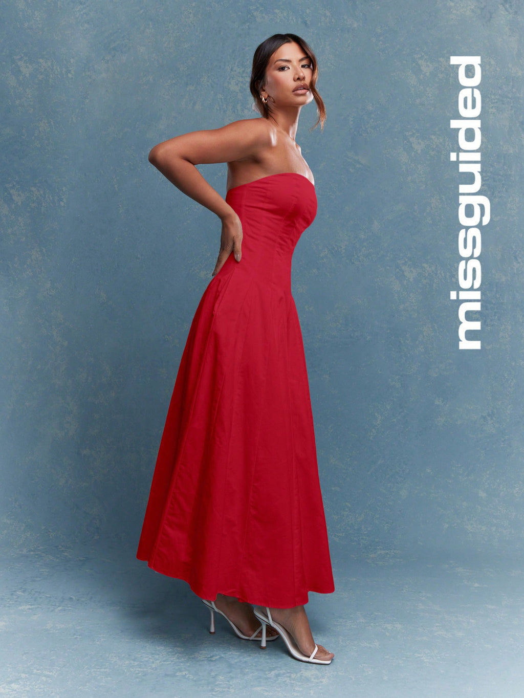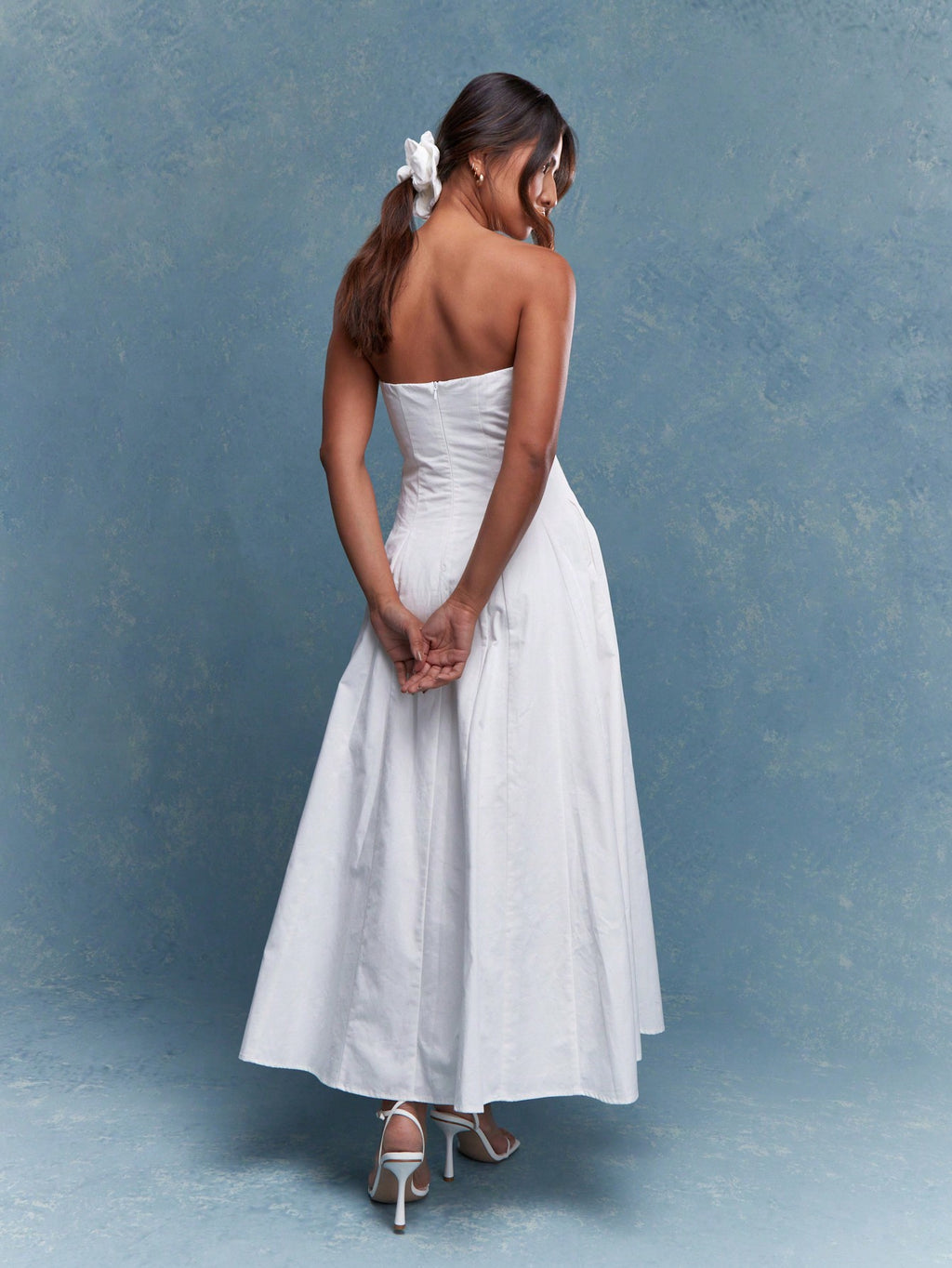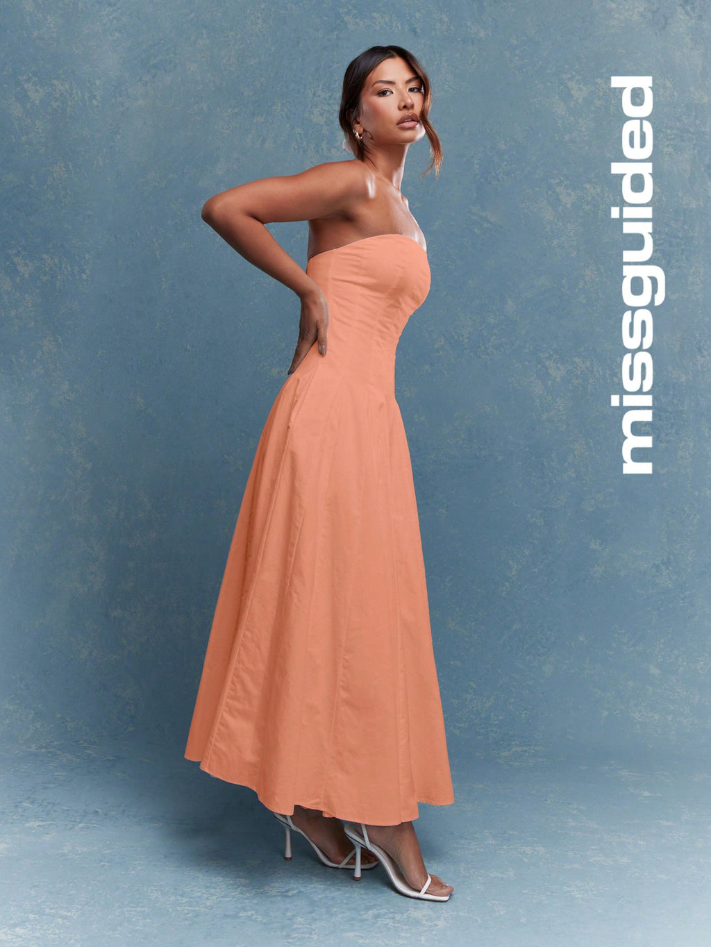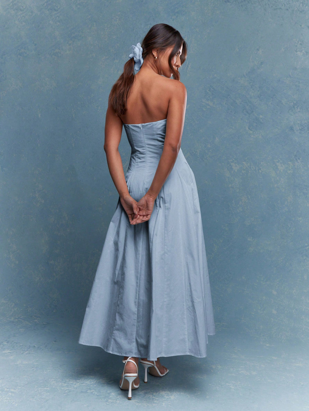 BELLAVOG Corset Bust Pleated Strapless Bandeau Maxi Dress With Scrunchie Mother Day Outfit Cute Sundress
