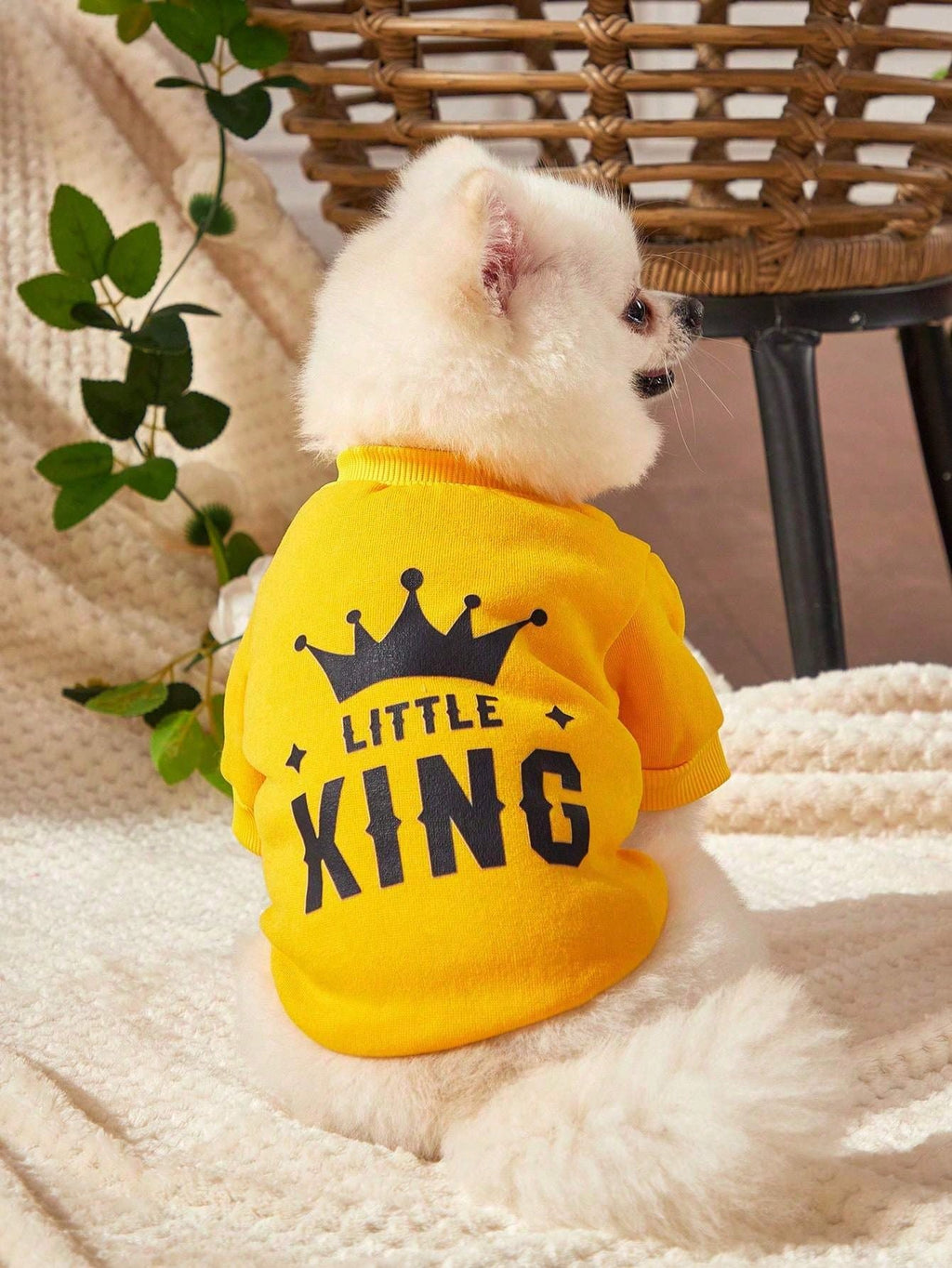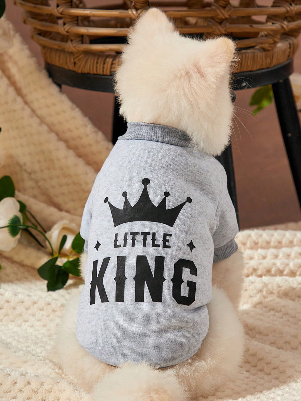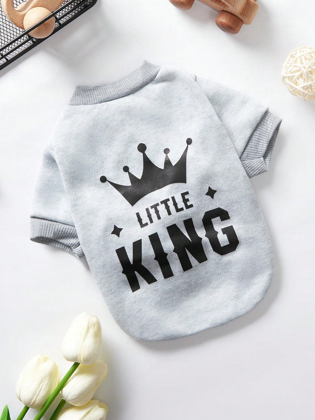 BELLAVOG Debiesn Artist Girlcore 1pc Gray King Crown Printed Pet Sweatshirt Without Hood For Keeping Warm, Holiday