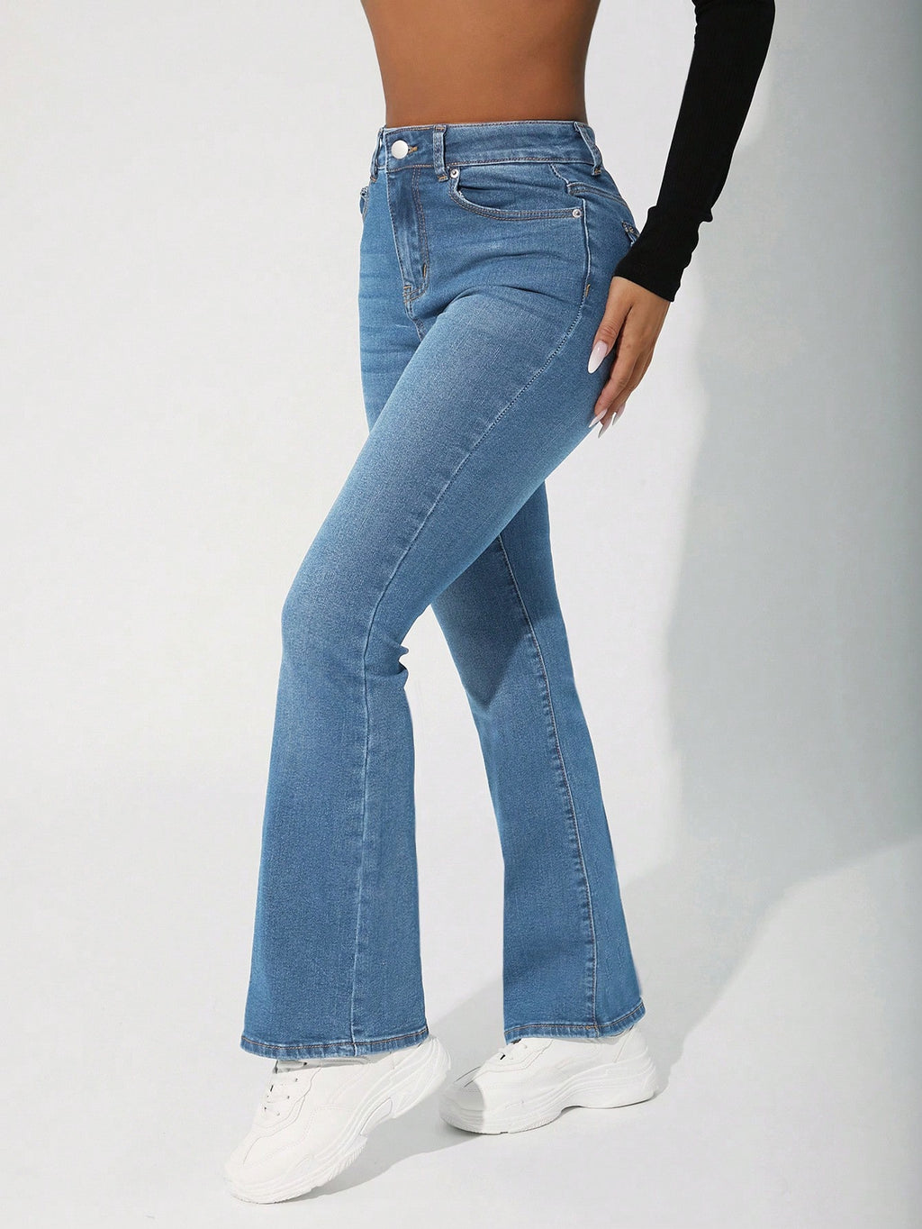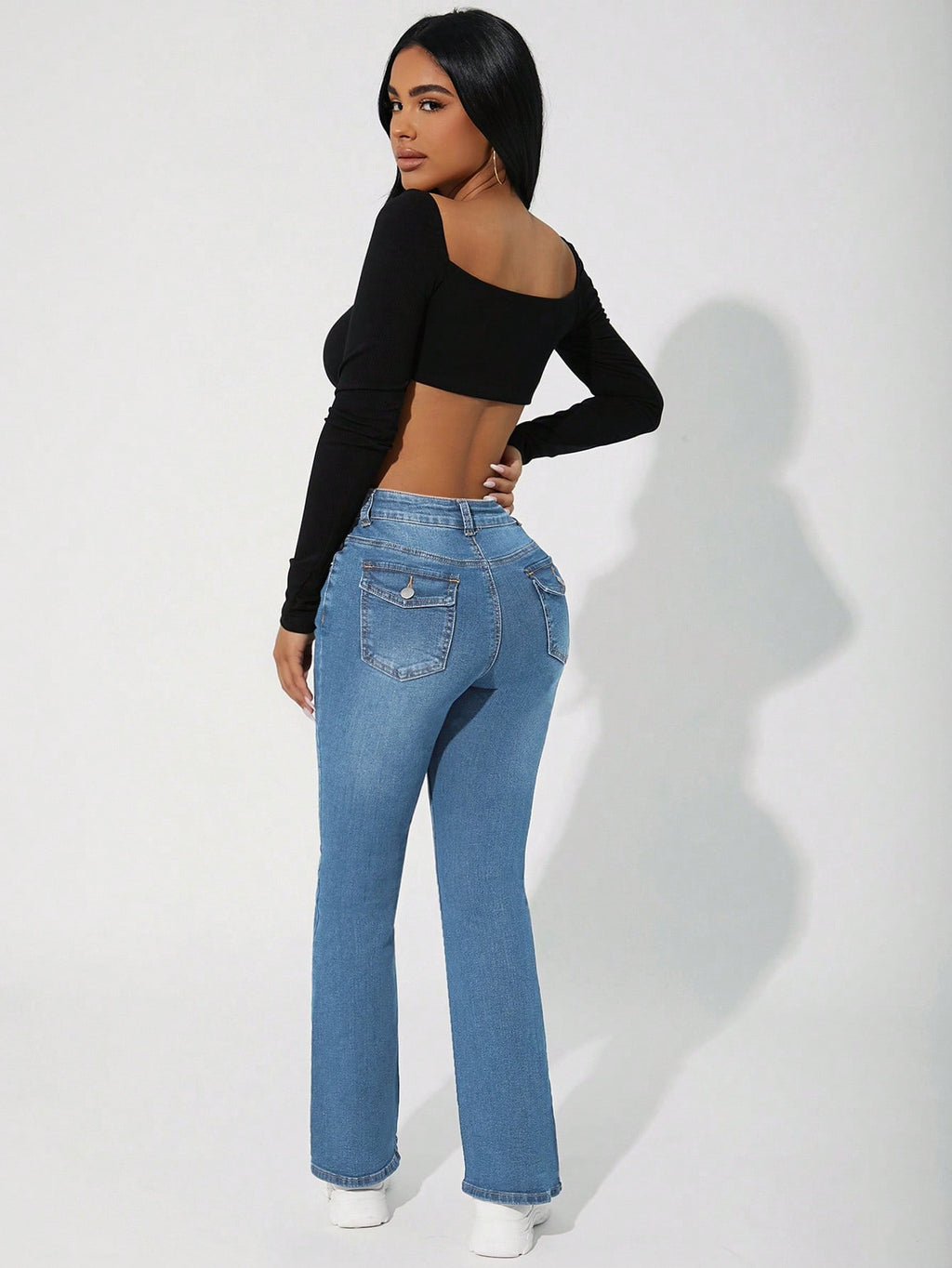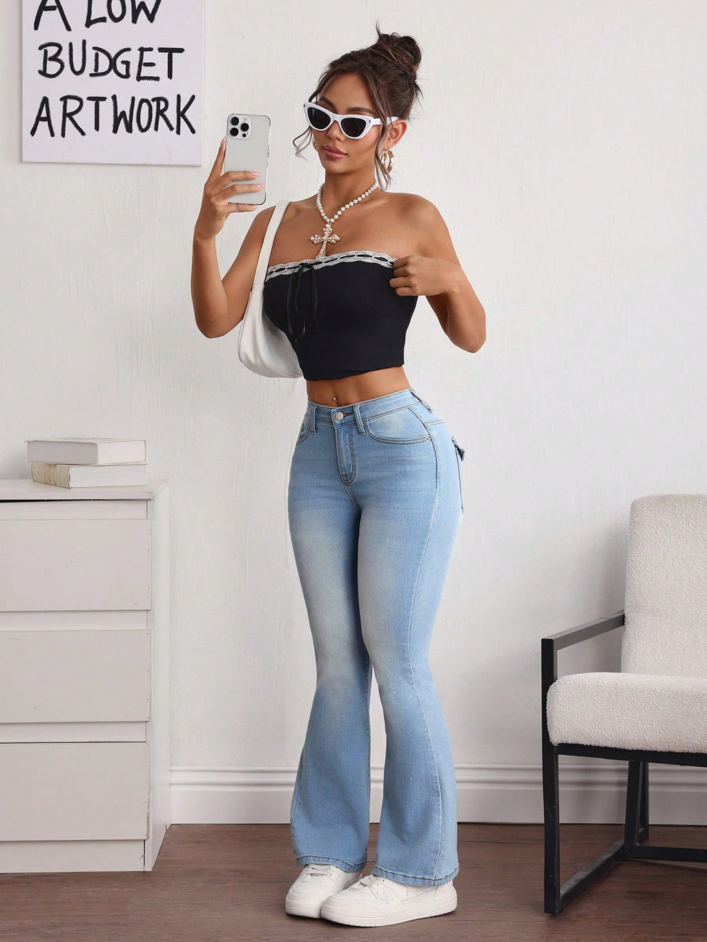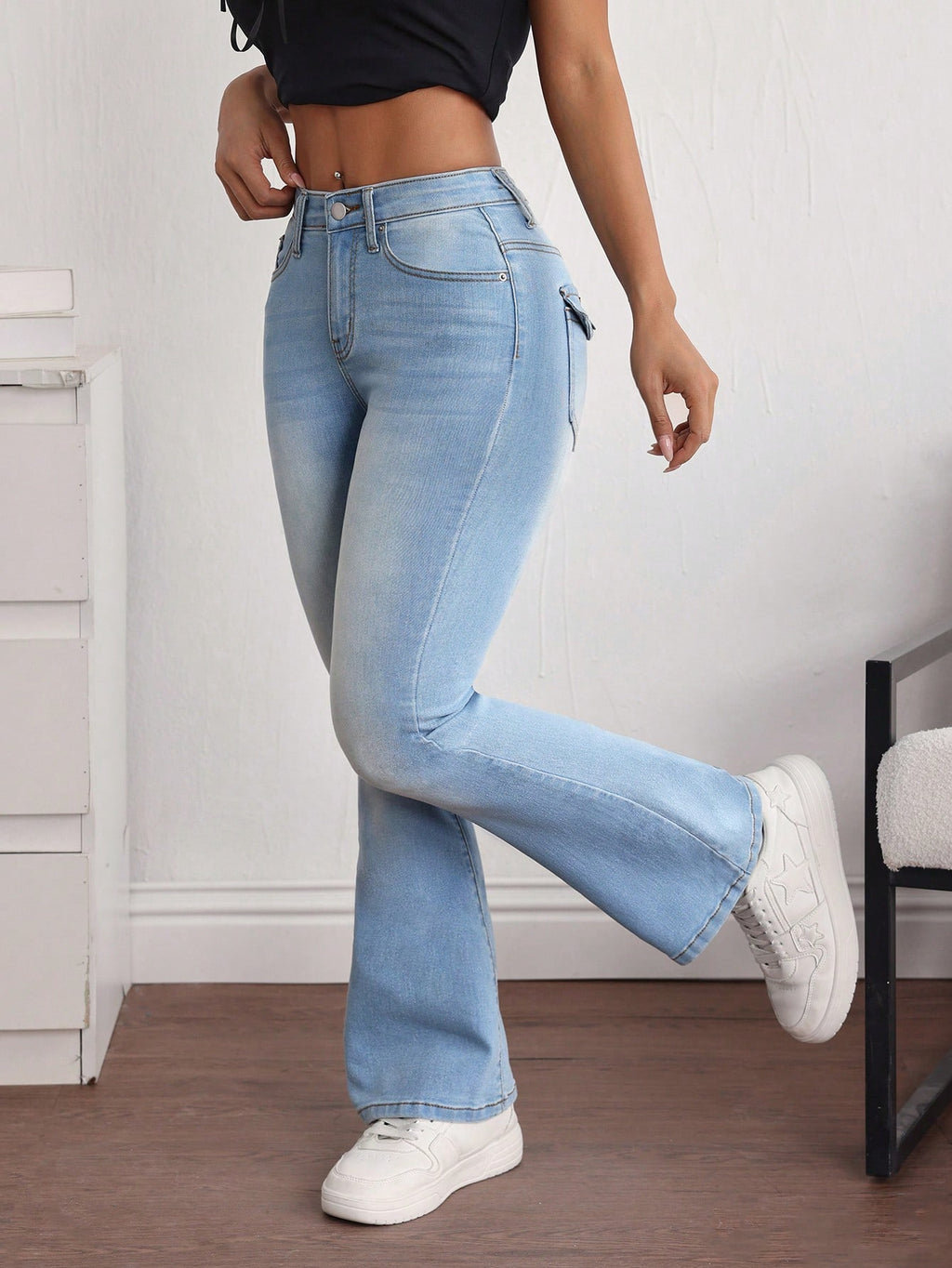 BELLAVOG Denim Flare Pants With Front Button Closure