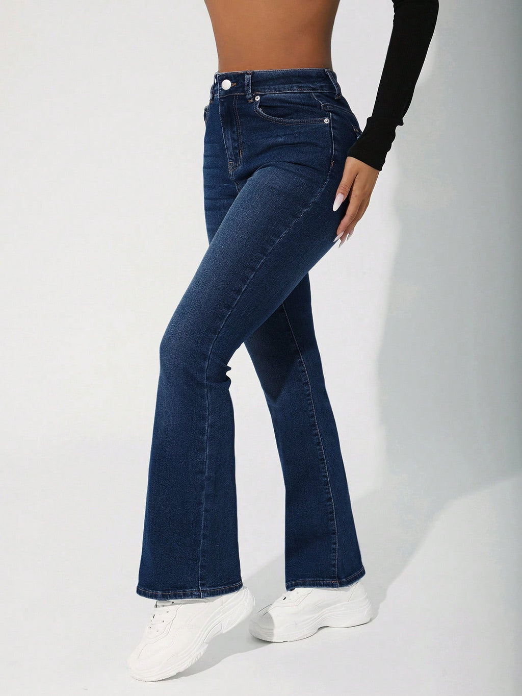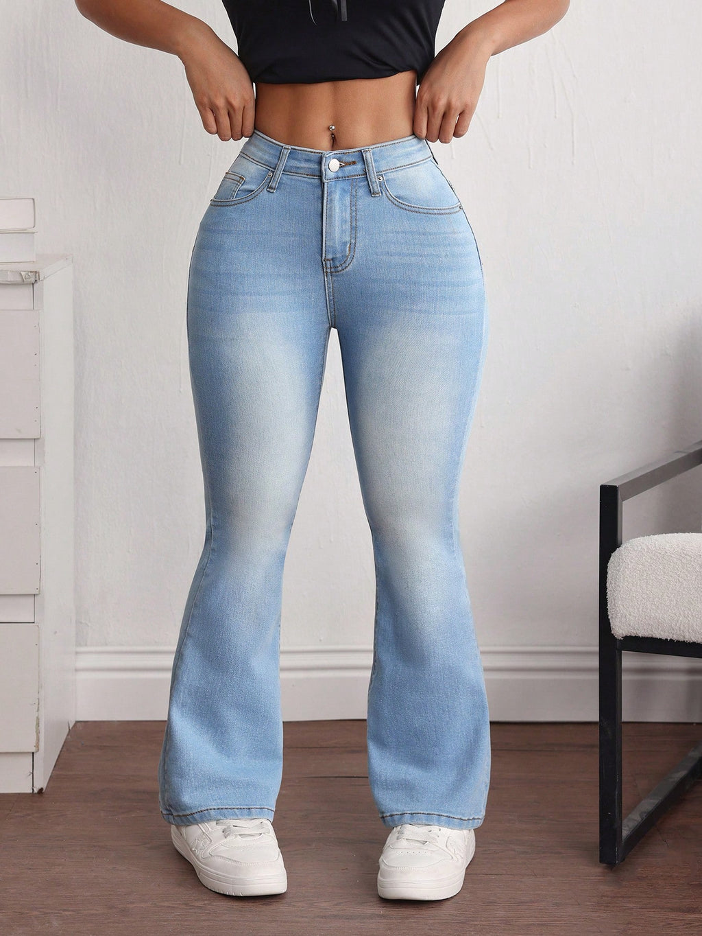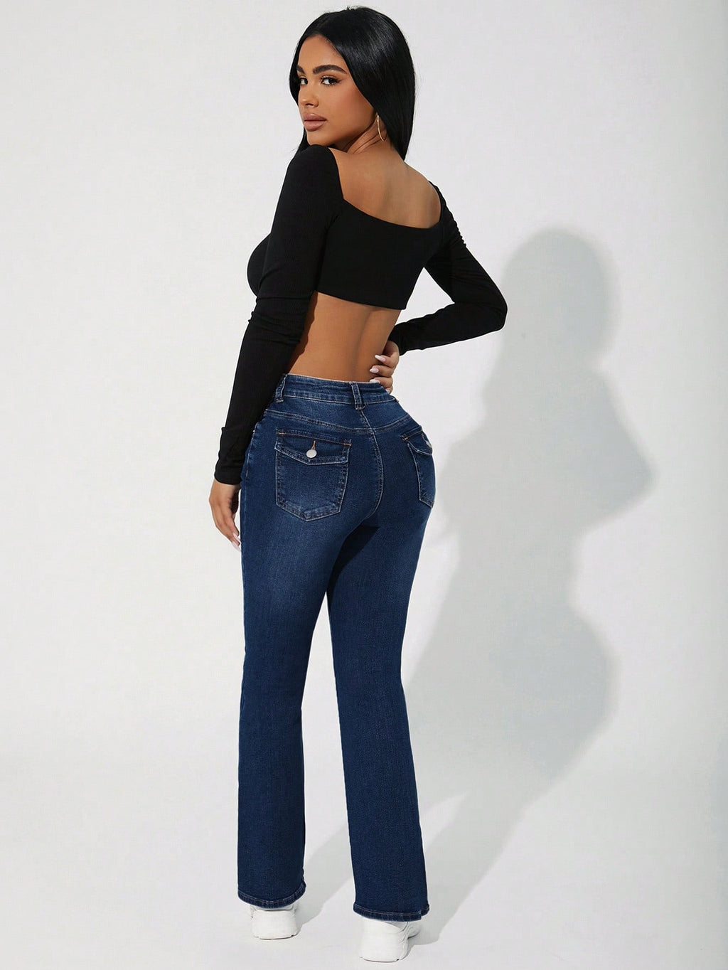 BELLAVOG Denim Flare Pants With Front Button Closure