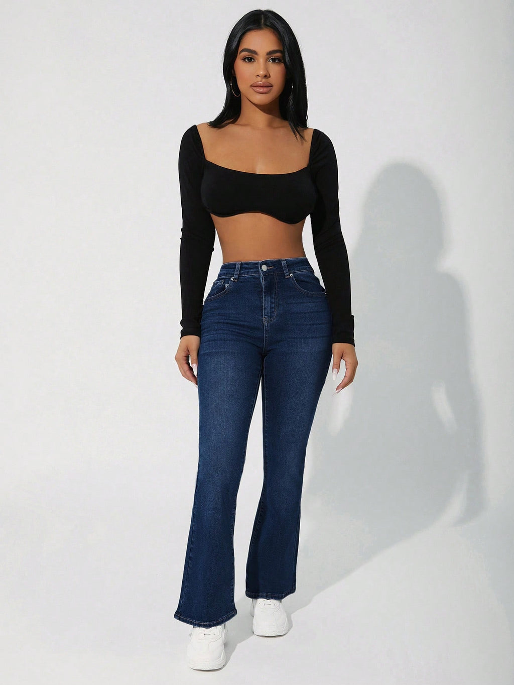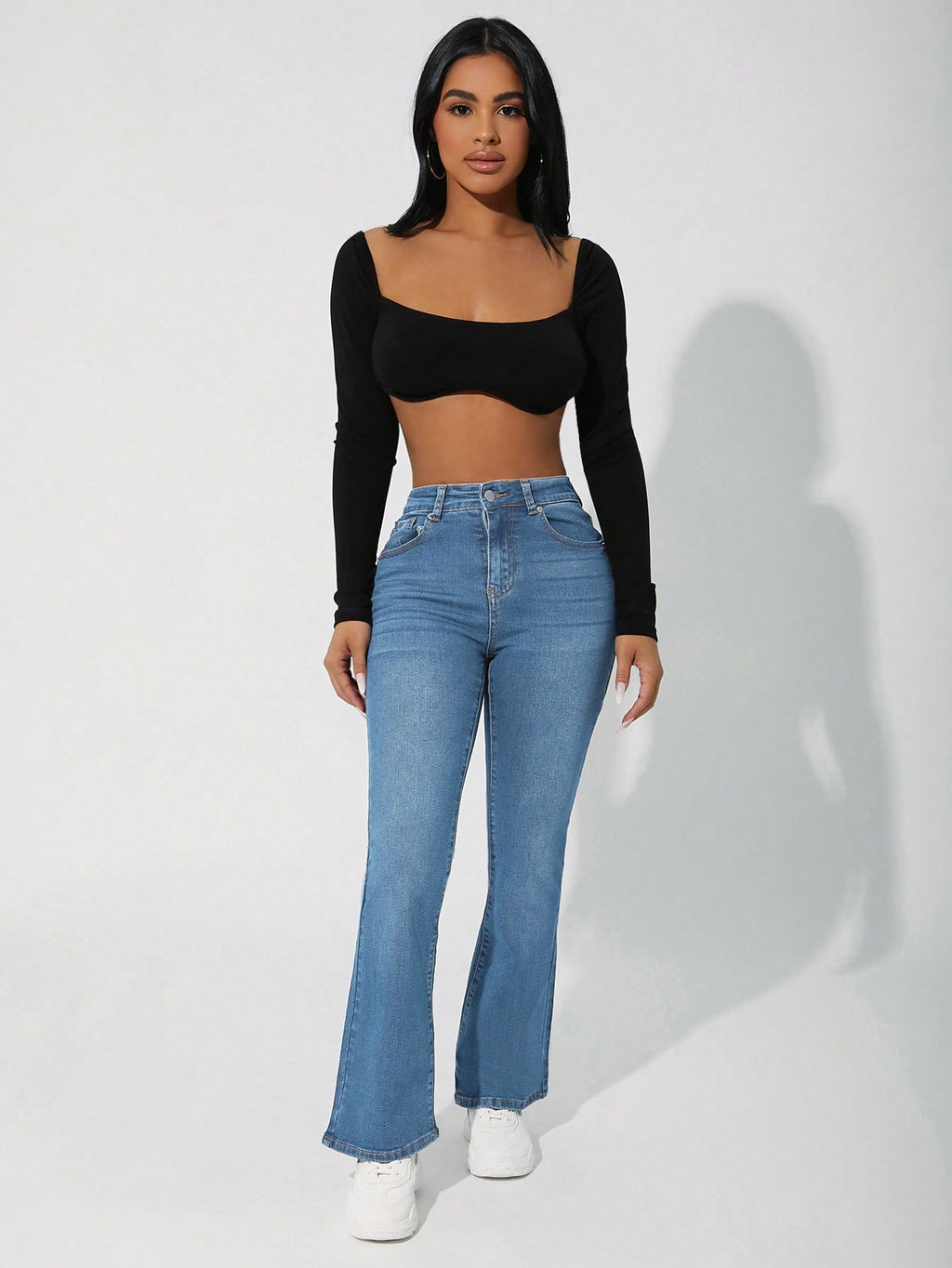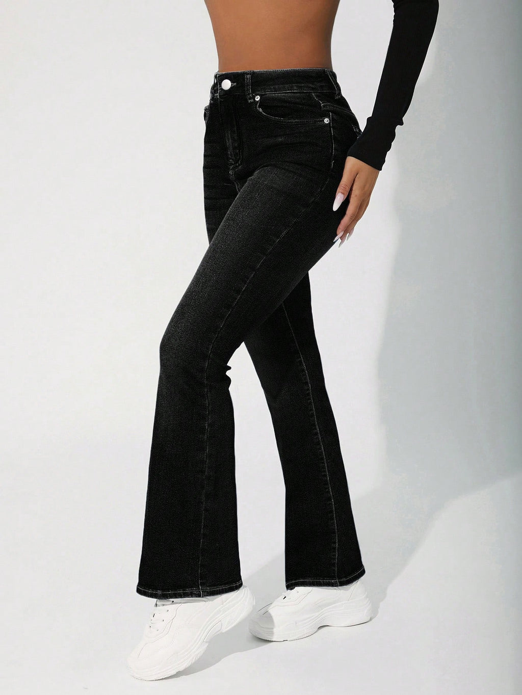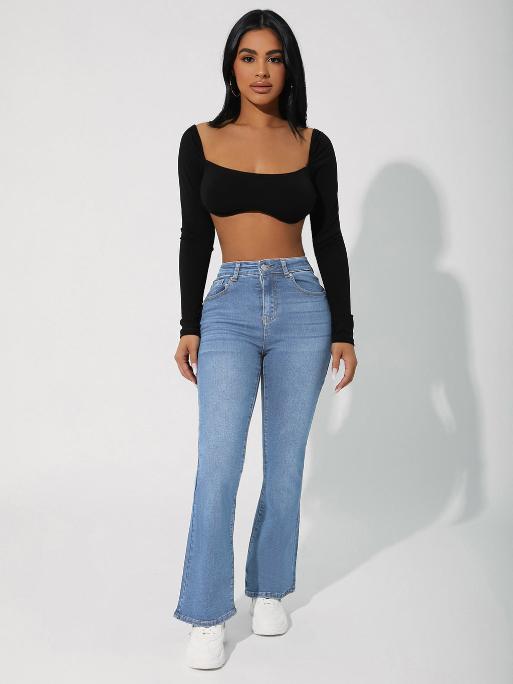 BELLAVOG Denim Flare Pants With Front Button Closure