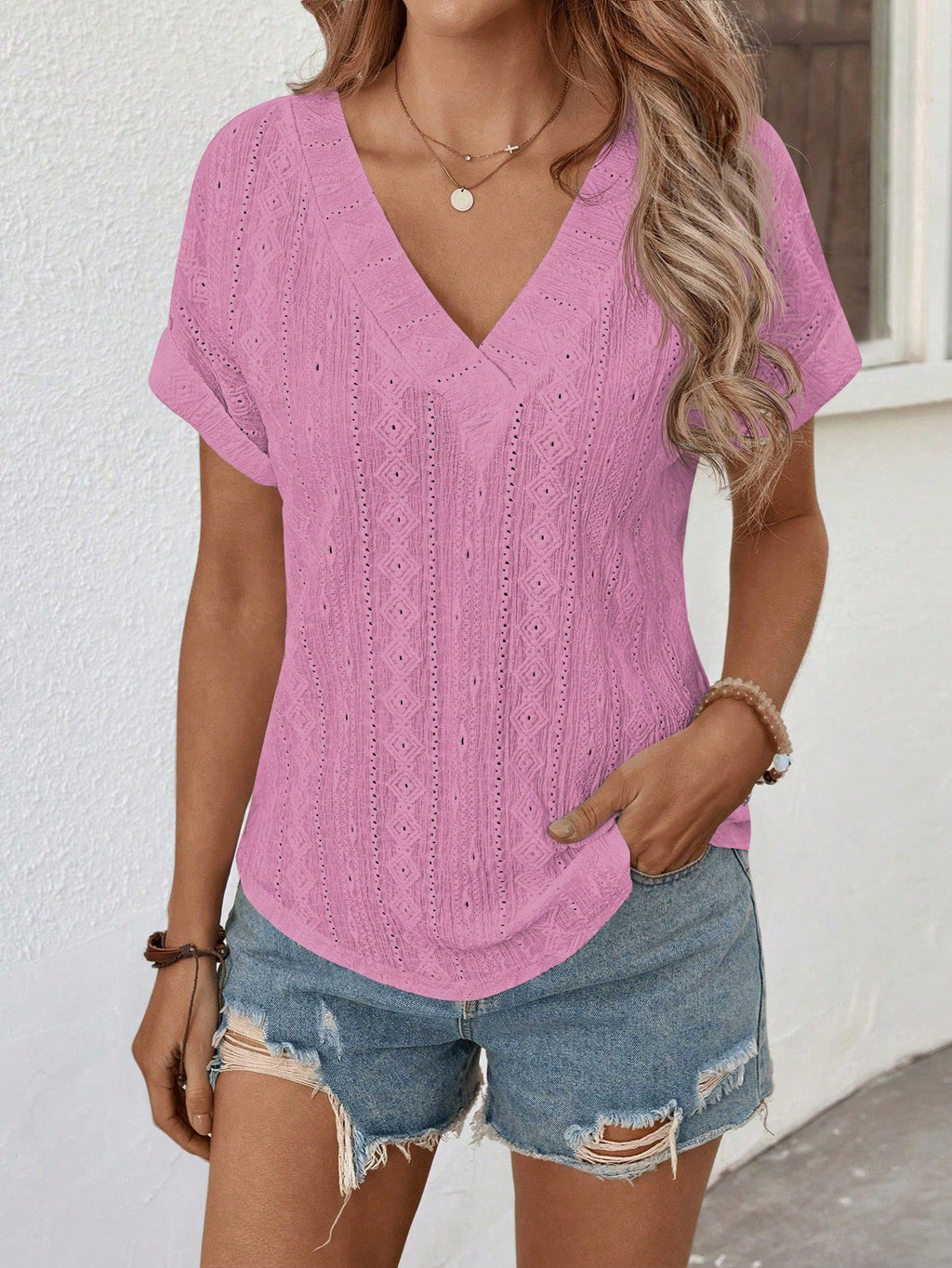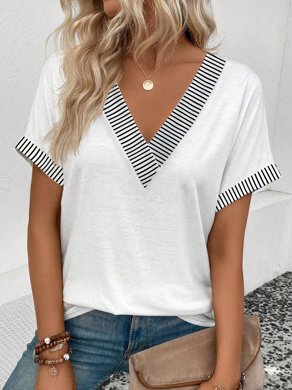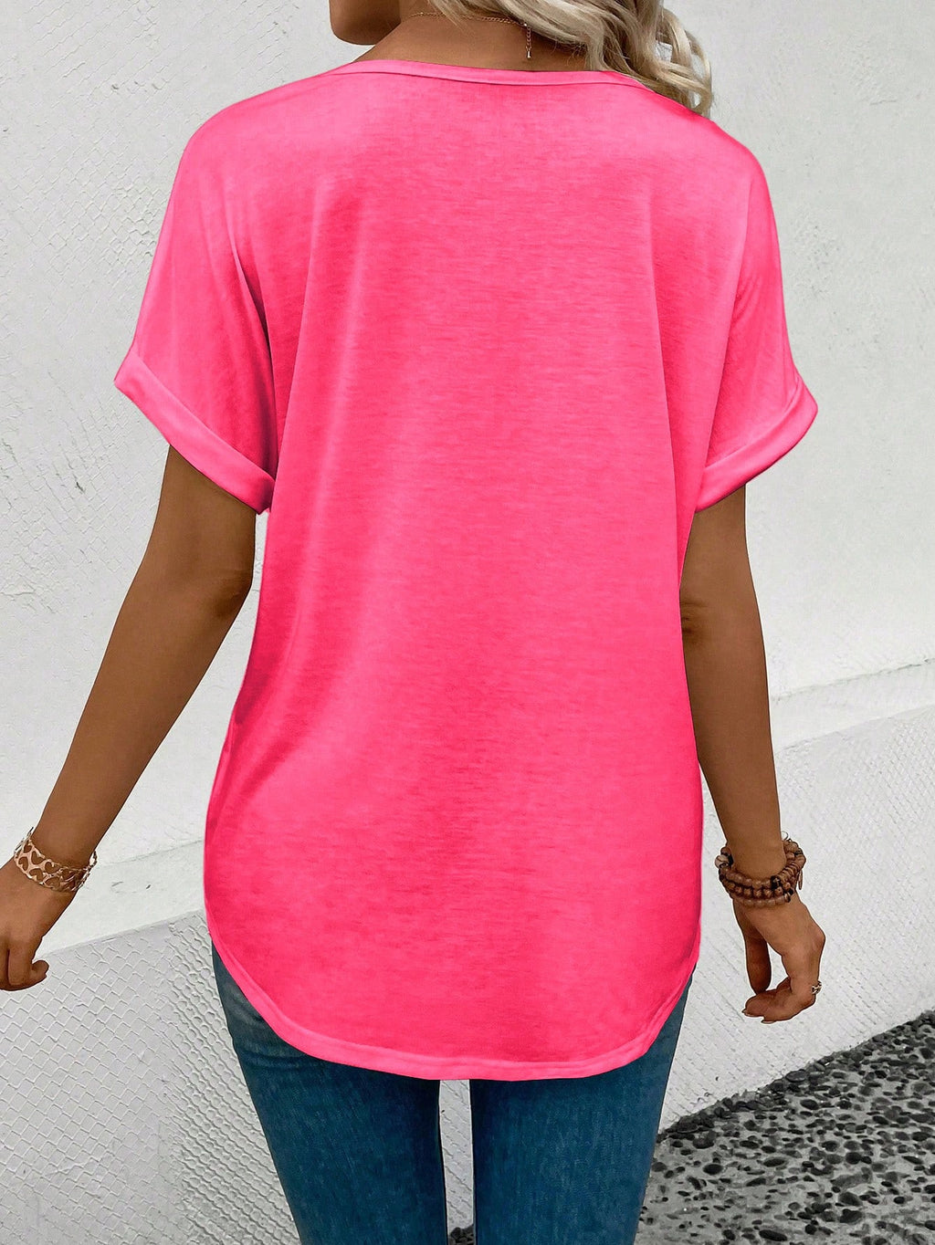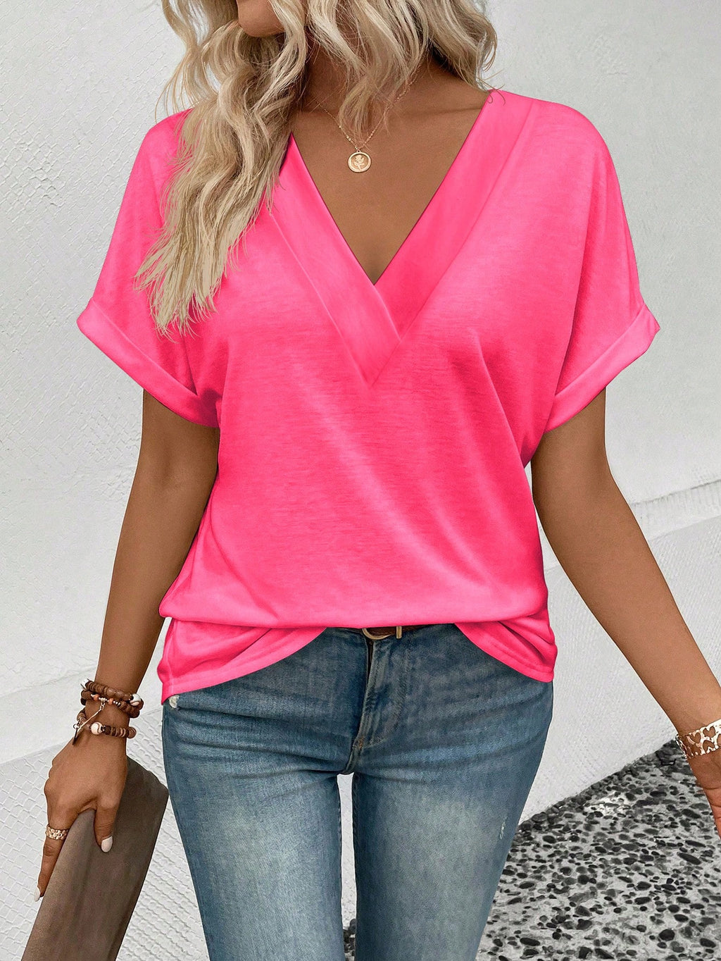 BELLAVOG E Solid V-Neck Batwing Sleeve Tee