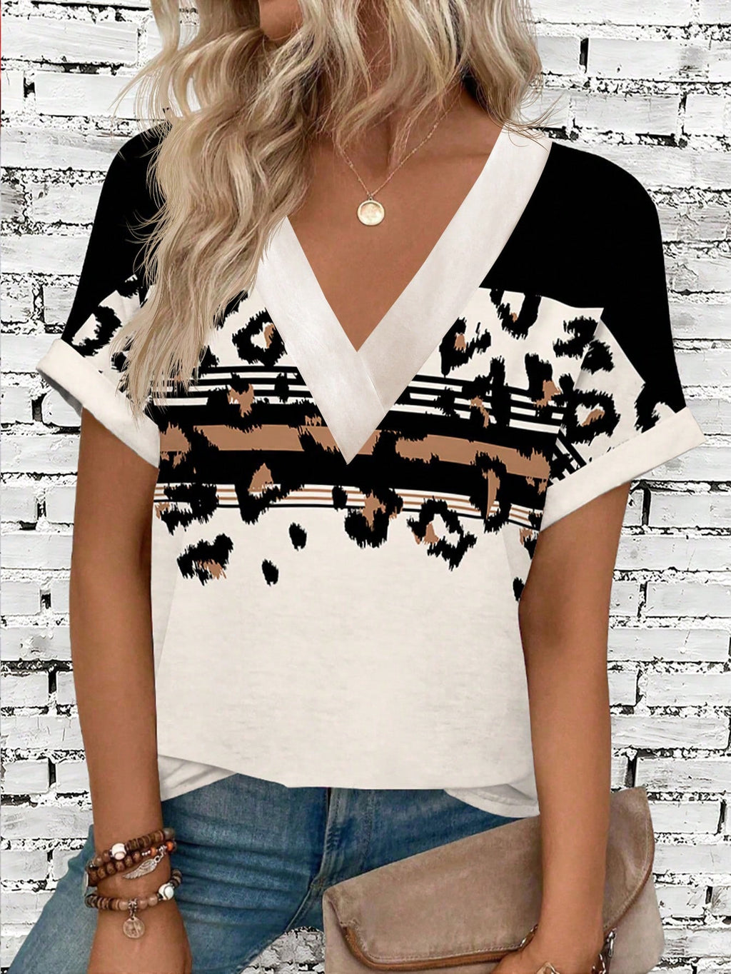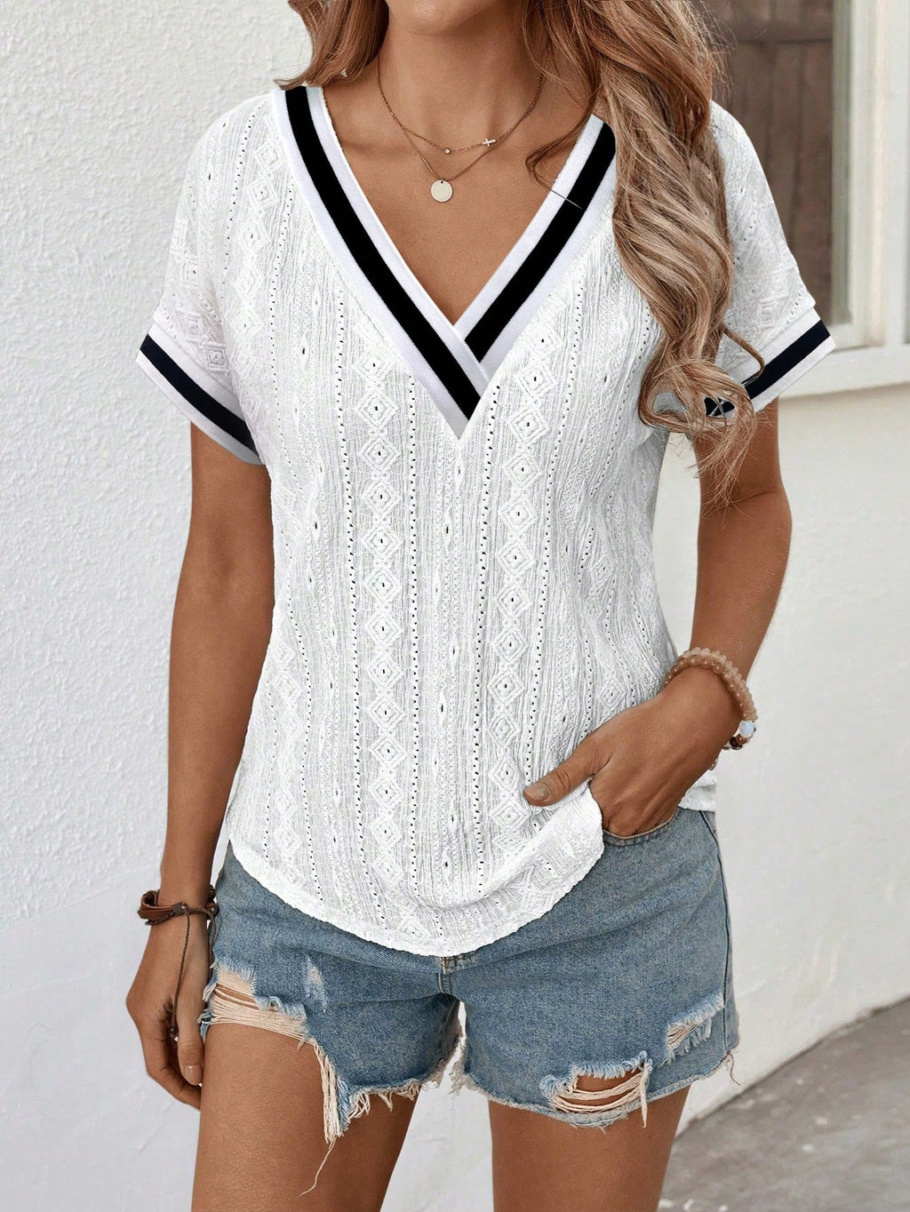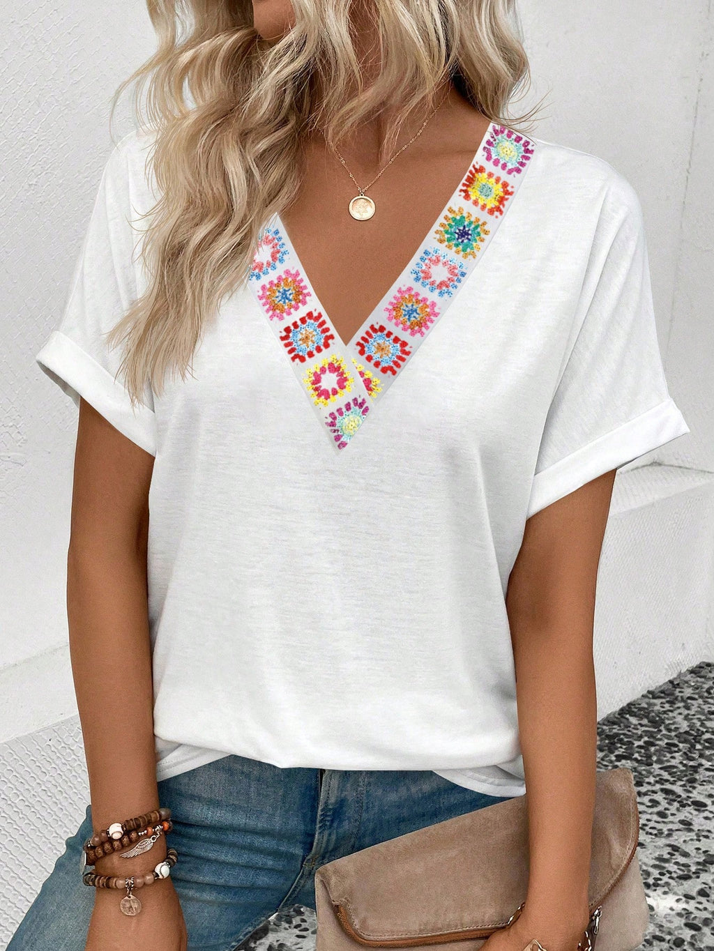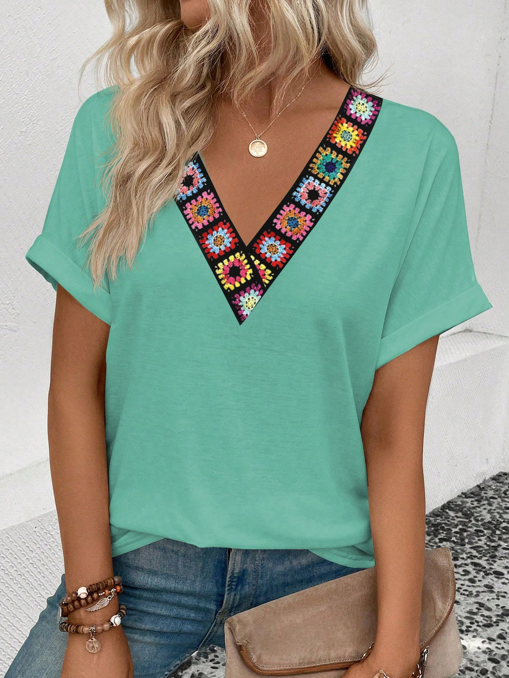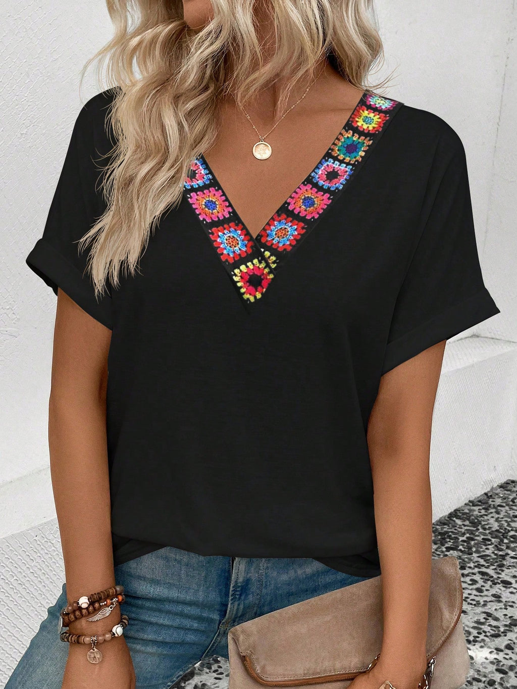 BELLAVOG E Solid V-Neck Batwing Sleeve Tee