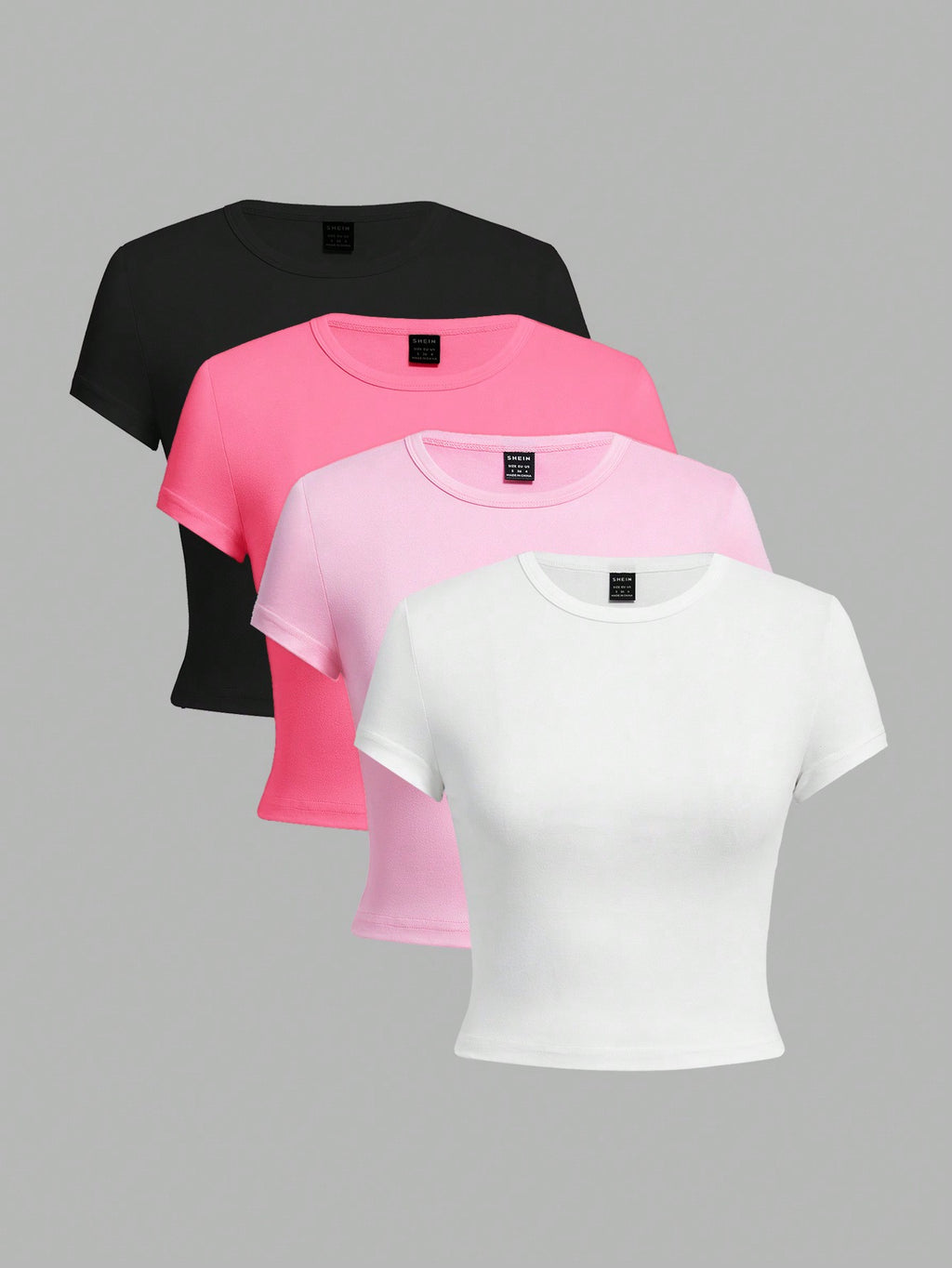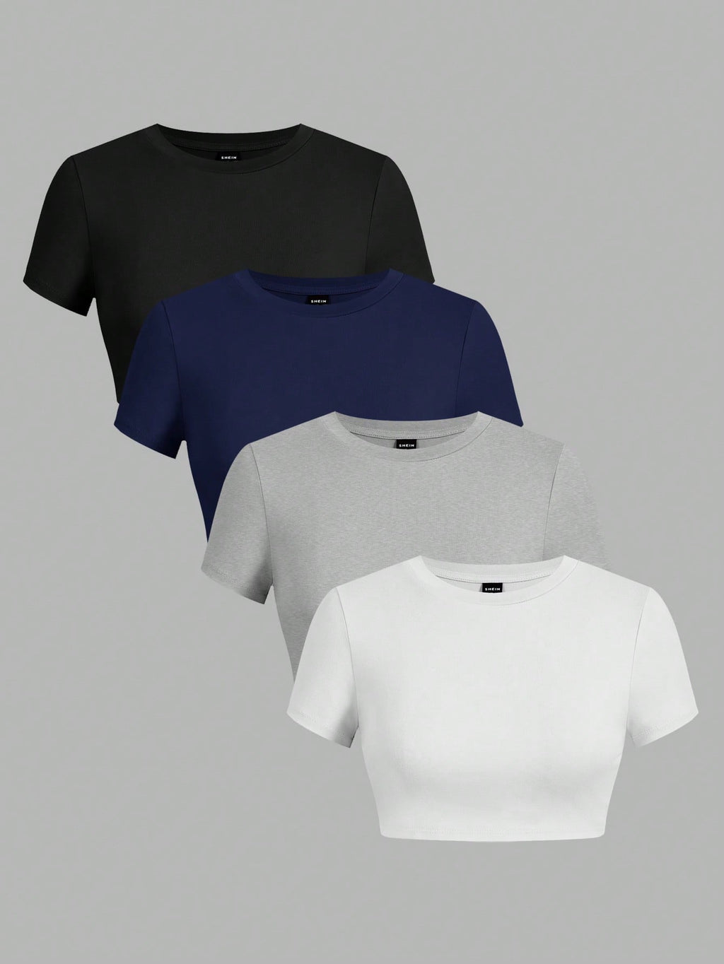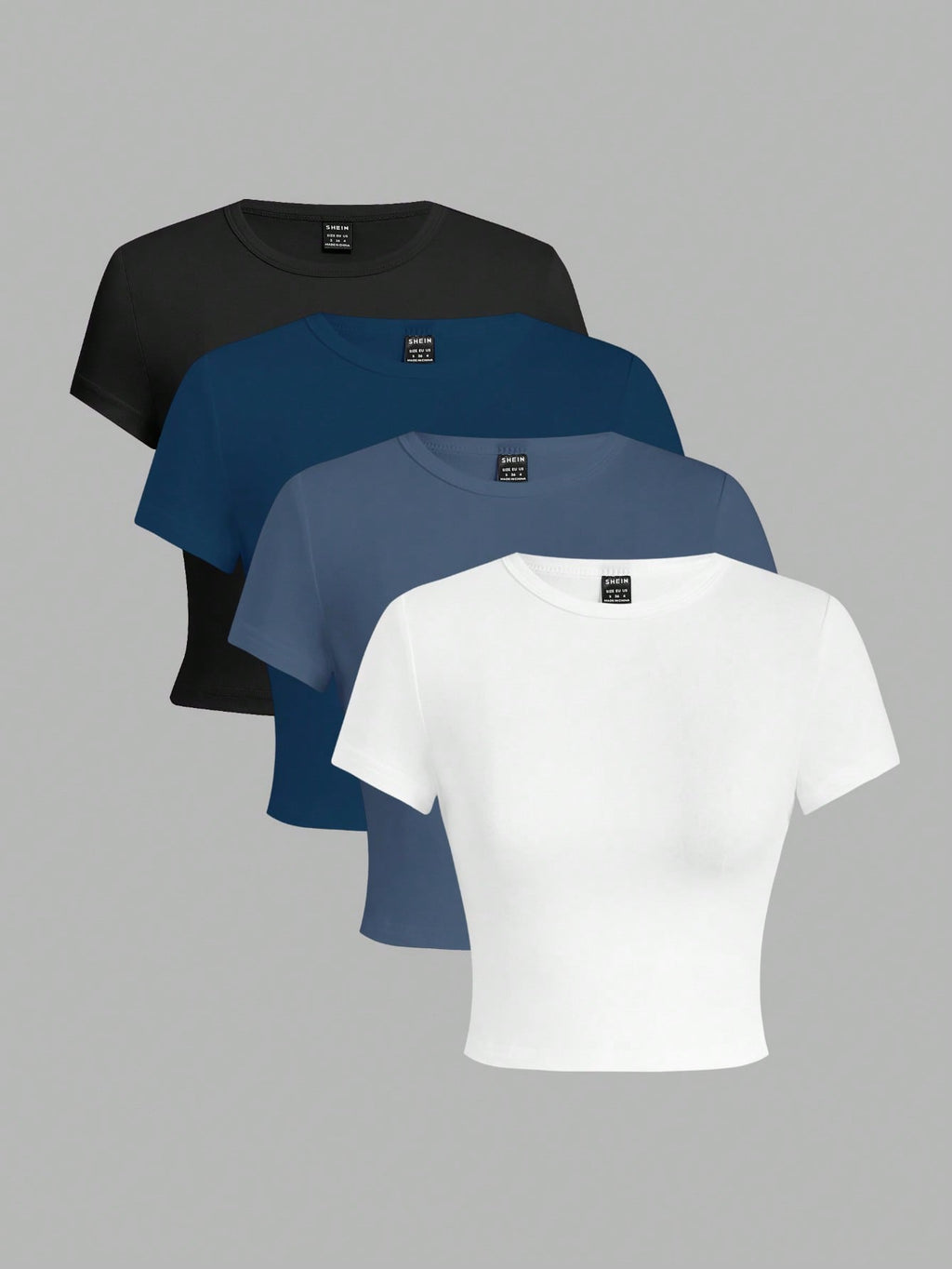 BELLAVOG EZwear 4pcs/Set Women Casual Round Neck Slim-Fit Short Sleeve T-Shirts, Suitable For Summer
