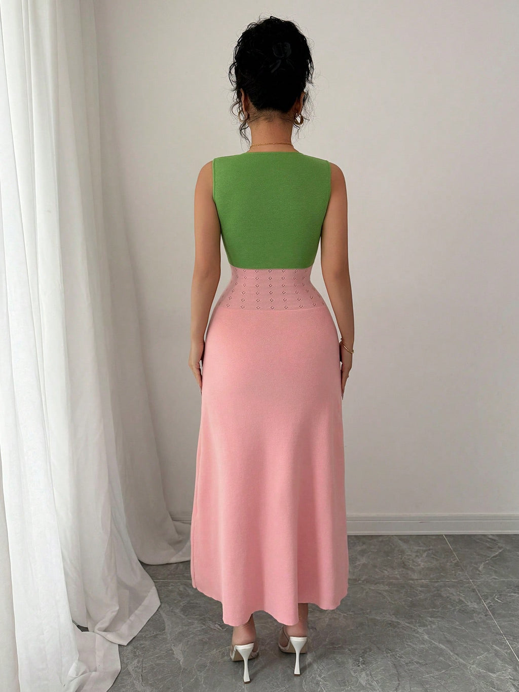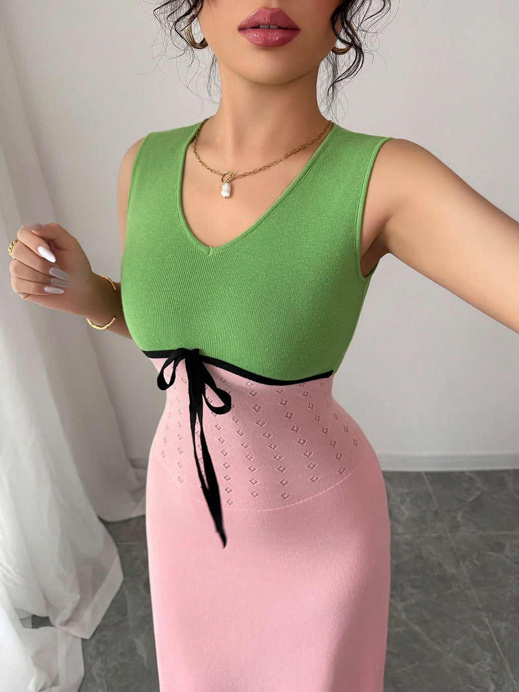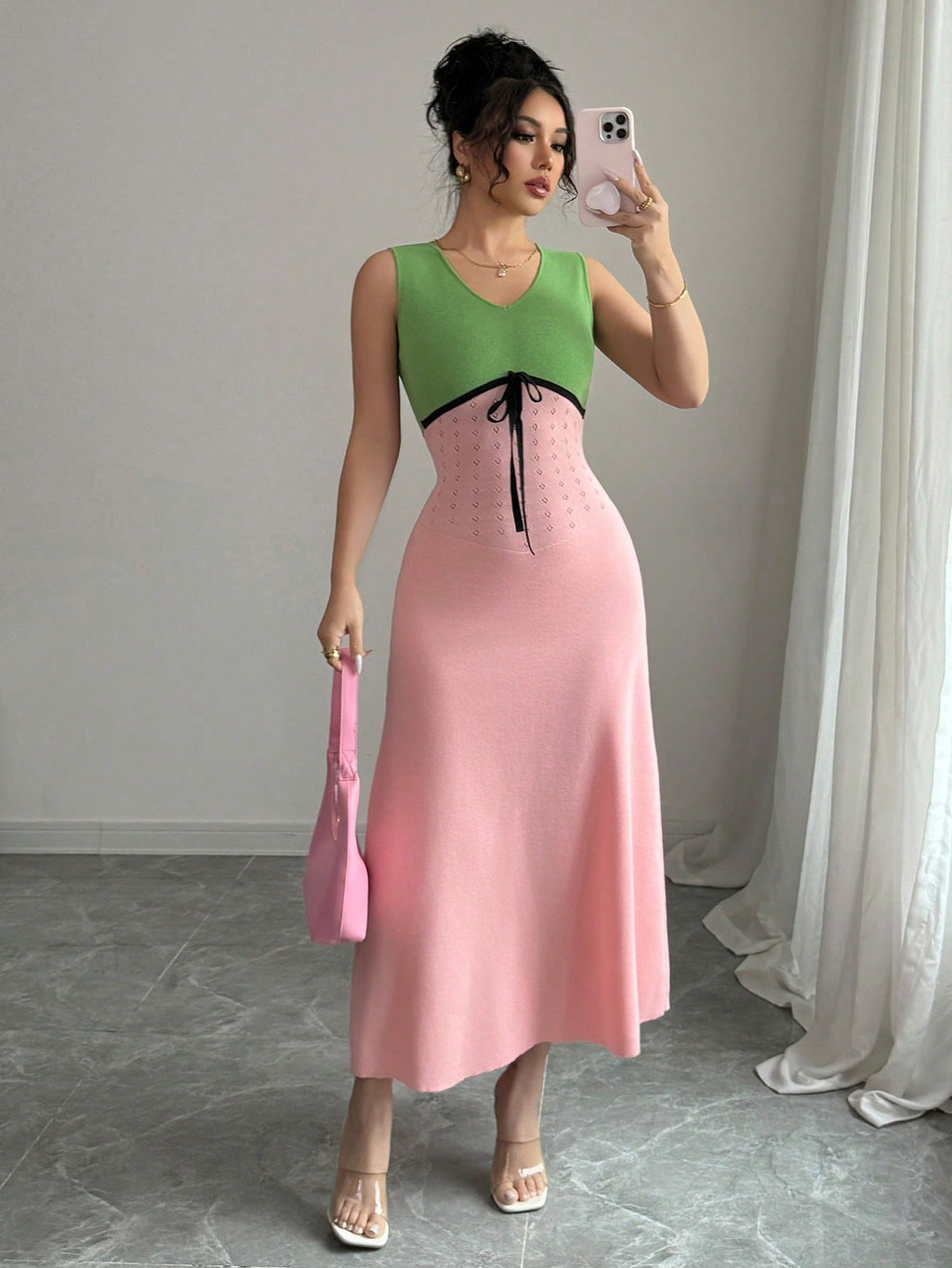 BELLAVOG Fashionable Minimalist Sleeveless V-Neck Women's Long Fitted Dress