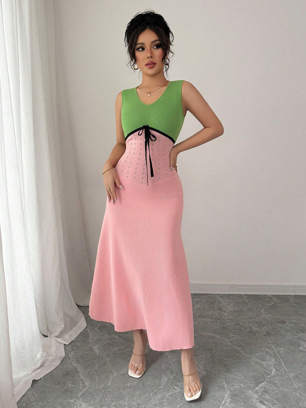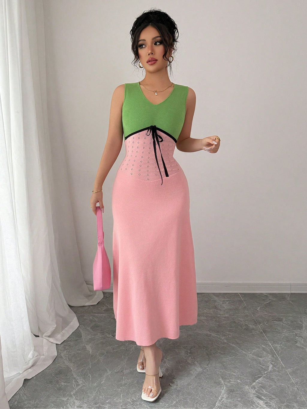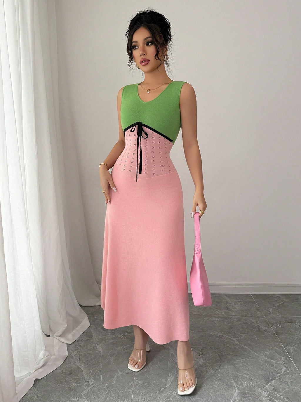 BELLAVOG Fashionable Minimalist Sleeveless V-Neck Women's Long Fitted Dress
