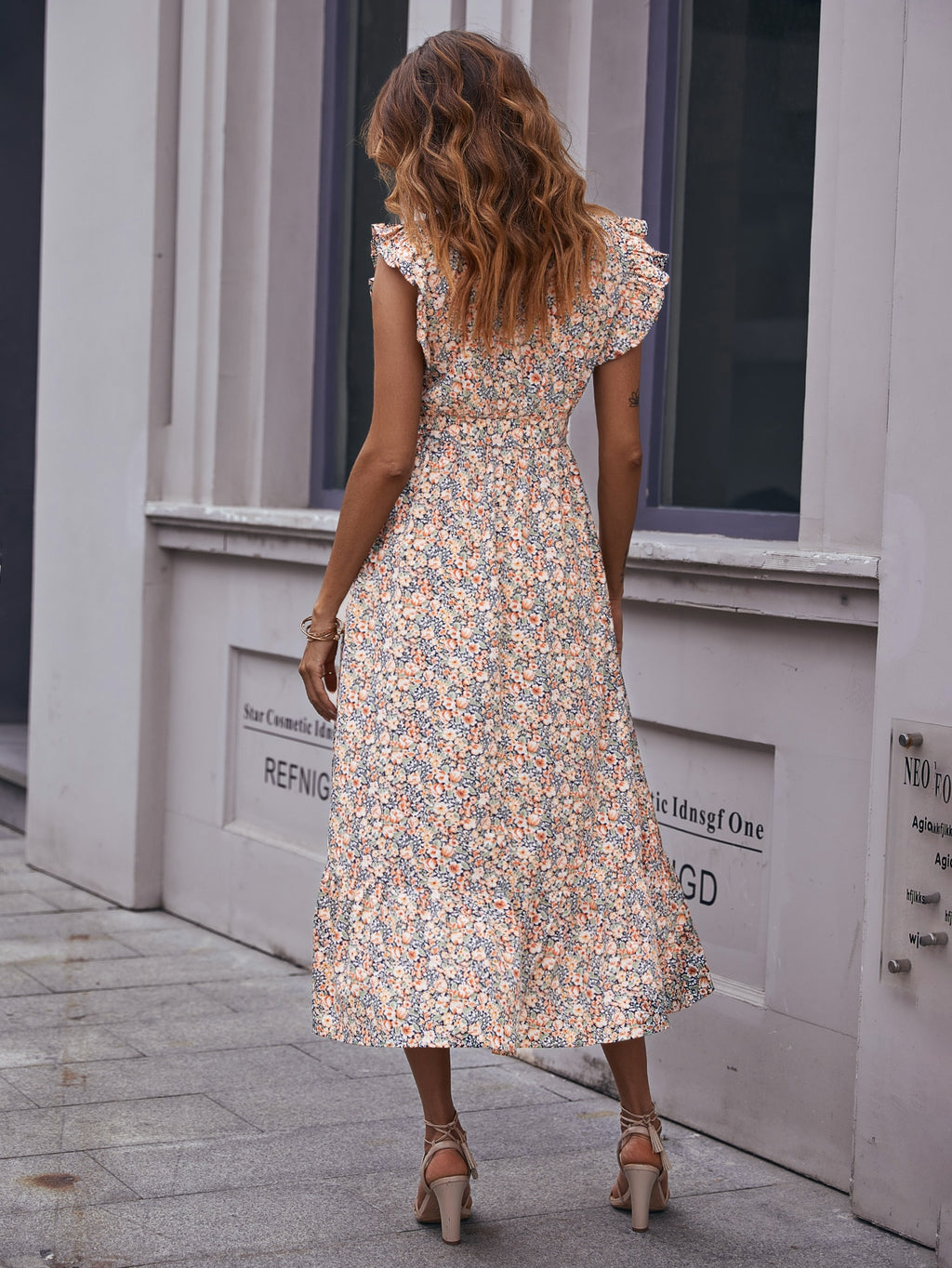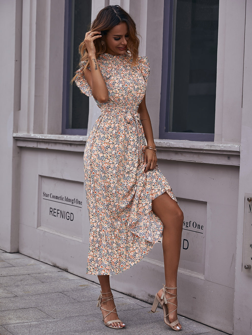 BELLAVOG Floral Print Belted Ruffle Trim Dress