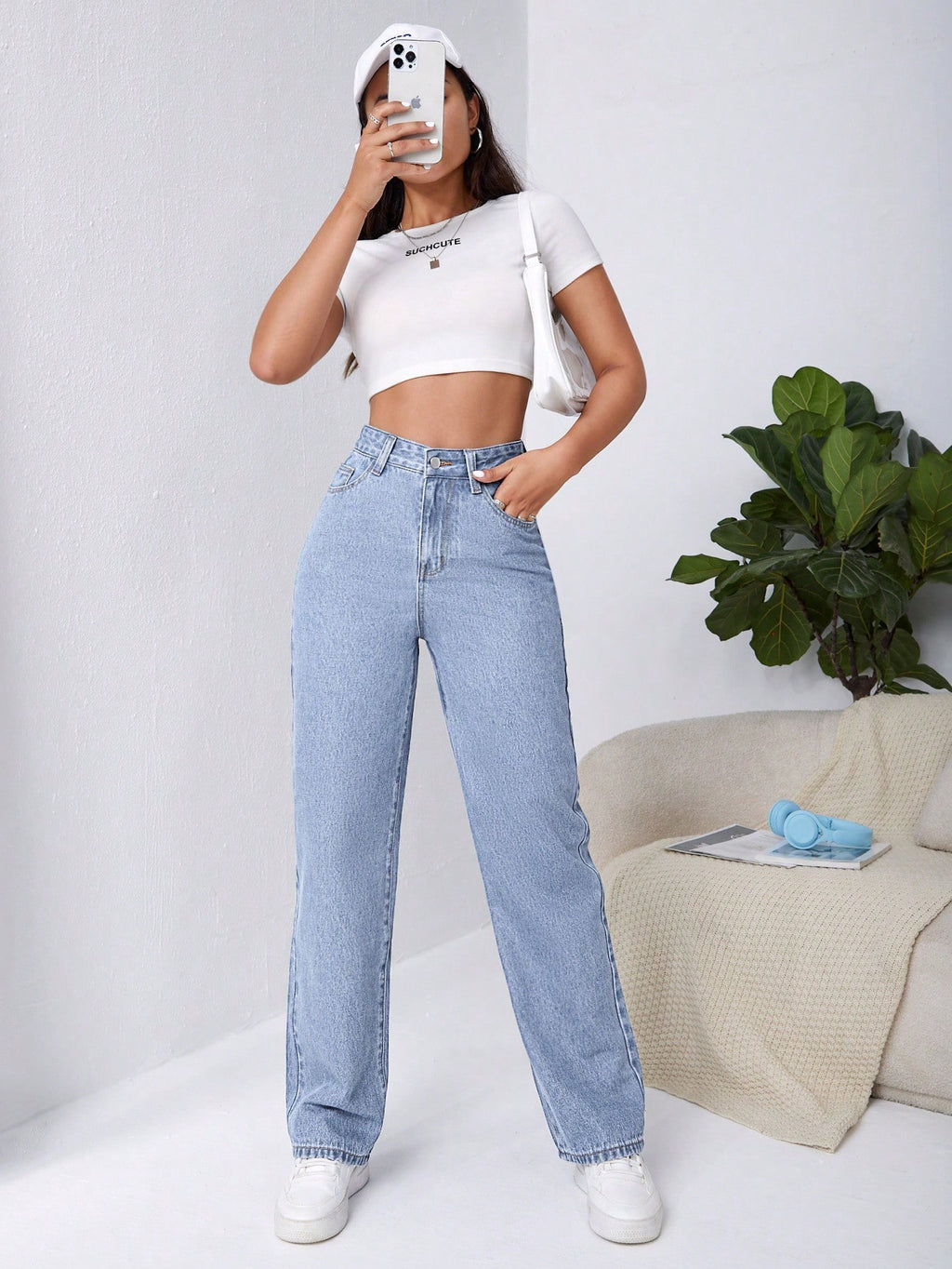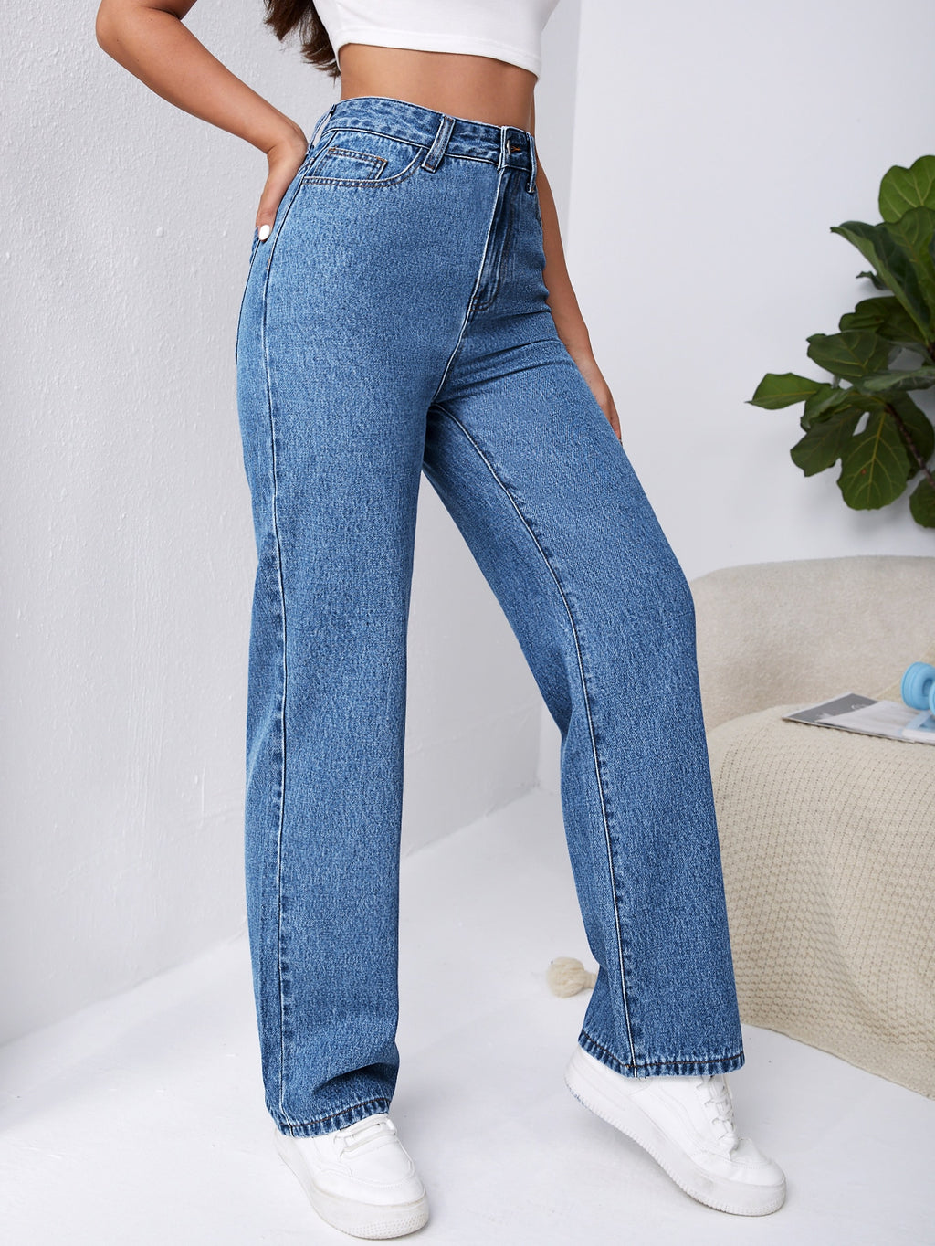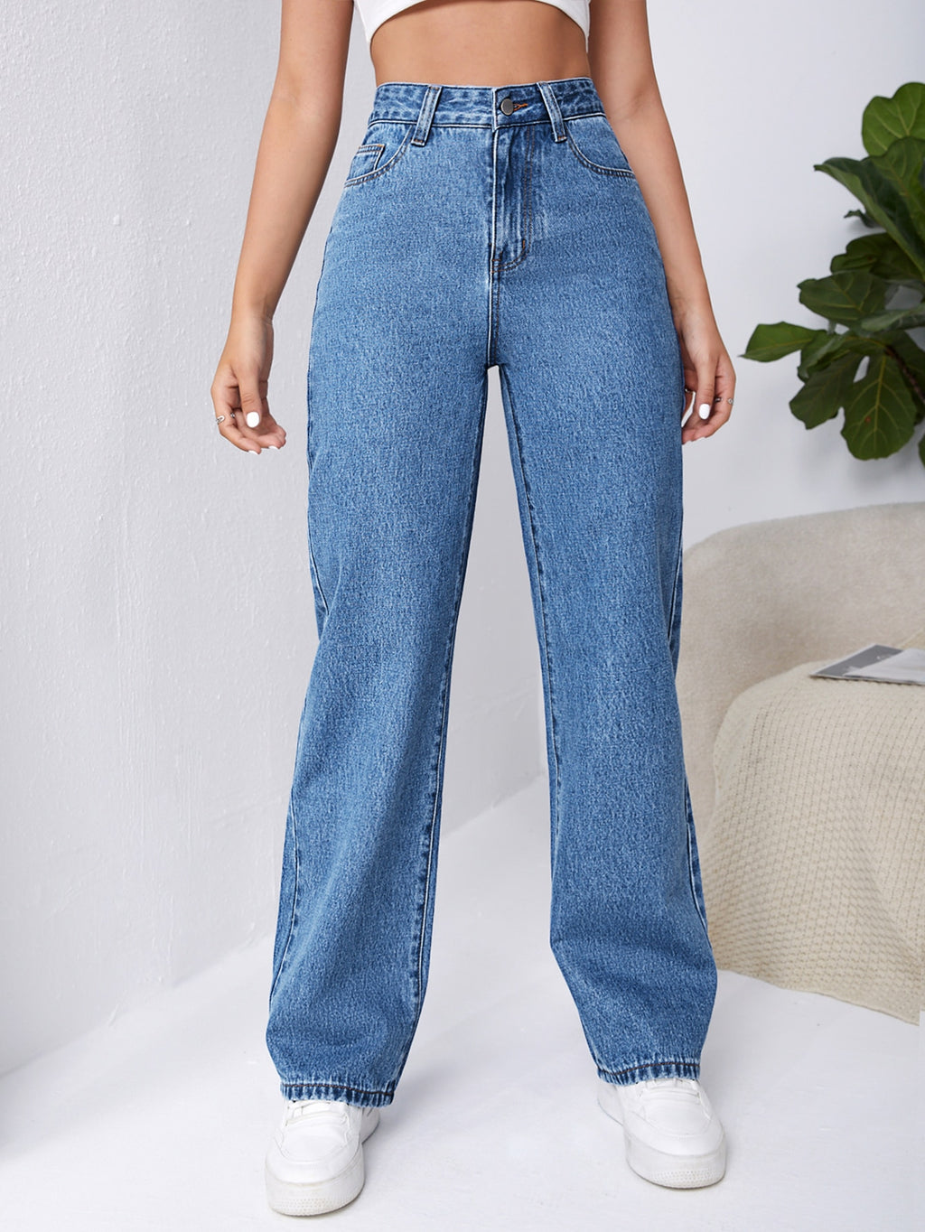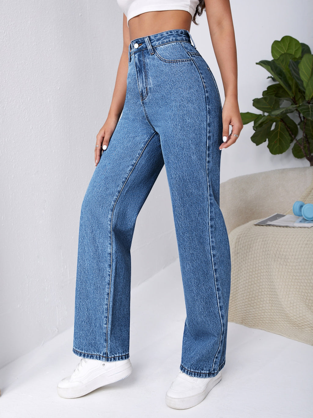 BELLAVOG Frenchy High Waist Slant Pocket Boyfriend Baggy Jeans