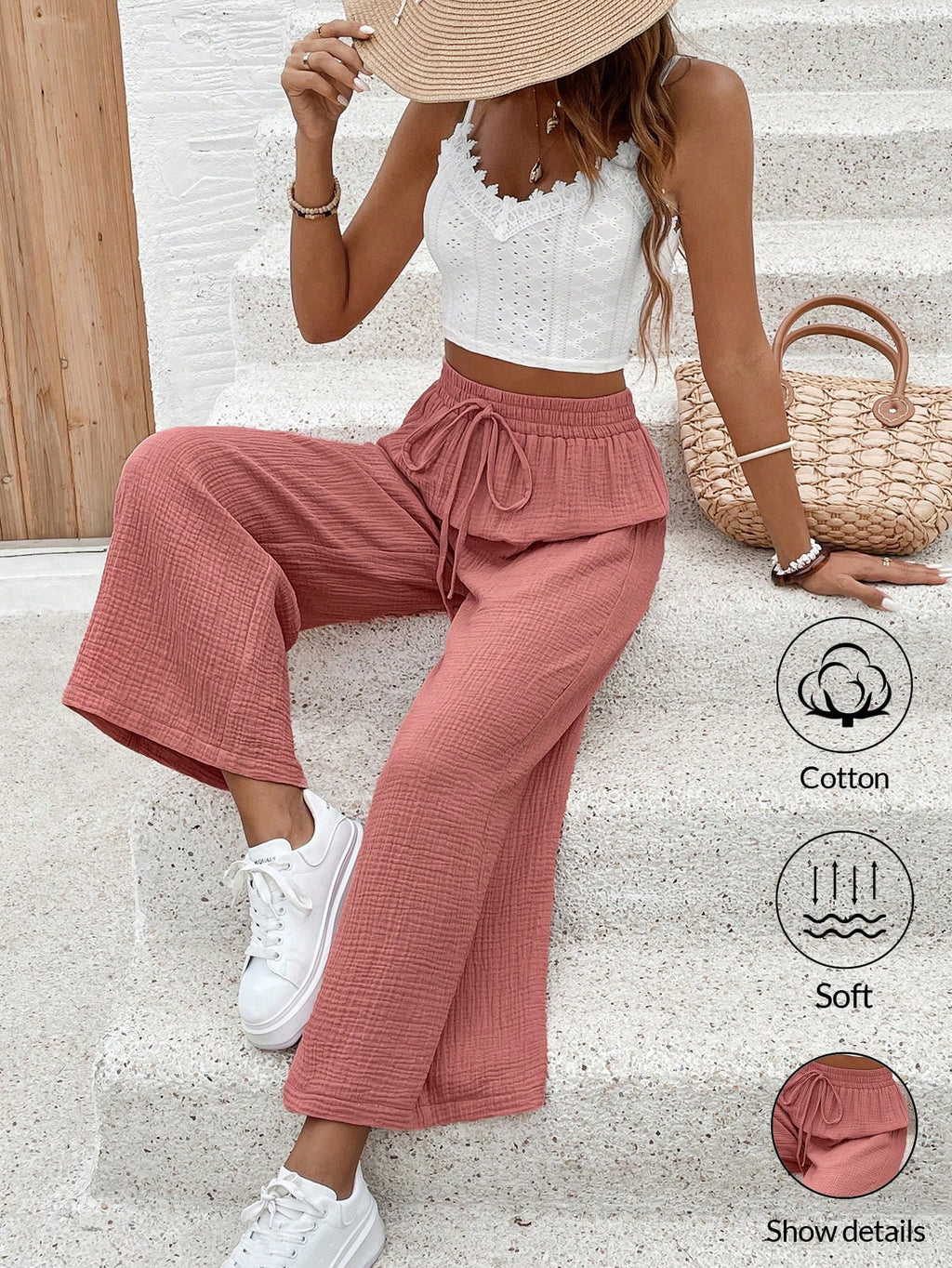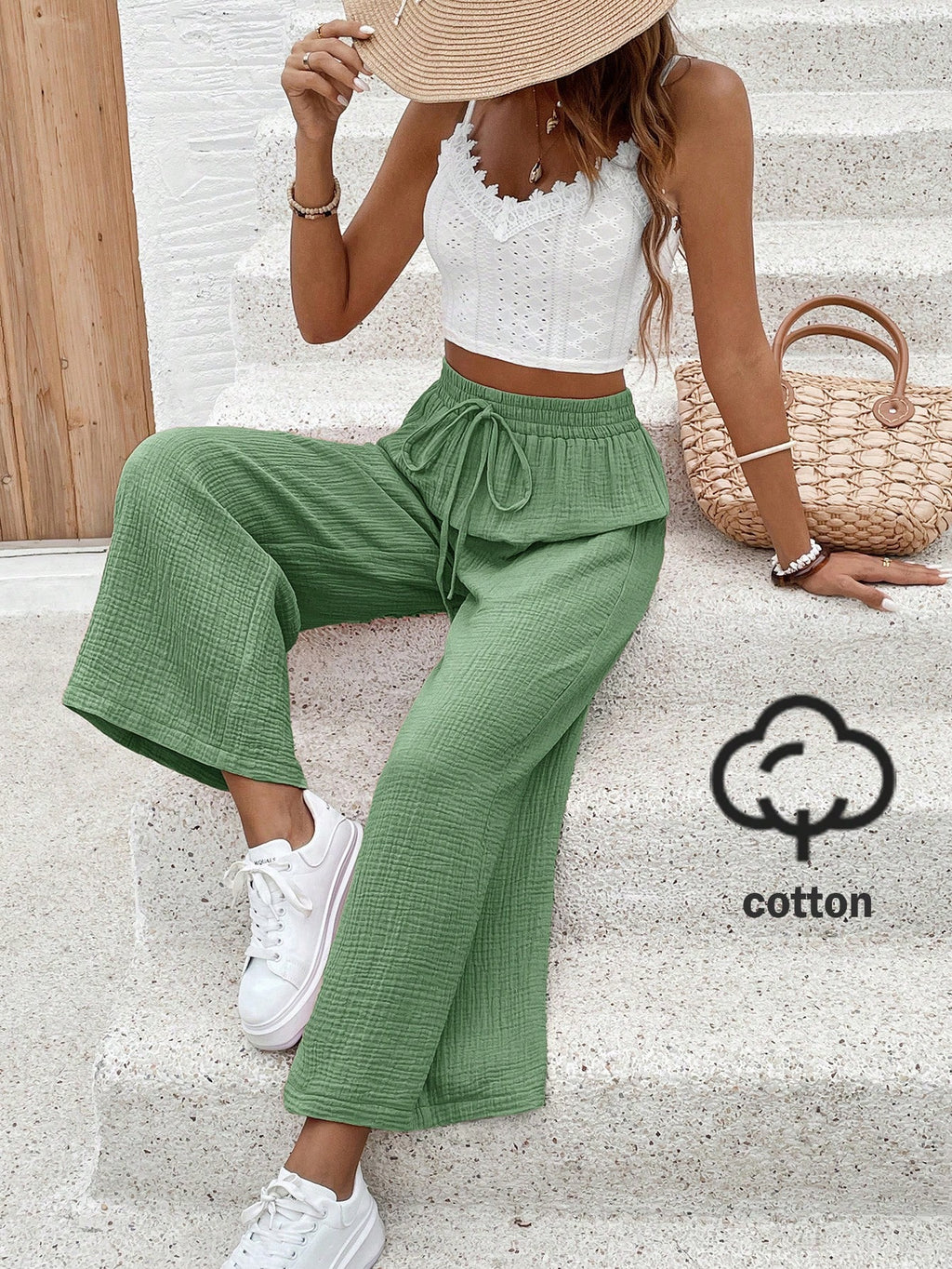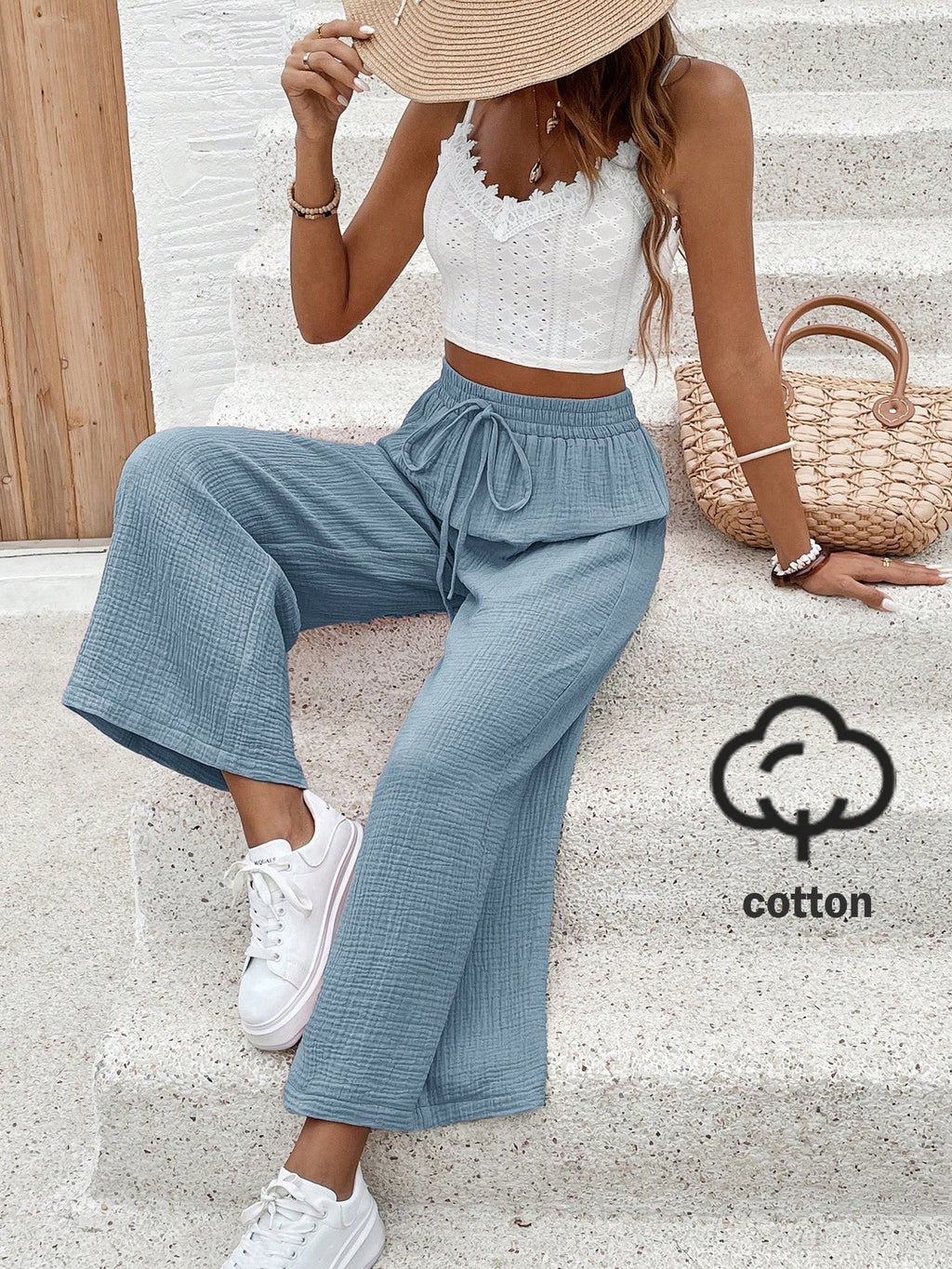 BELLAVOG Frenchy Ladies' Old Money Style Solid Color Simple Daily Wear Drawstring Cotton Long Pants, Teacher Pants Wide Leg Pants, 70s Outfit Fall Women Clothes Matching Styles, Commute, Minimalist, Office, Old Money, Simple, Commute