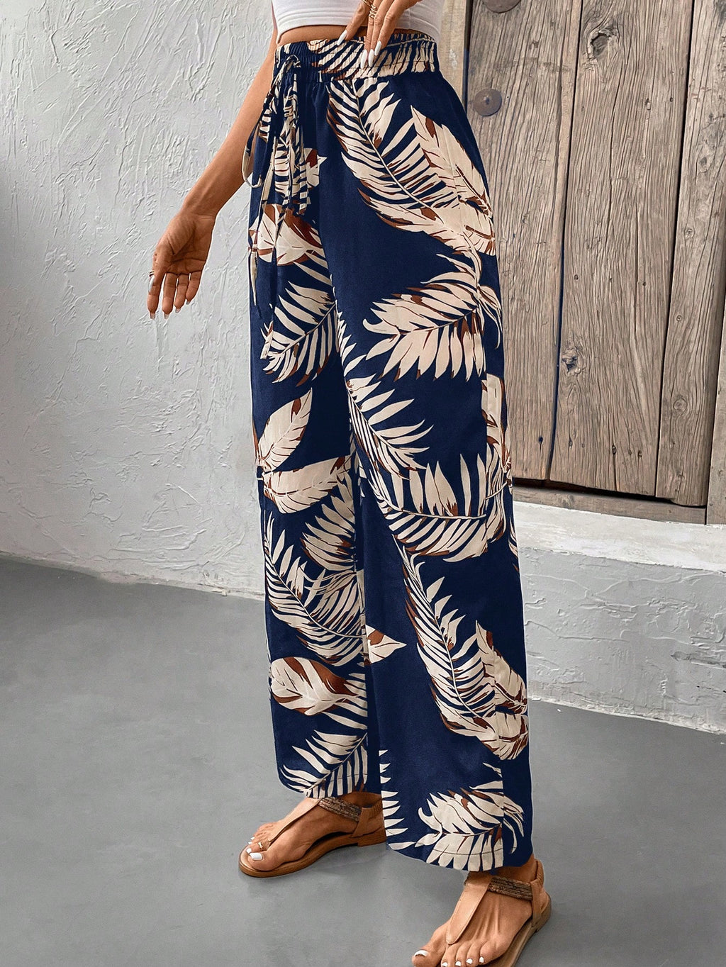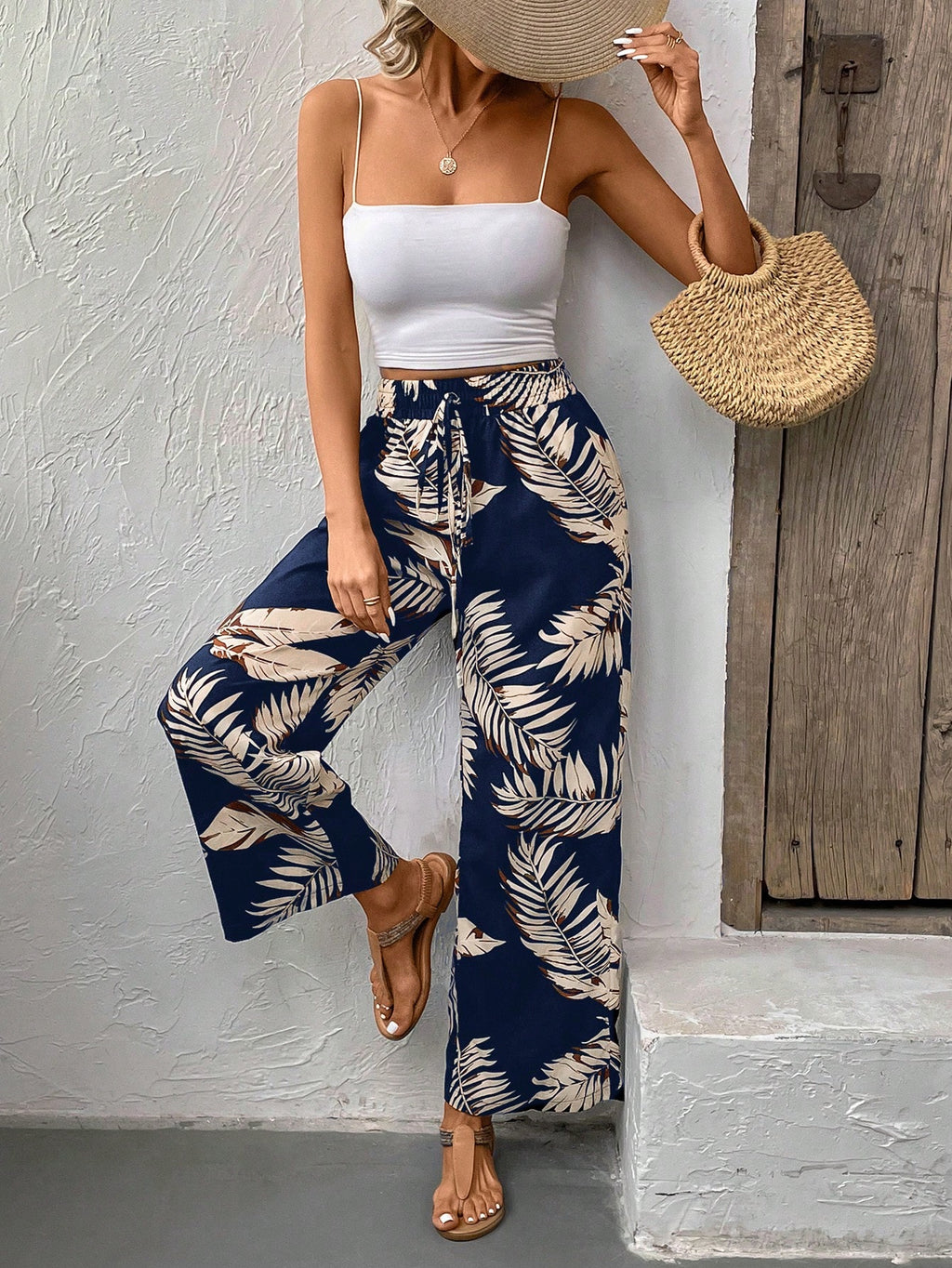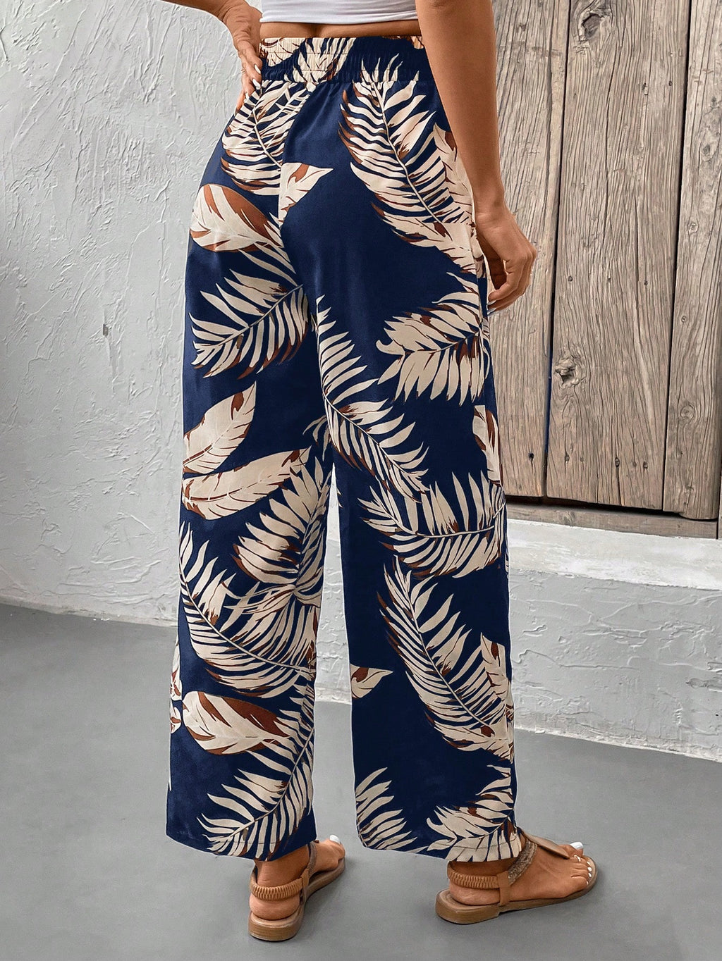 BELLAVOG Frenchy Plant Print Knot Front Wide Leg Casual Pants