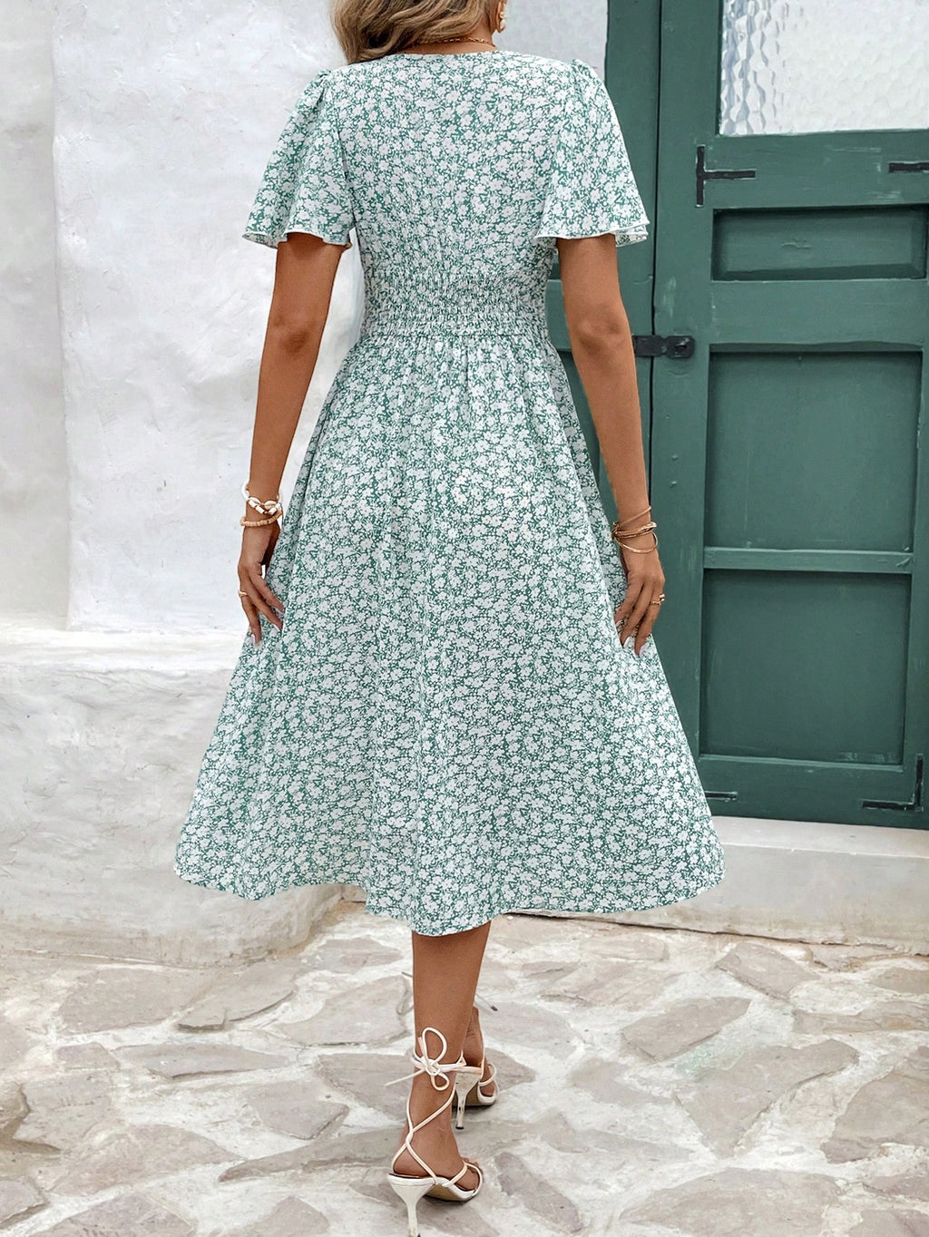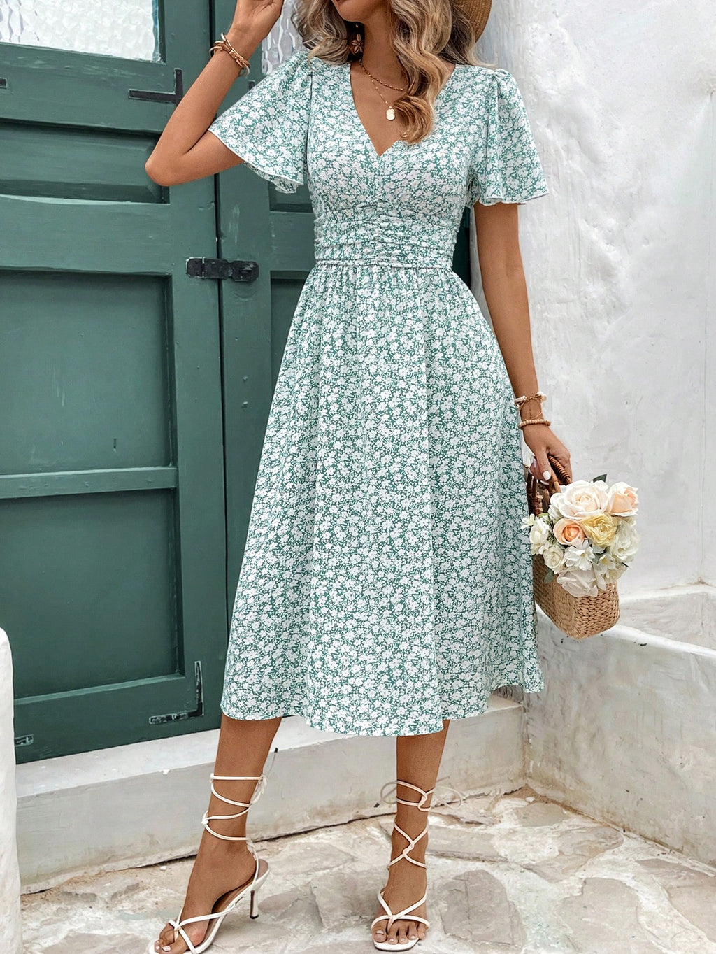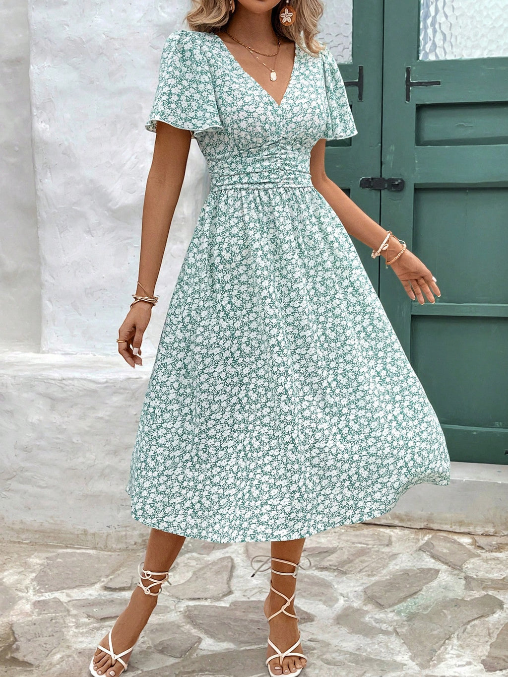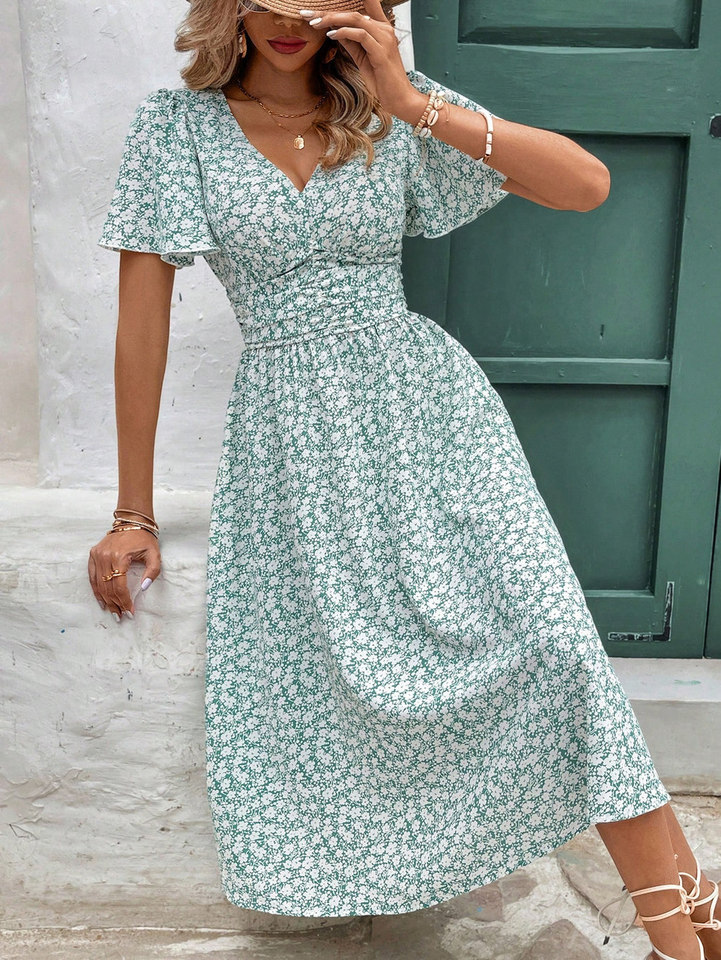 BELLAVOG Frenchy Women Summer Vacation Style Full Floral Print V-Neck Ruffle Short Sleeve Long Dress,Summer Dresses For Women,Pastel Dresses For Women