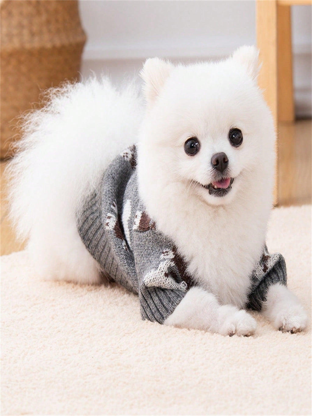 BELLAVOG Grey Knit Warm Pet Sweater With Sleeves, Cute Panda