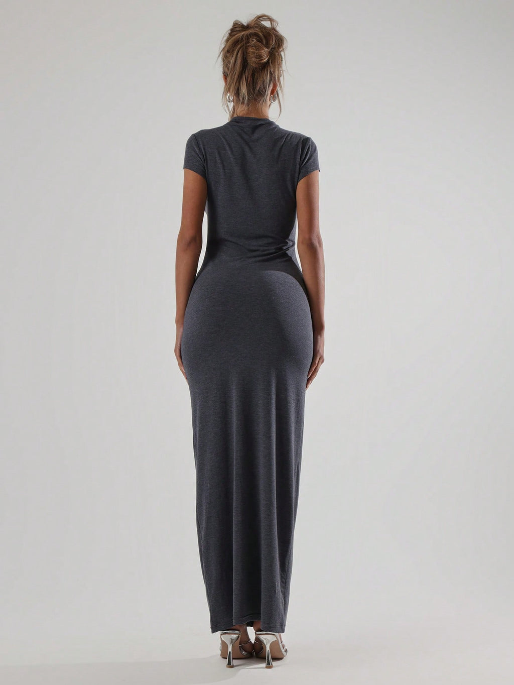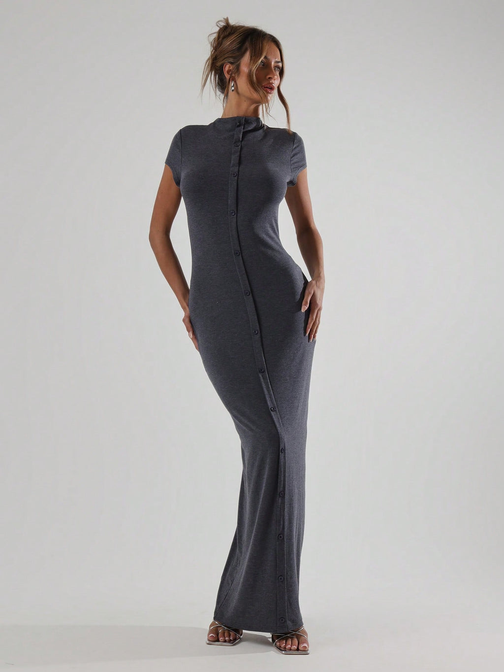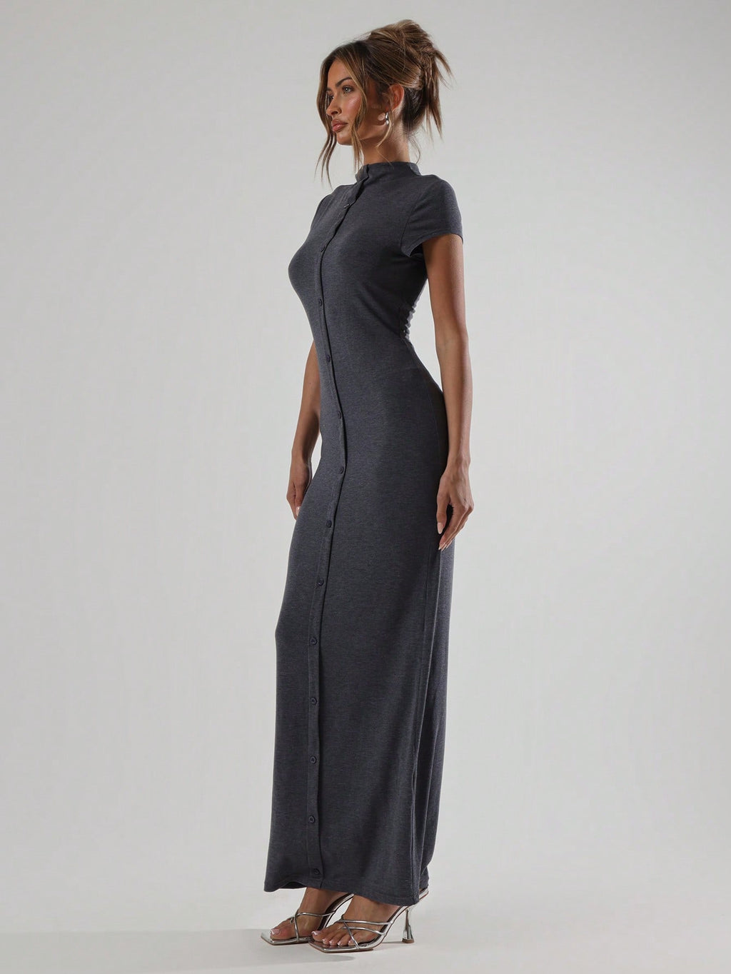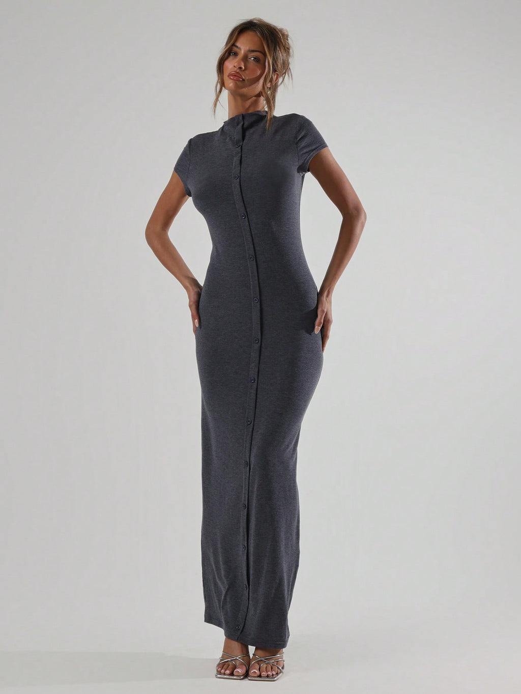 BELLAVOG High Neck Button Through Fitted Short Sleeve Cute Casual 90's Y2k Maxi Dress For Spring Summer Vacation Al Fresco