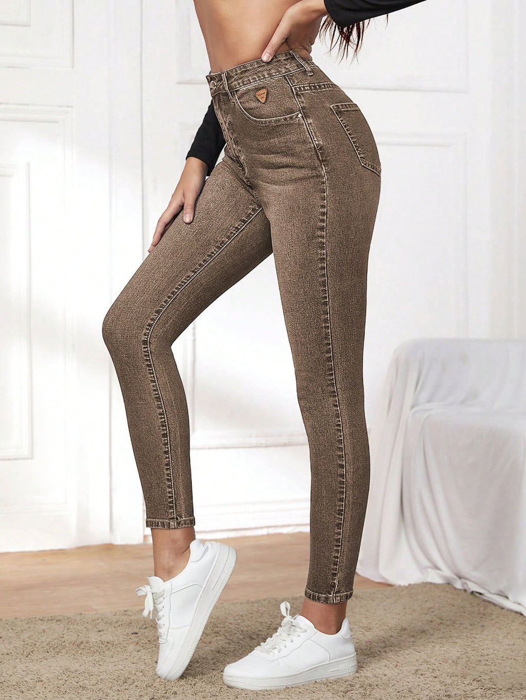 BELLAVOG High Waist Patch Detail Skinny Jeans