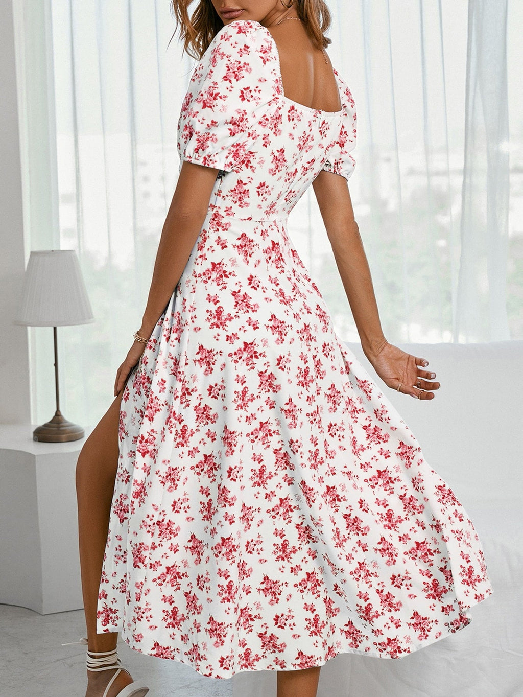 BELLAVOG Holidaya Allover Floral Knot Split Thigh A-line Dress
