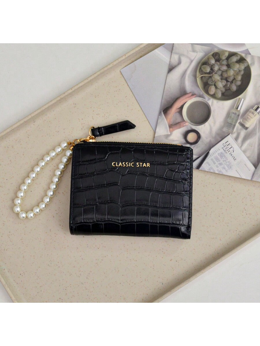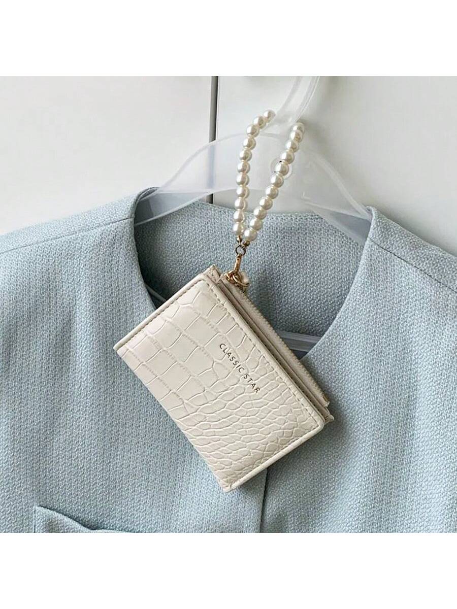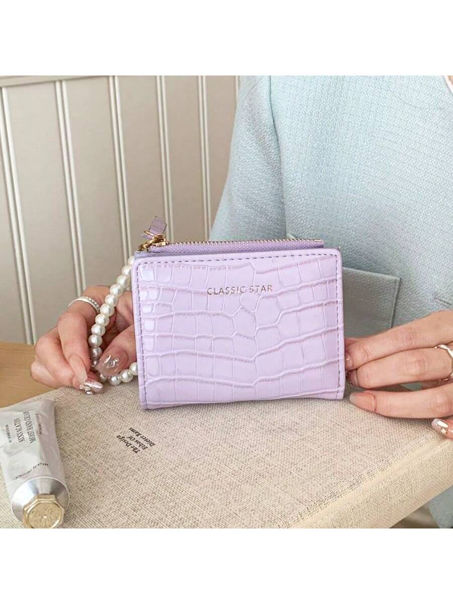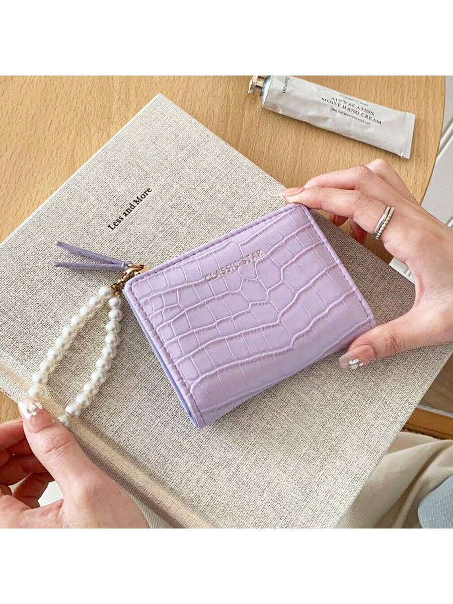 BELLAVOG Ins Simple Korean Fashion Alligator Textured Faux Pearl Chain Folding Coin Women Wallet Birthday Pink Bag Christmas Gifts Gift Thanksgiving For Women Wallet Purse Wallet Small Wallet