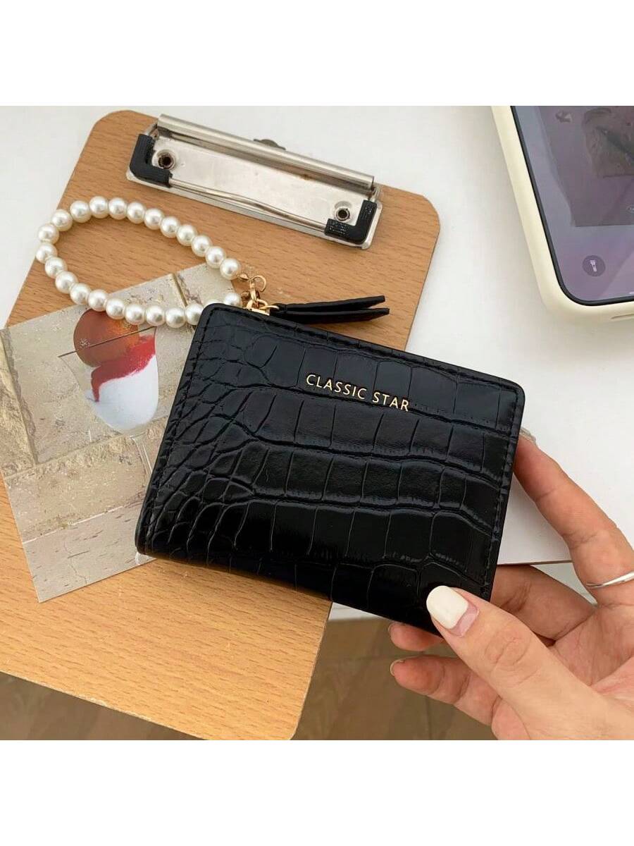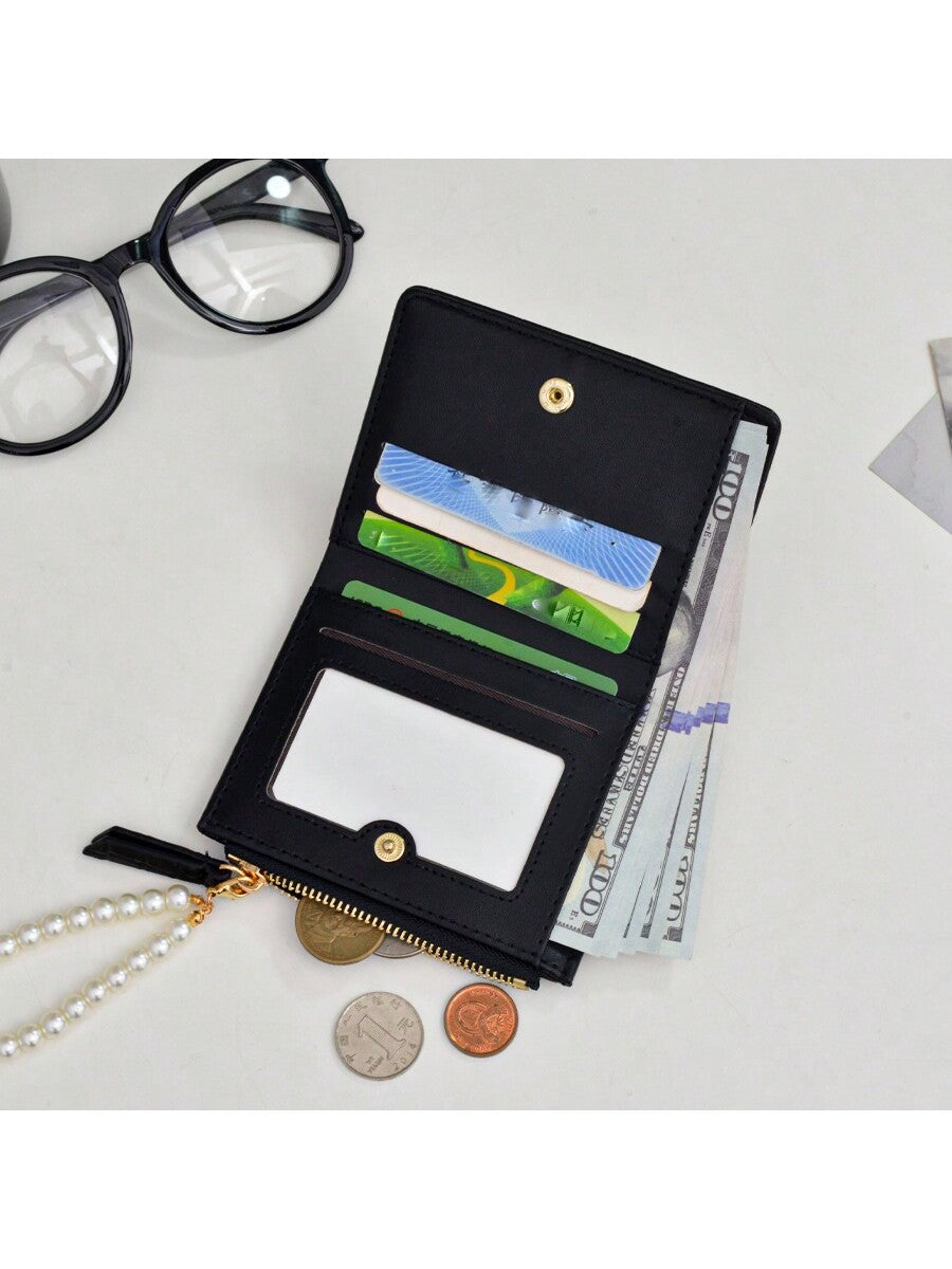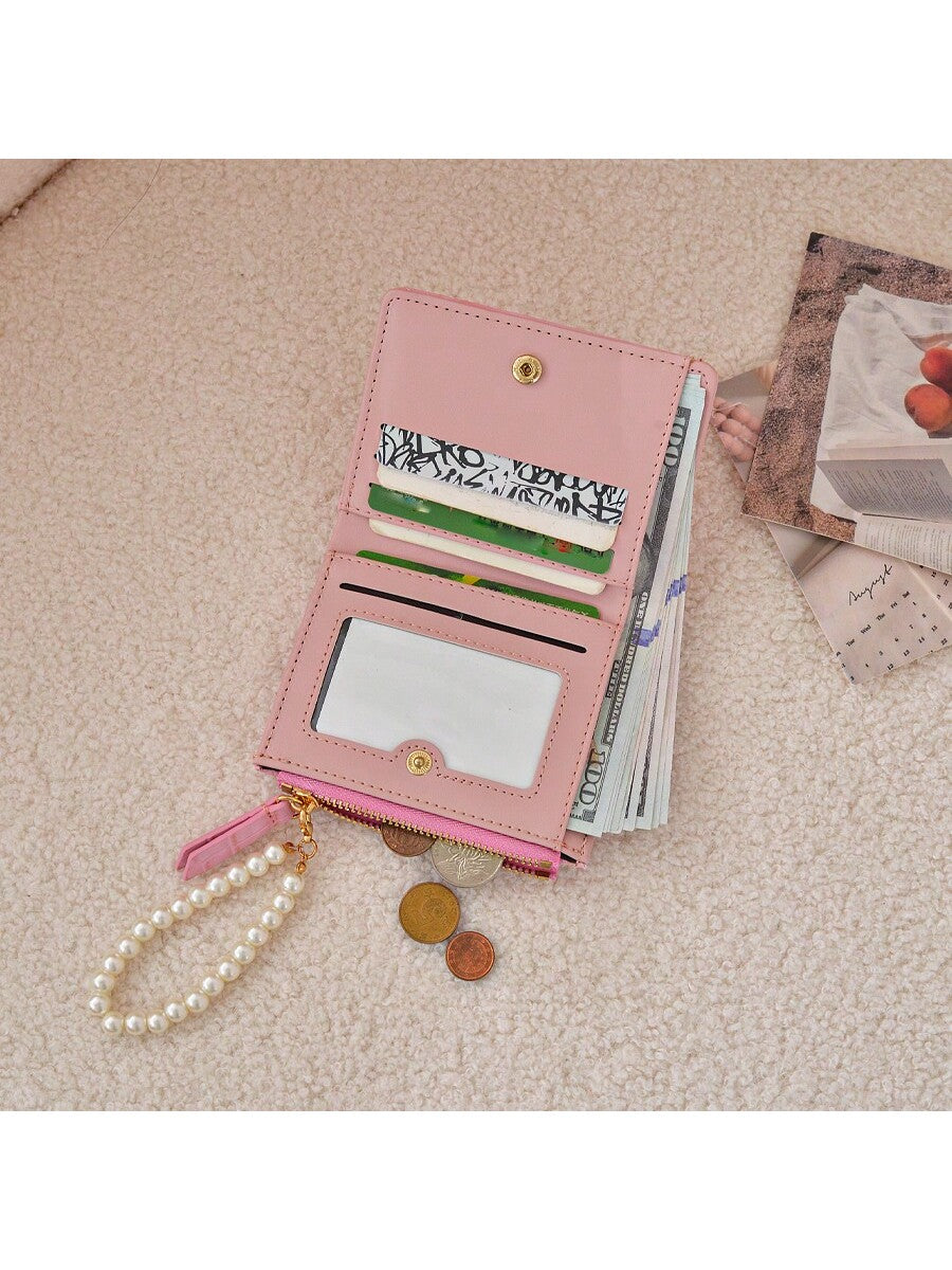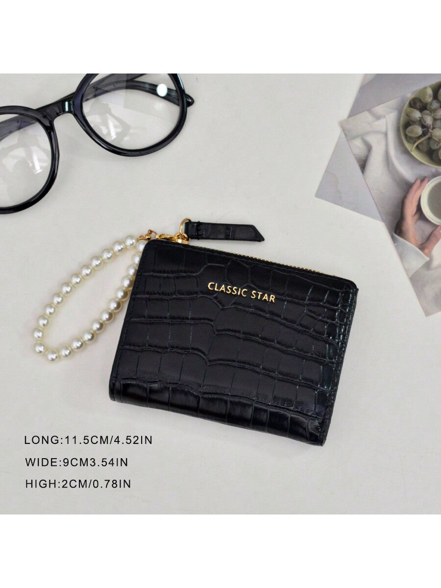 BELLAVOG Ins Simple Korean Fashion Alligator Textured Faux Pearl Chain Folding Coin Women Wallet Birthday Pink Bag Christmas Gifts Gift Thanksgiving For Women Wallet Purse Wallet Small Wallet
