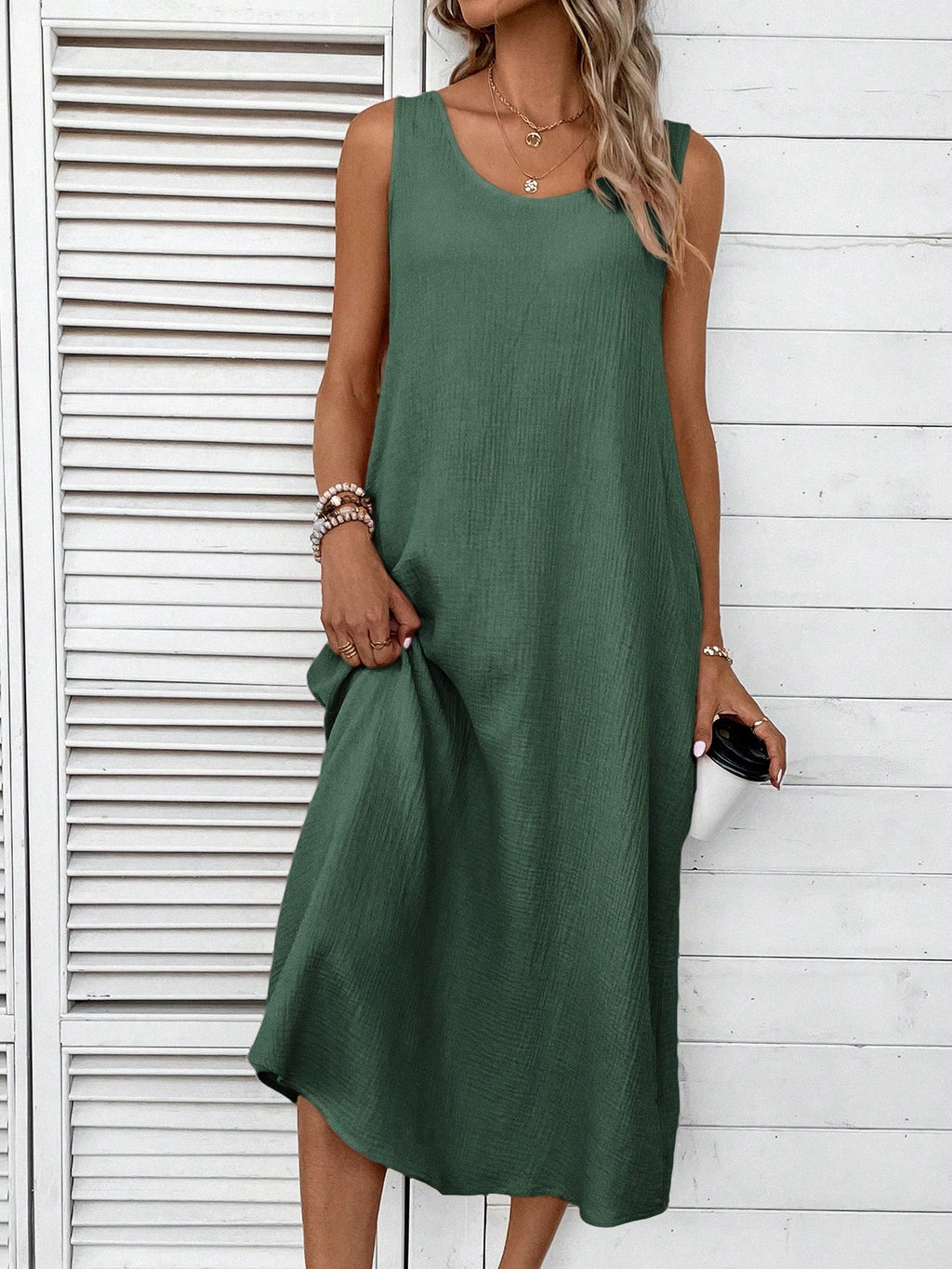 BELLAVOG JORESS Women's Textured Loose Fit Sleeveless Dress For Summer Casual Wear