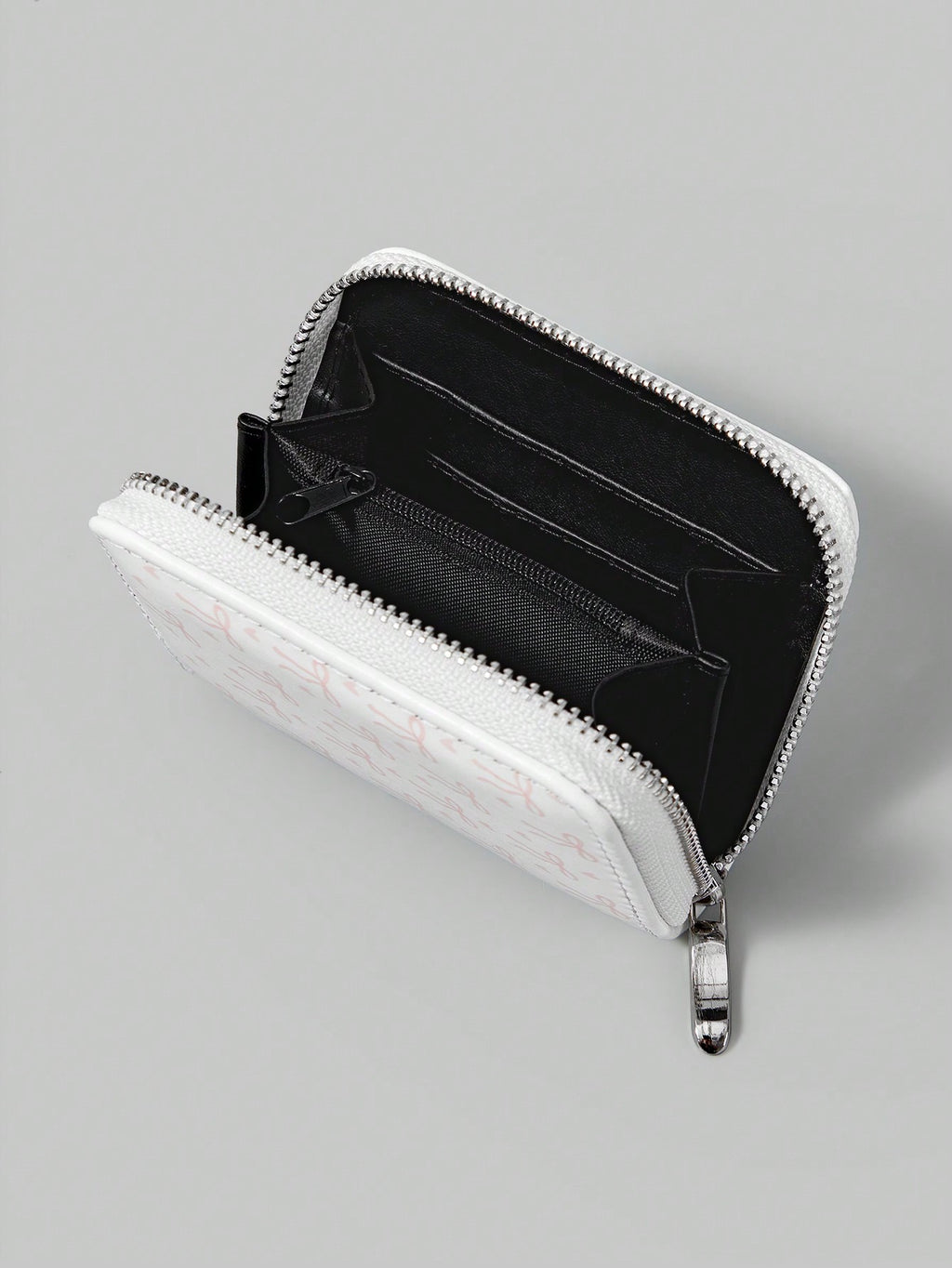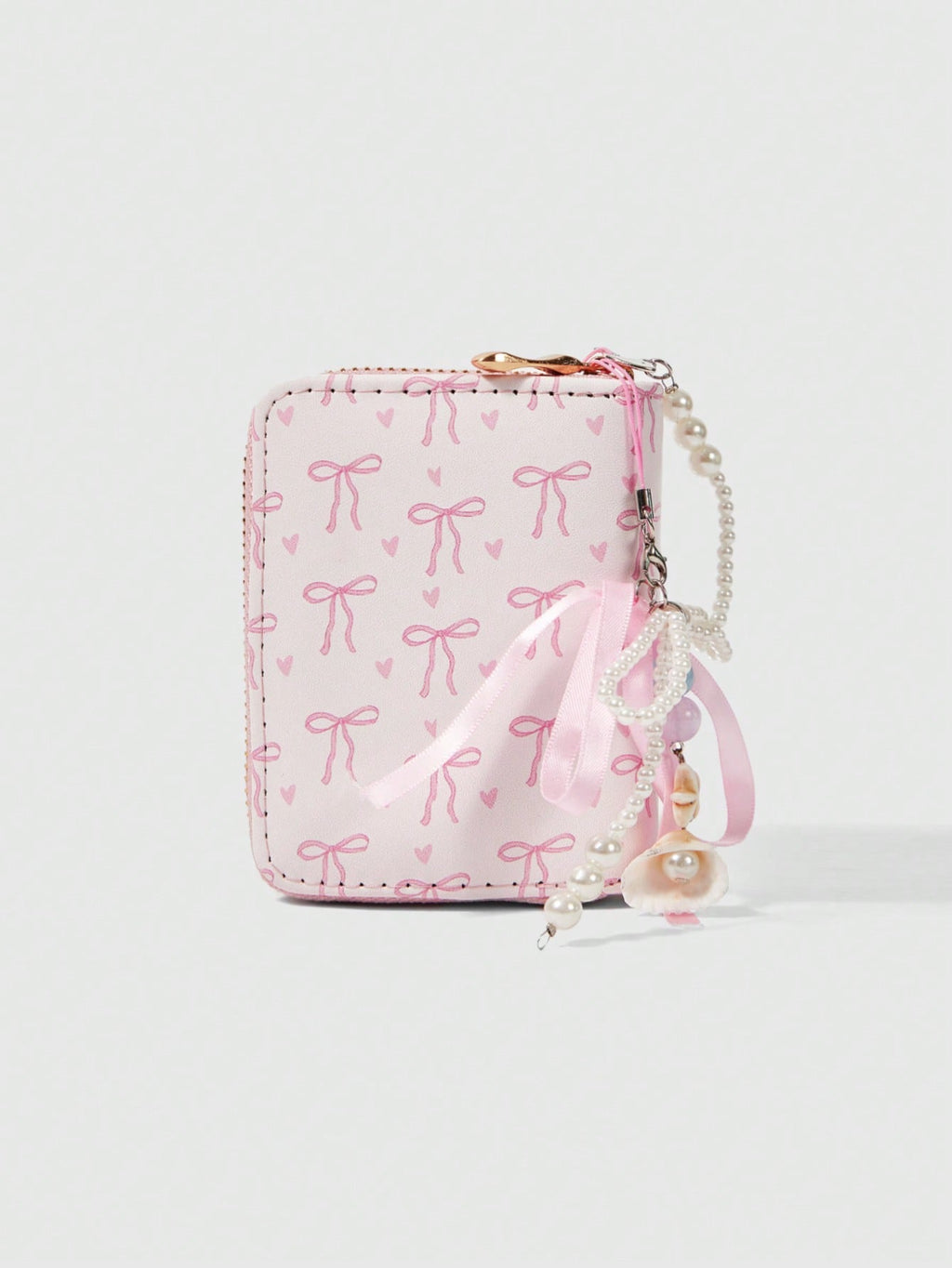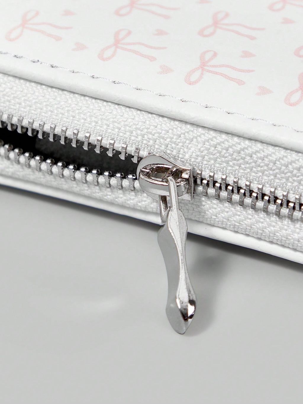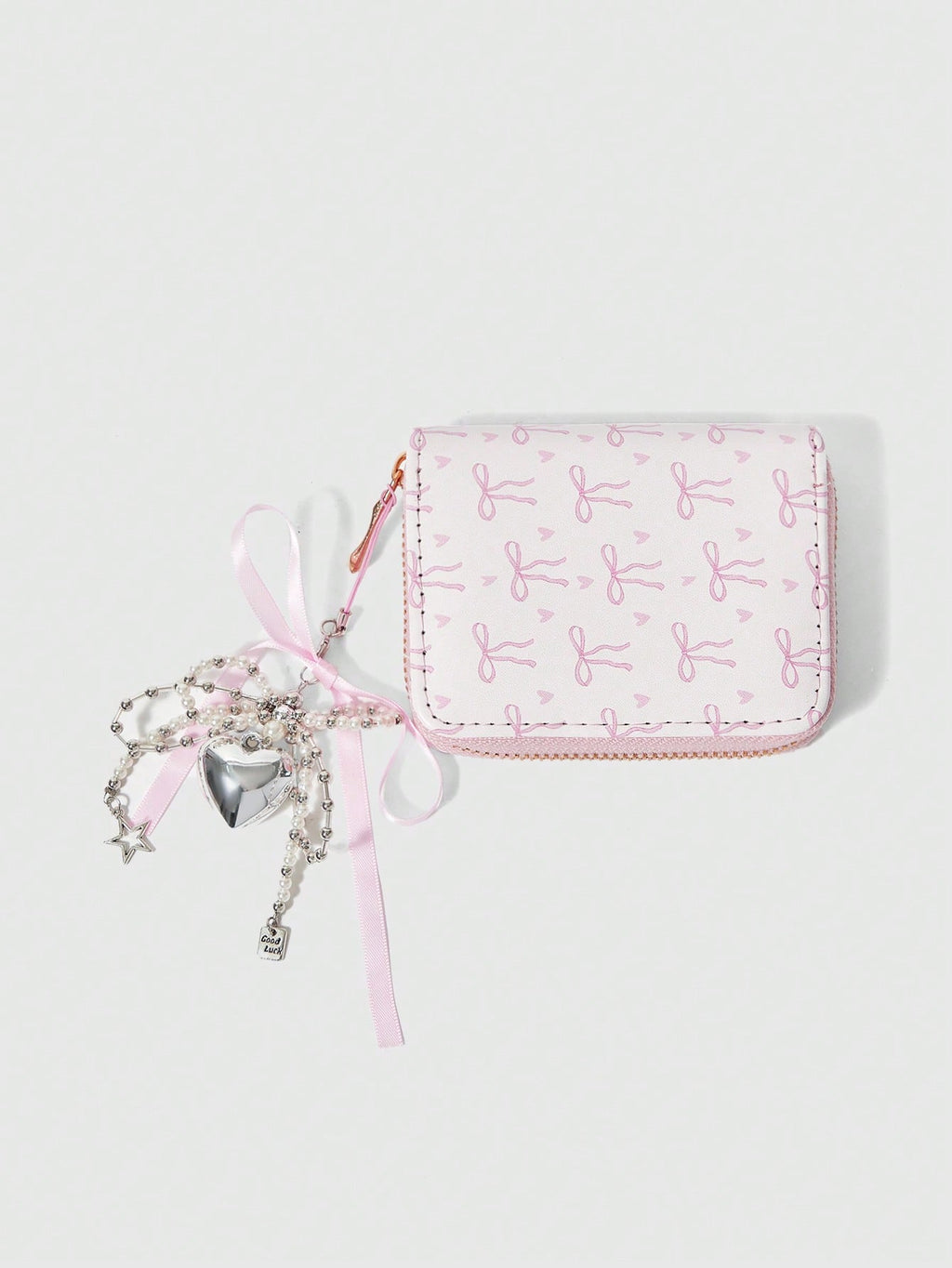 BELLAVOG Kawaii White Base With All-Over Pink Bow Print Short Wallet, Creative Multi-Functional Card Holder
