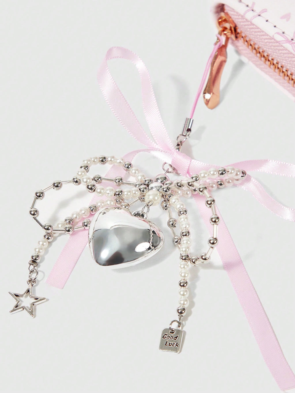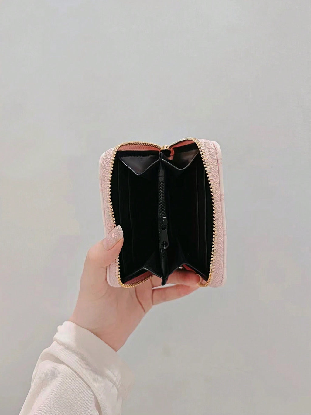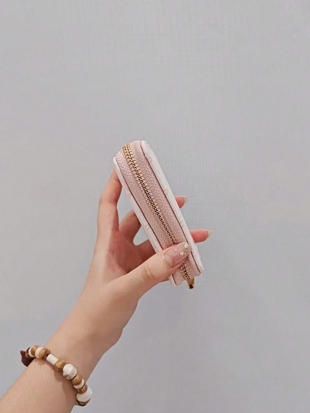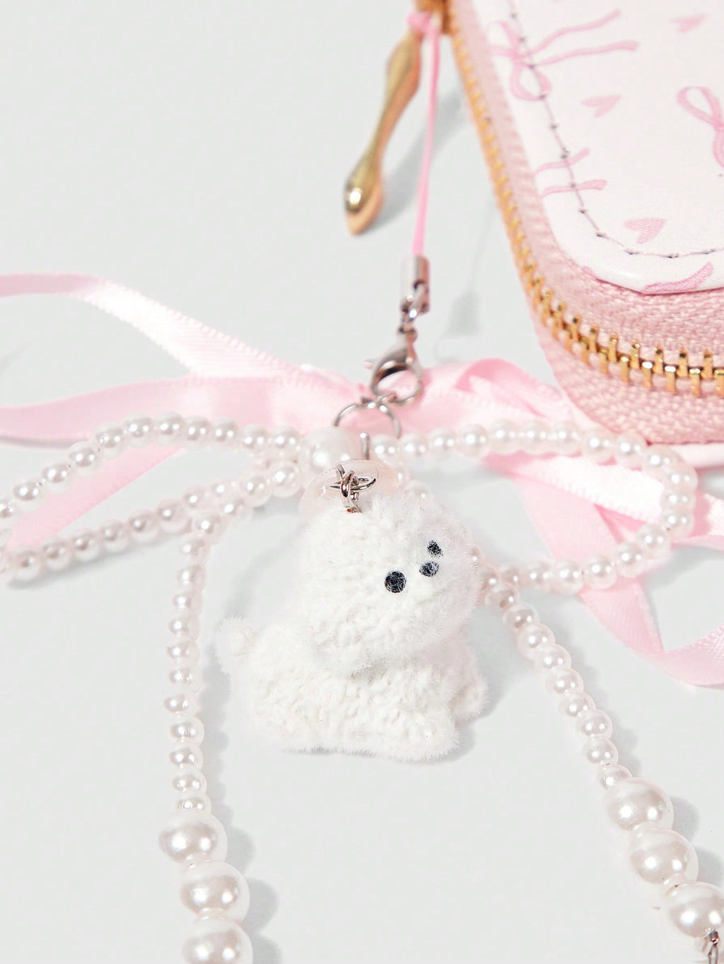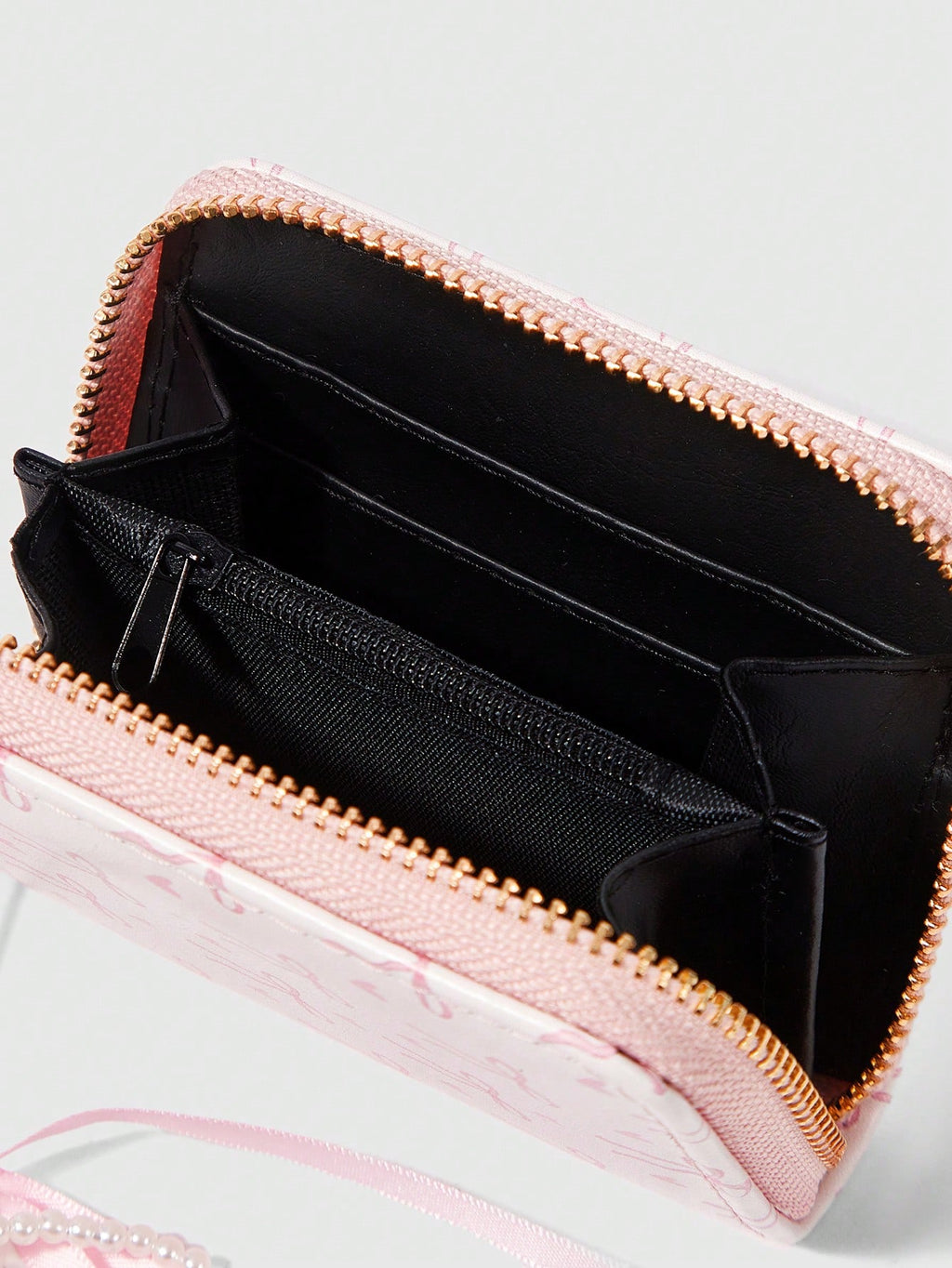 BELLAVOG Kawaii White Base With All-Over Pink Bow Print Short Wallet, Creative Multi-Functional Card Holder