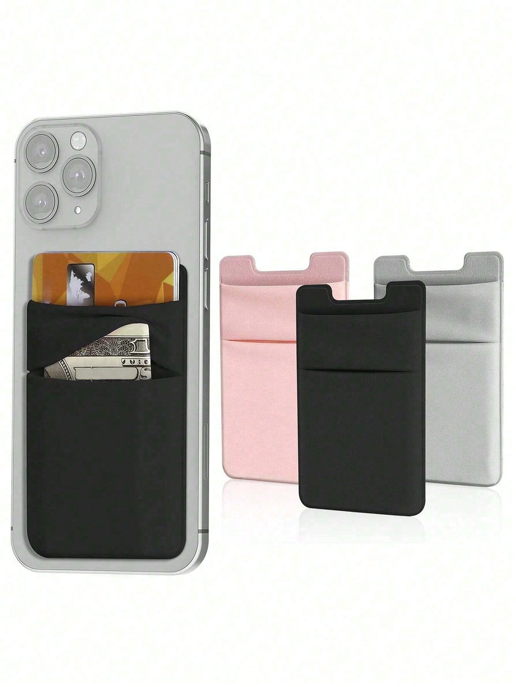 BELLAVOG Mobile Phone Card Holder, Mobile Phone Case Back Sticker, Double Pocket Wallet, Elastic Lycra Card Holder, Suitable For Credit Cards, ID Card Stickers, Universal For All Mobile Phone Models For Women For Men Wallet Mini Wallet Purse Wallet