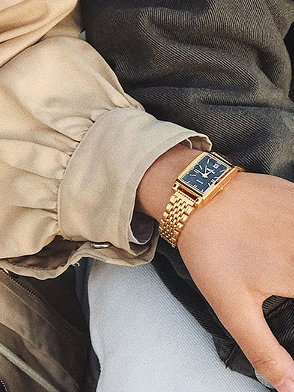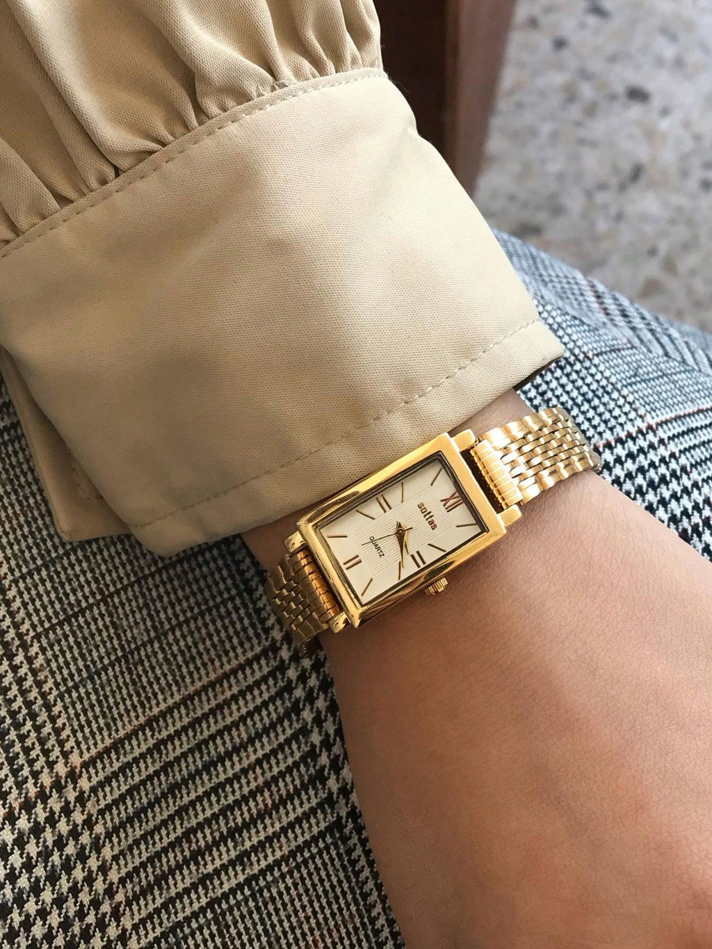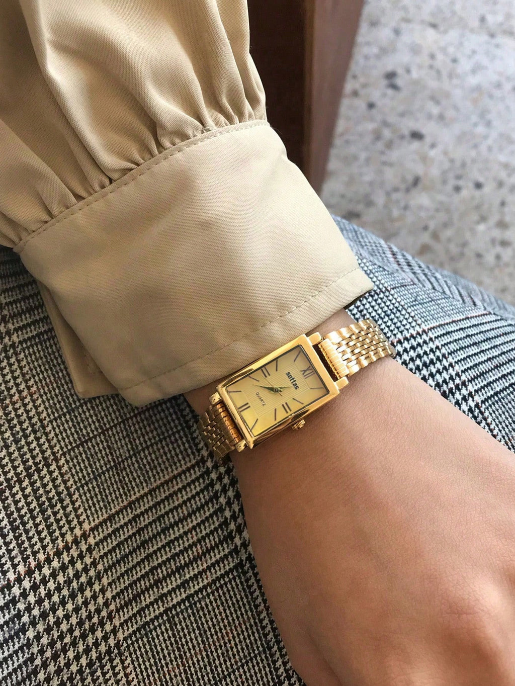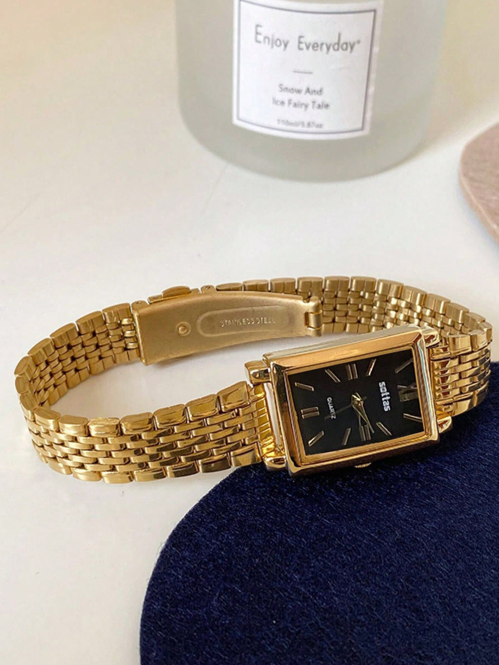 BELLAVOG New Arrival Square Casual Simple Atmosphere Steel Strap Gold Dial Women's Wristwatch