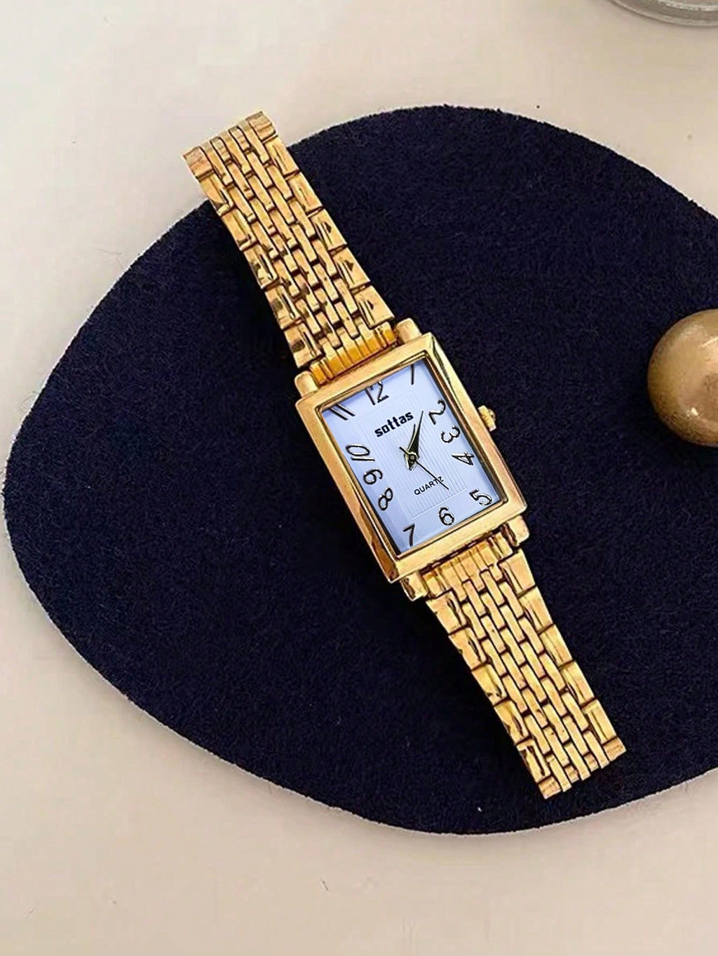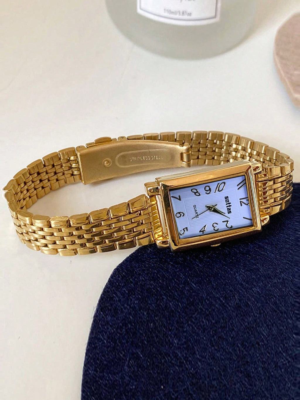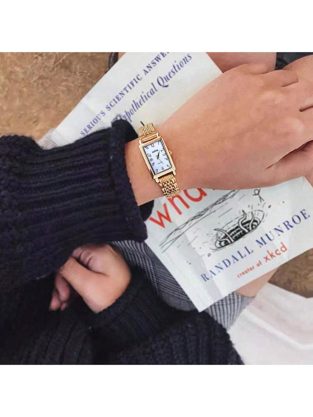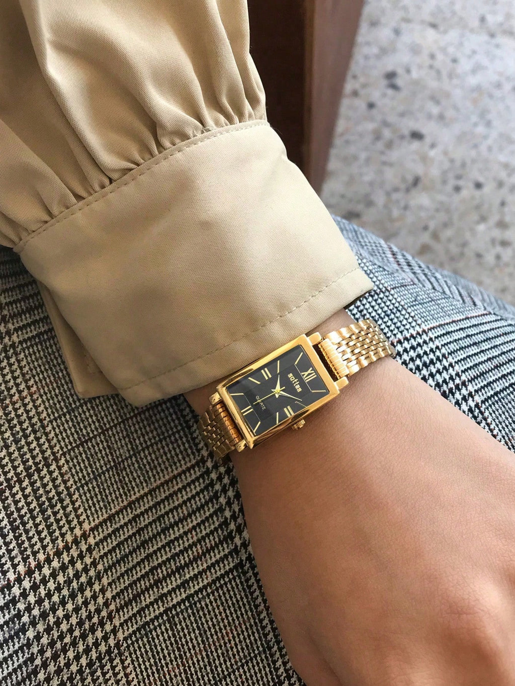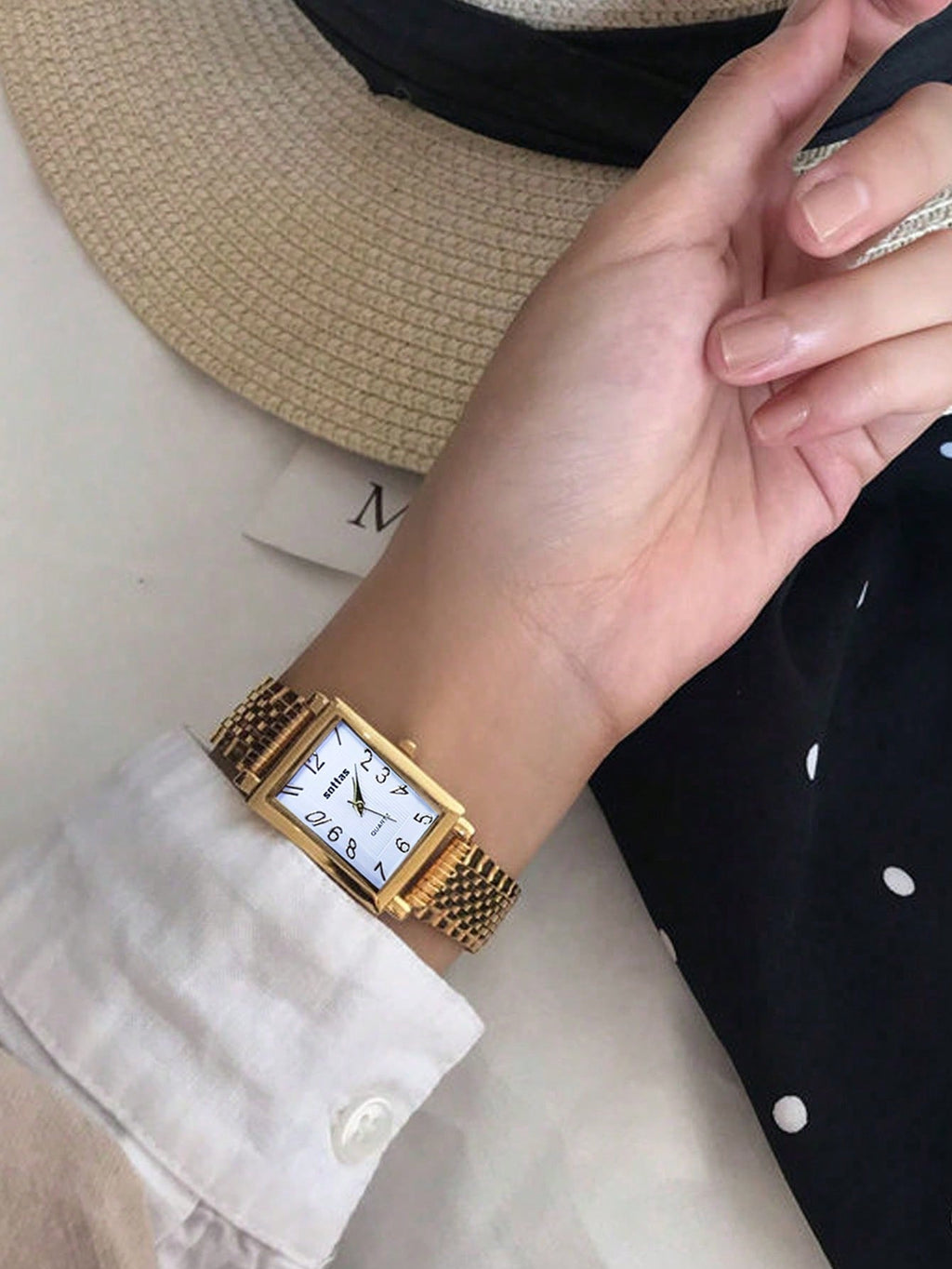 BELLAVOG New Arrival Square Casual Simple Atmosphere Steel Strap Gold Dial Women's Wristwatch