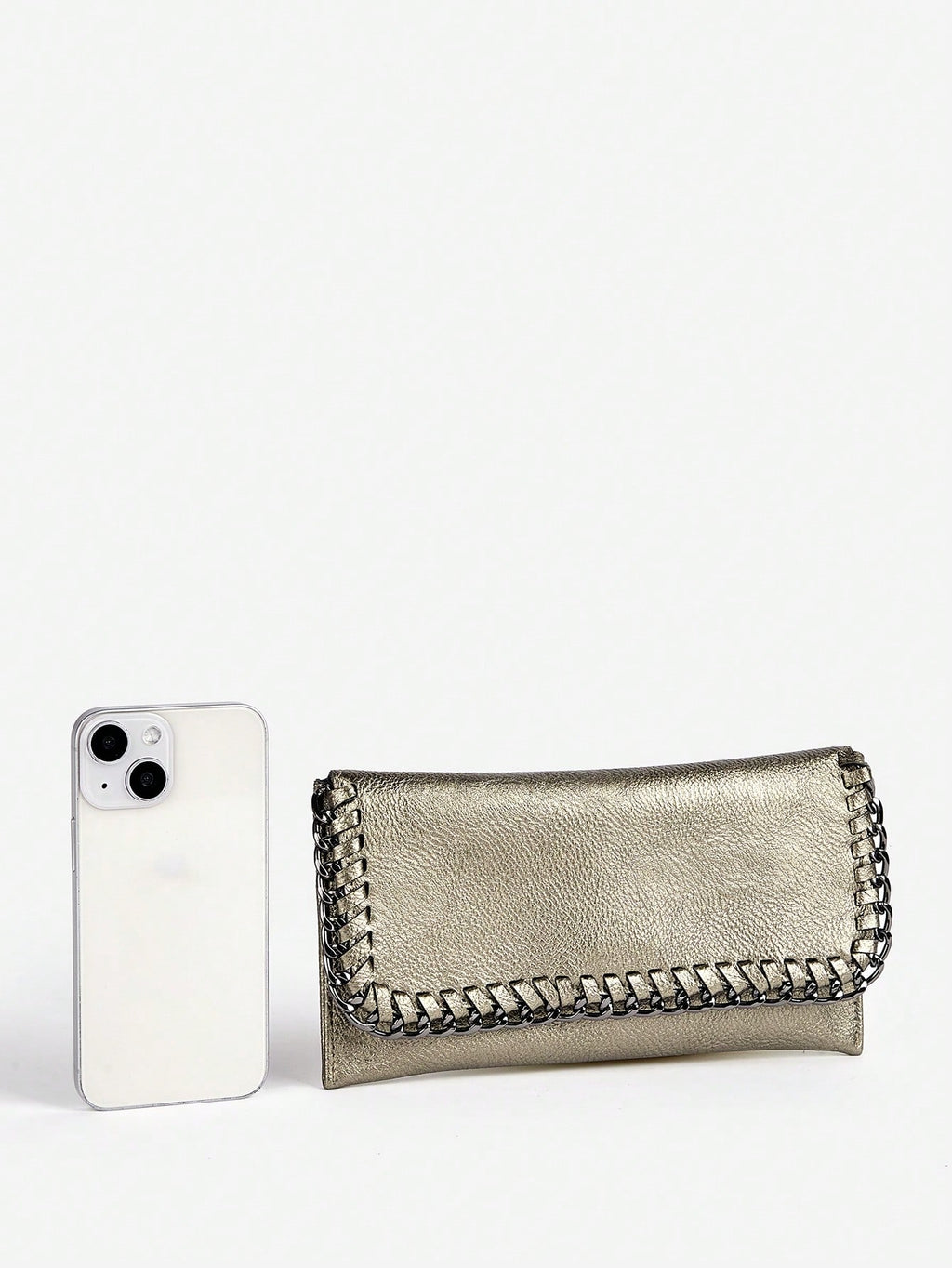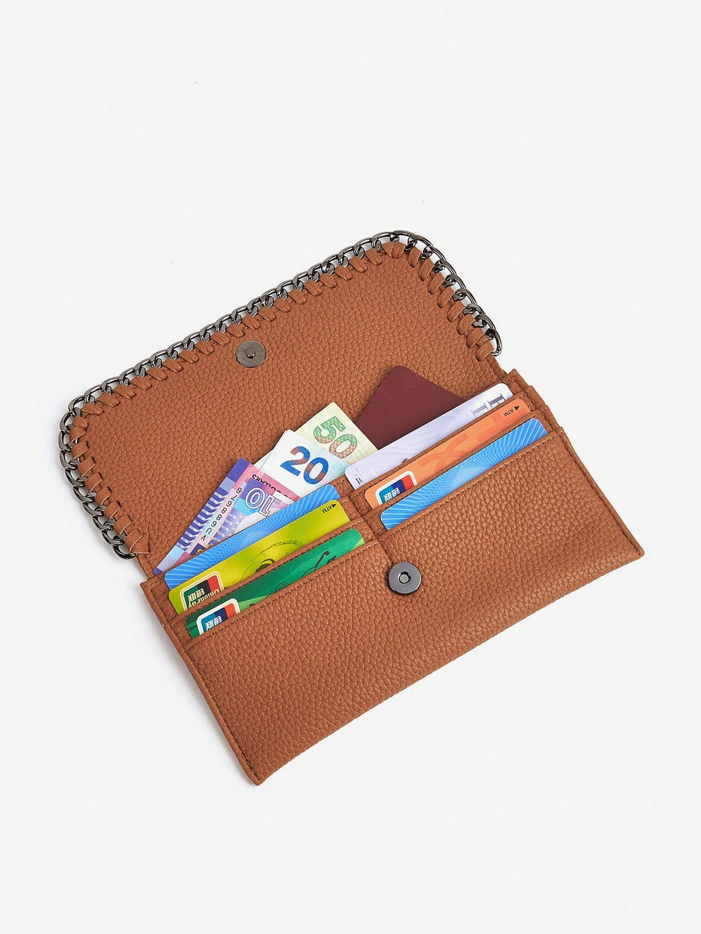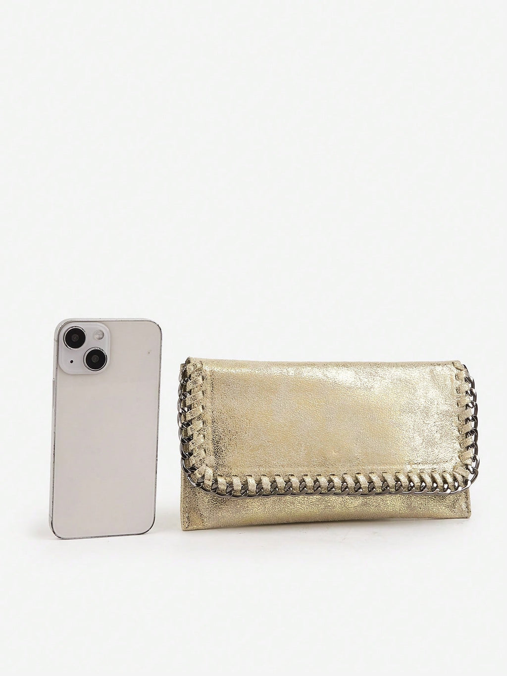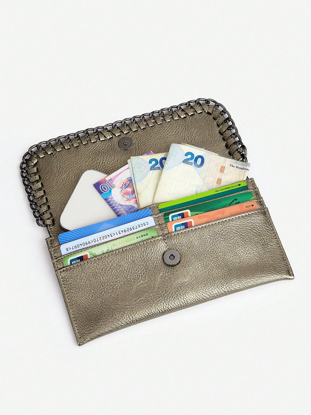 BELLAVOG New Fashion Y2K Short Flip Cover Magnet Closure Multi Card Slot Multi-Layer Simple Long Wallet Card Holder Coin Purse Rock Chic Chain Strap Elegant Lady Clutch Wristlet Phone Bag For Women Wallet Purse Wallet