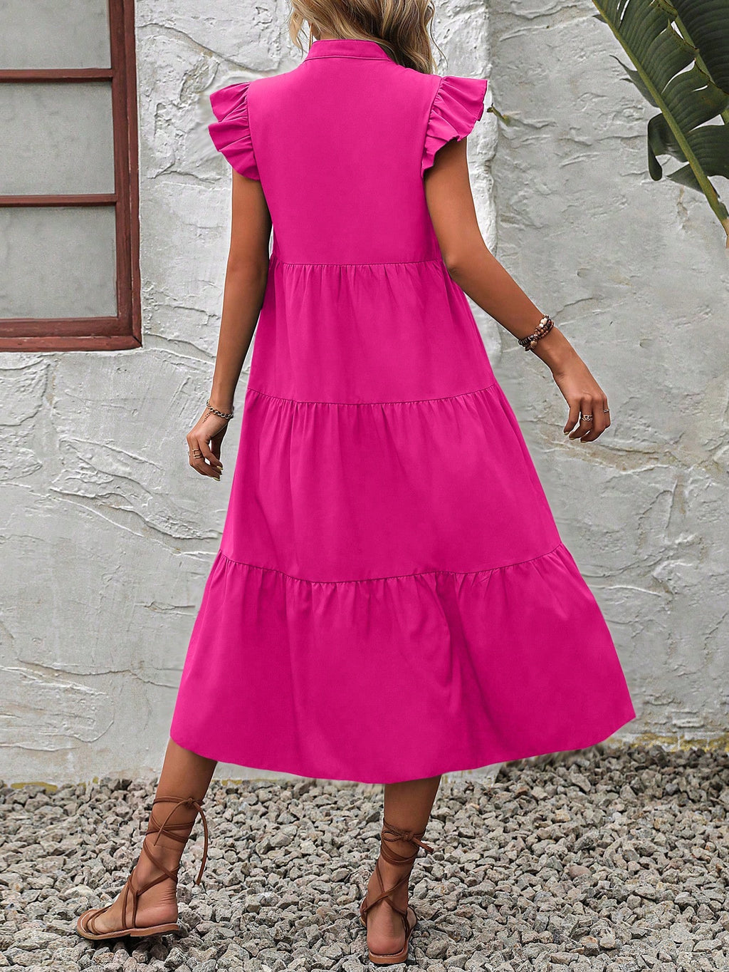 BELLAVOG Notched Neckline Ruffle Trim Smock Dress Maxi Women Outfit