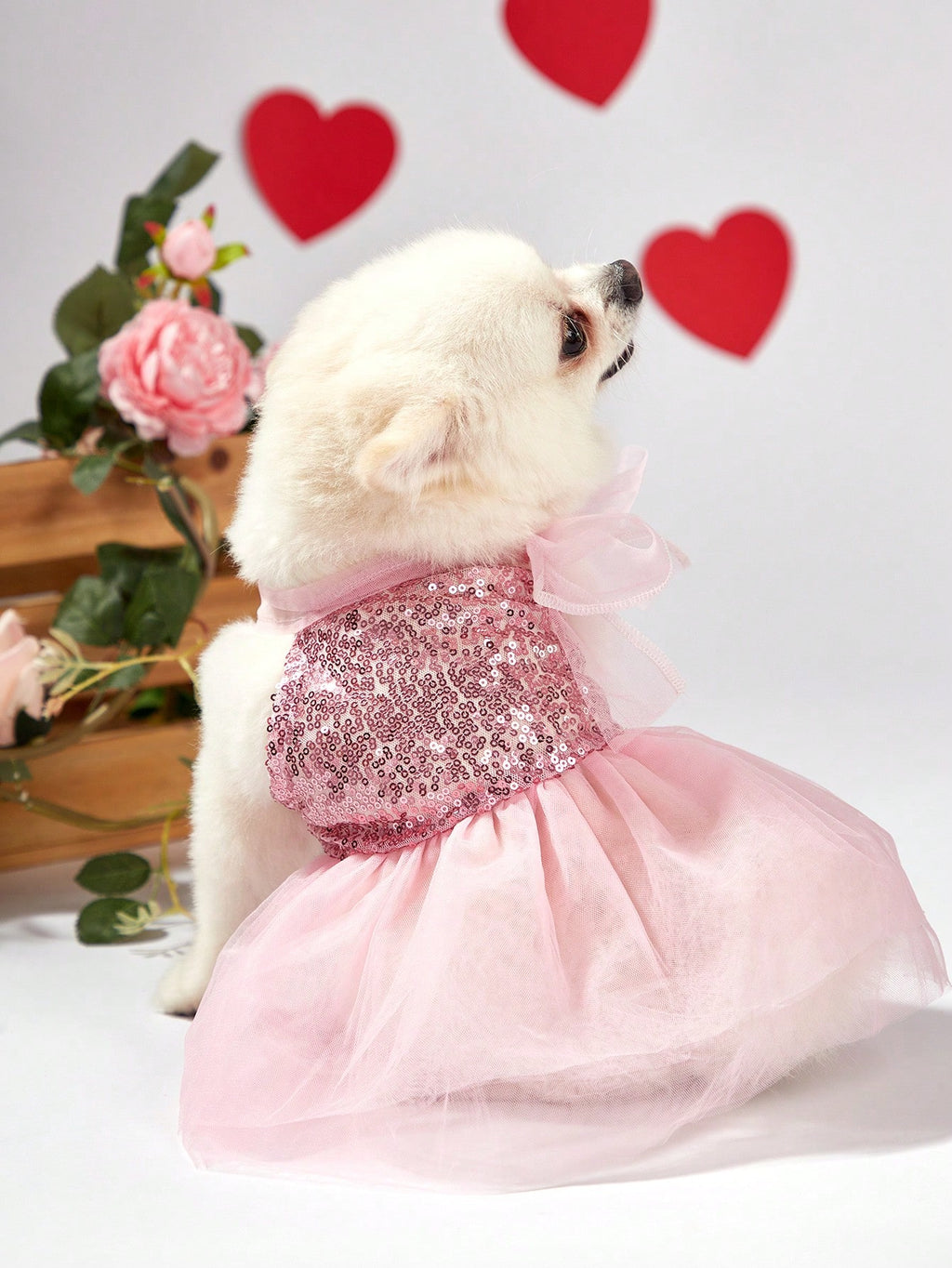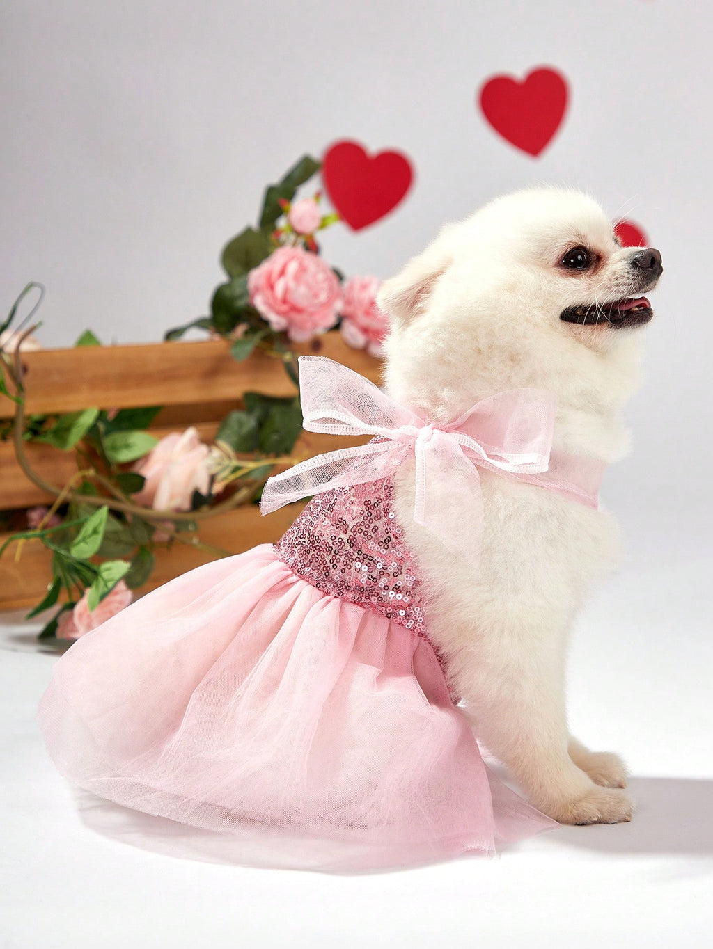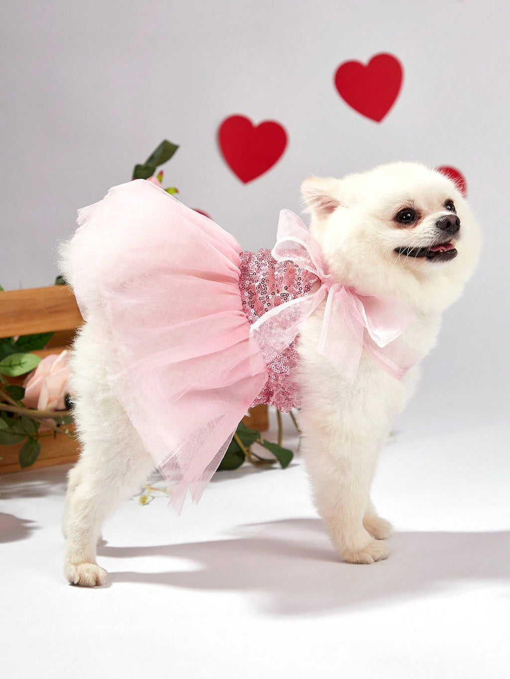 BELLAVOG Pink Glitter Bow Tie Ribbon Small Formal Dress, Valentine's Day Pet Cat Dog Skirt