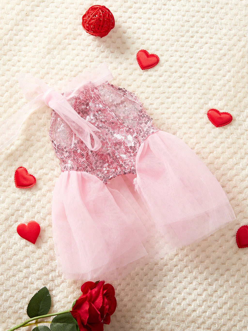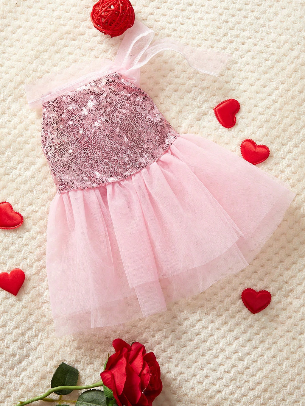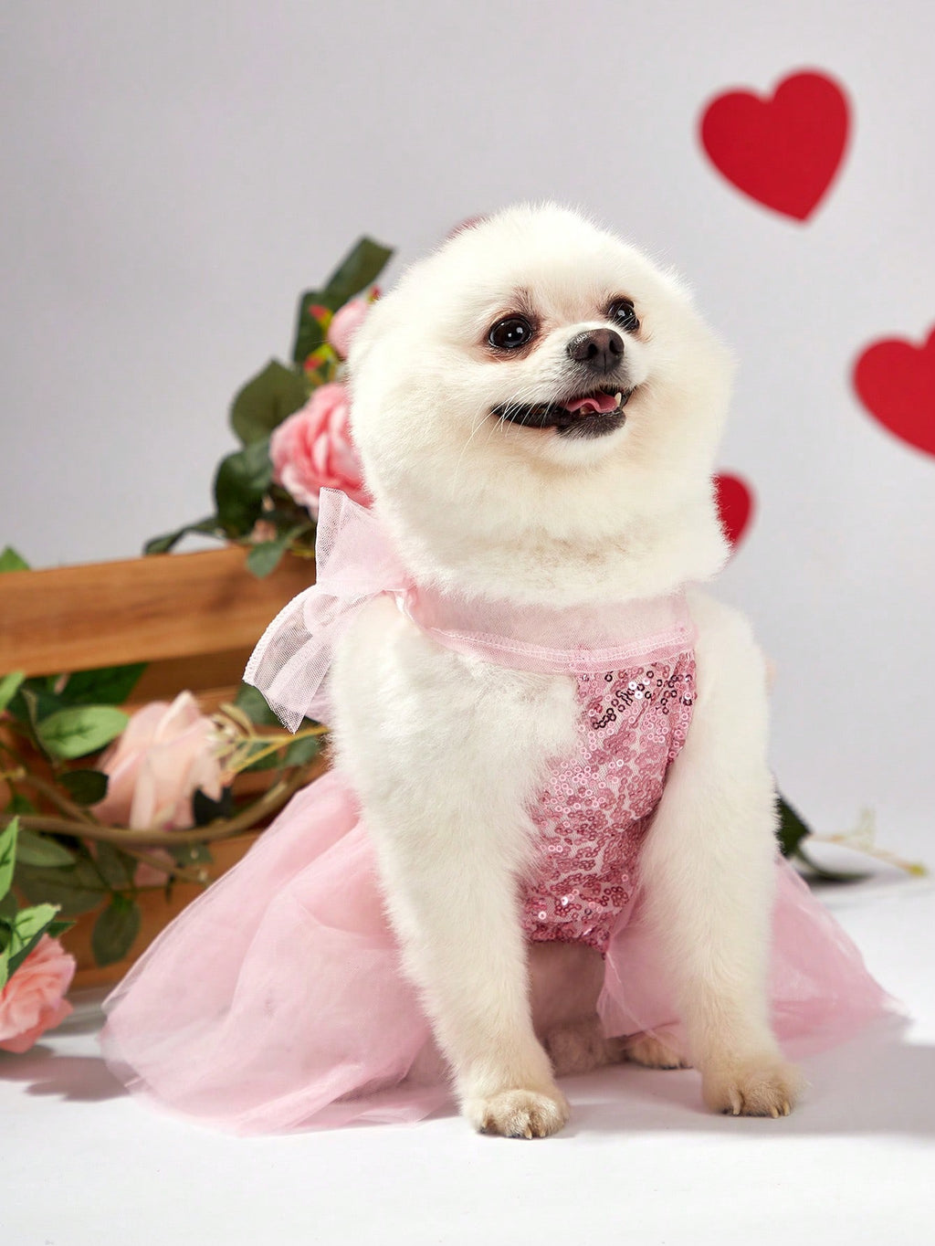 BELLAVOG Pink Glitter Bow Tie Ribbon Small Formal Dress, Valentine's Day Pet Cat Dog Skirt