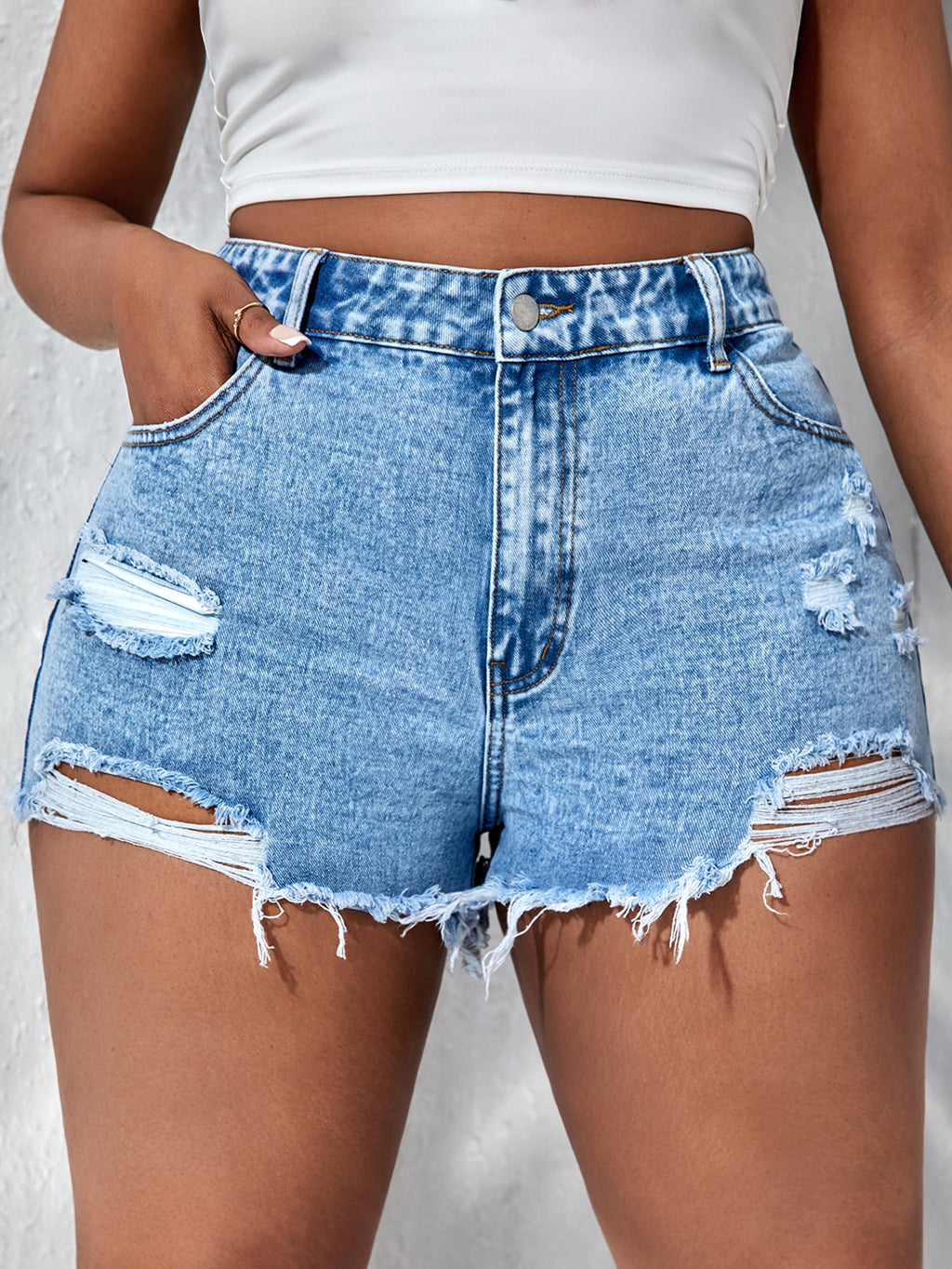 BELLAVOG Plus Ripped Raw Hem Denim Shorts
