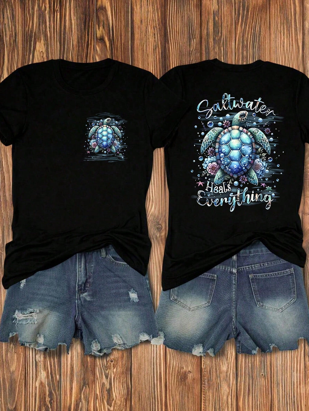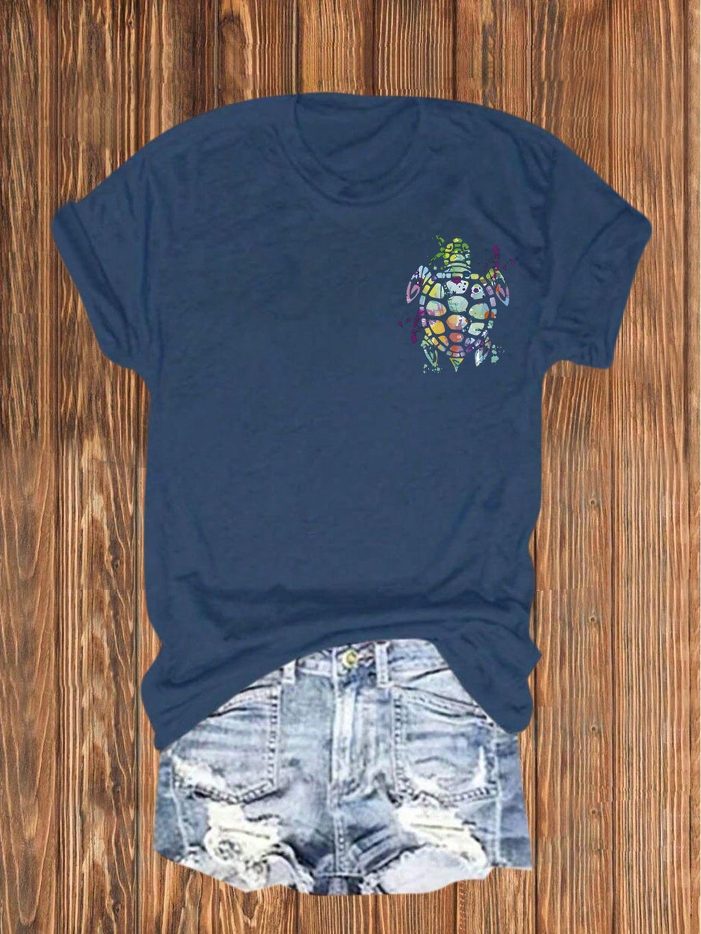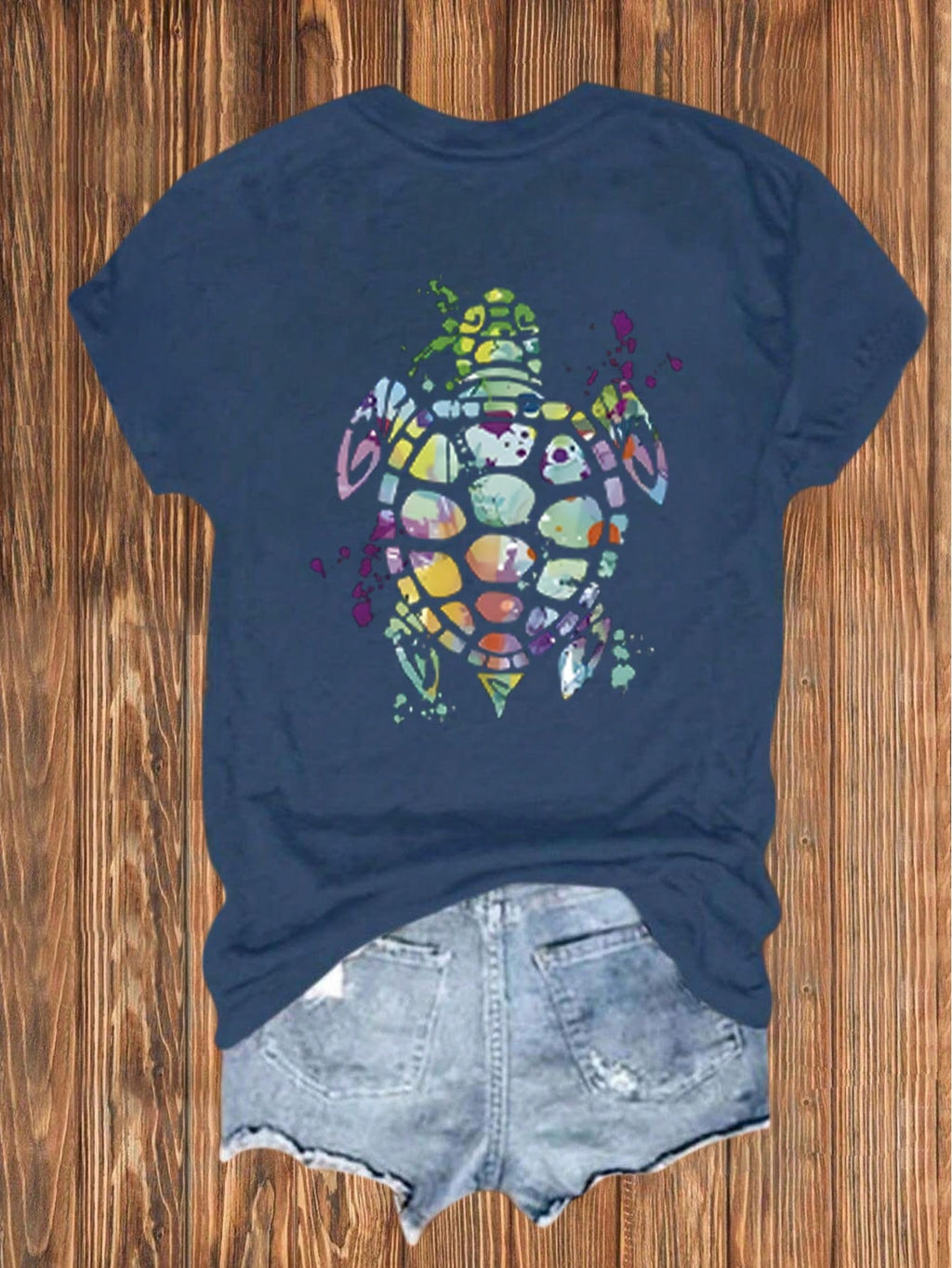BELLAVOG Plus Size Turtle Print Short Sleeve T-Shirt, Casual For Spring/Summer