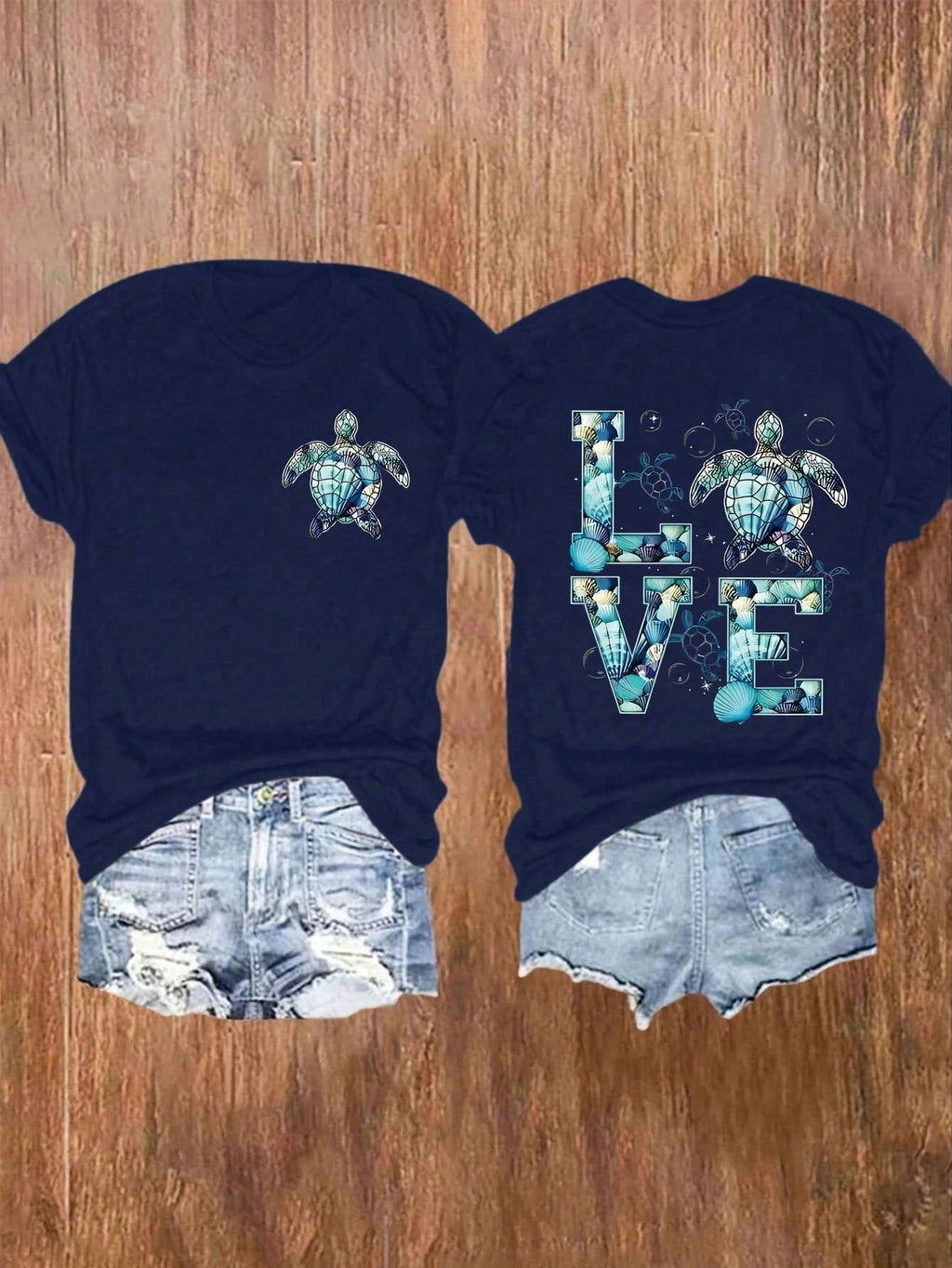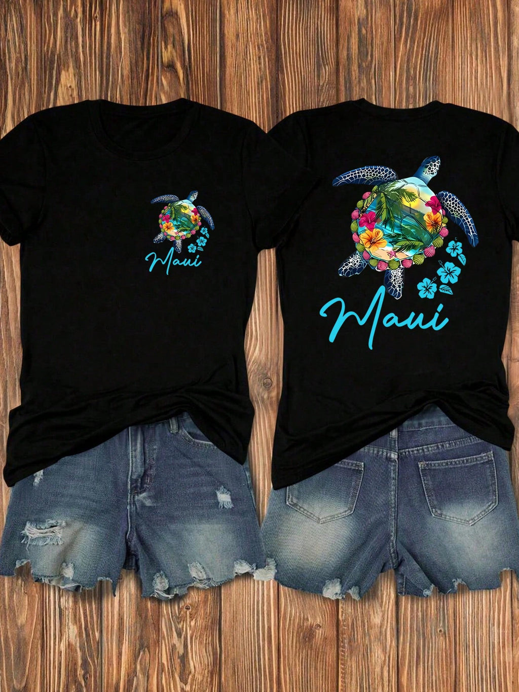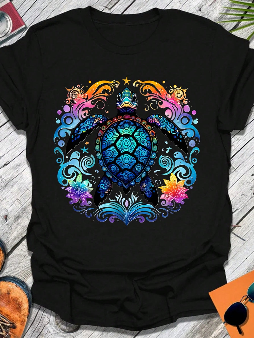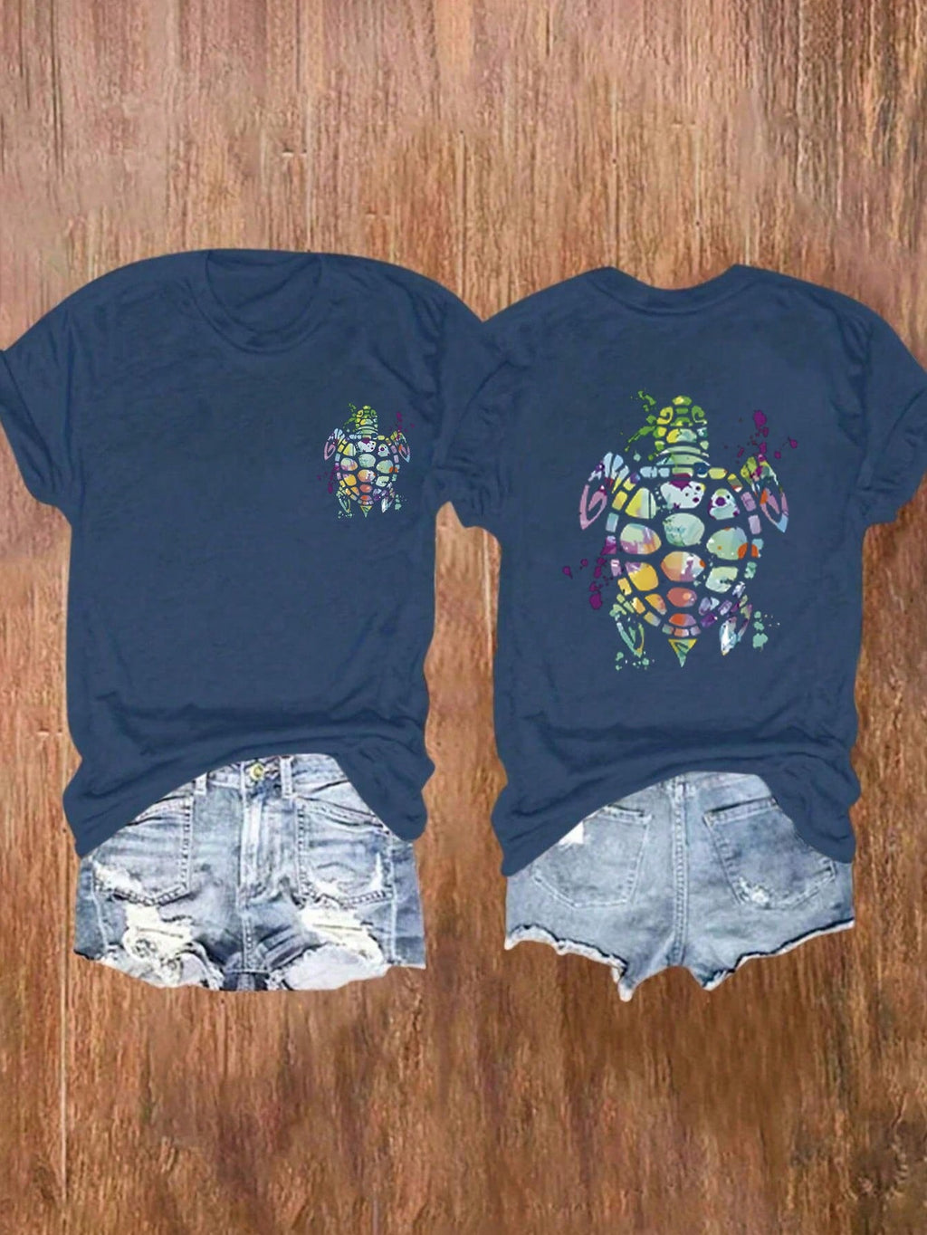 BELLAVOG Plus Size Turtle Print Short Sleeve T-Shirt, Casual For Spring/Summer