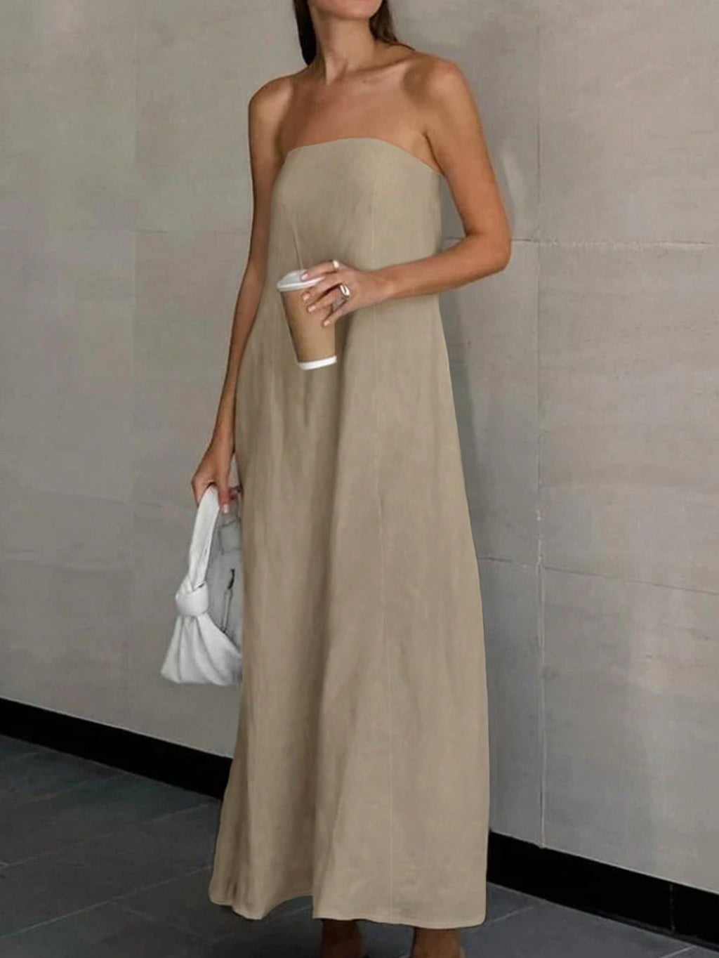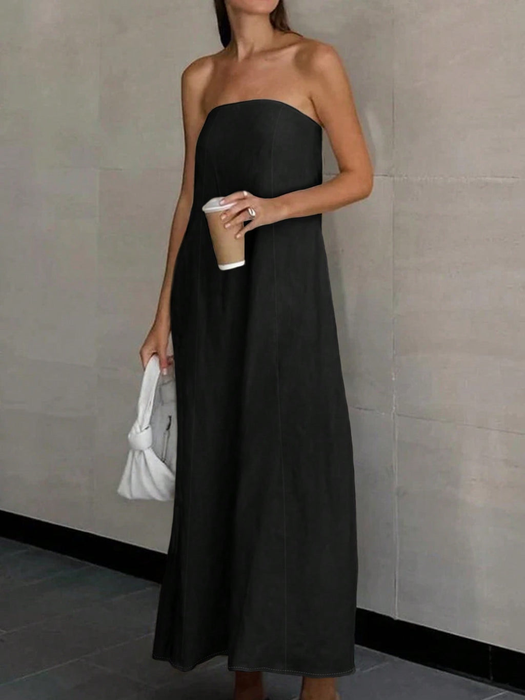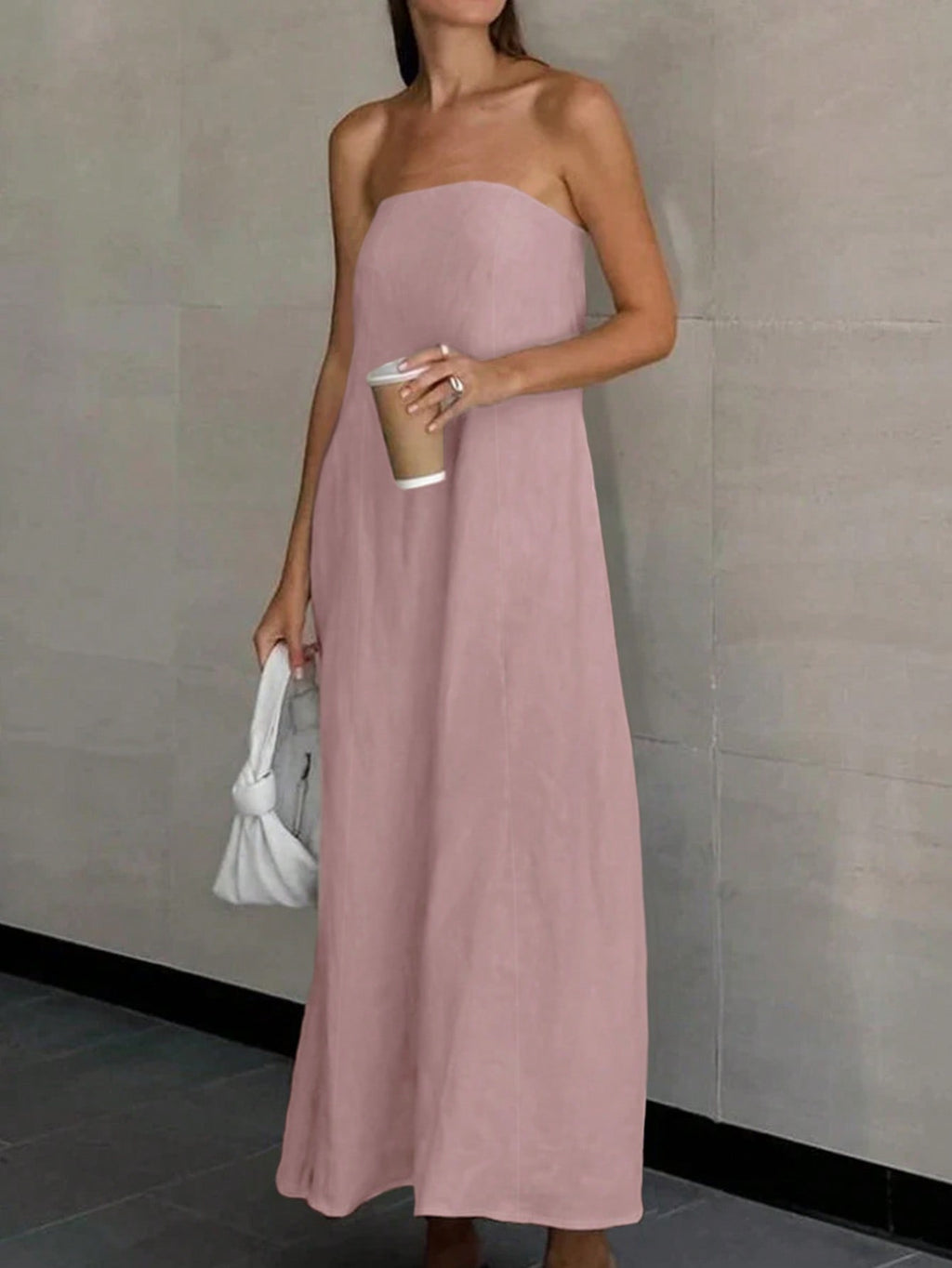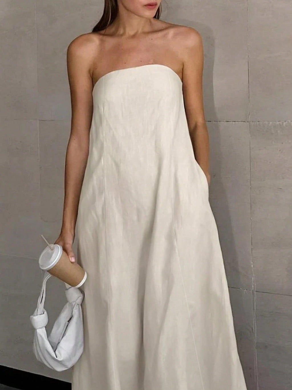 BELLAVOG Plus Size Women Solid Color Bandeau Loose Casual Dress