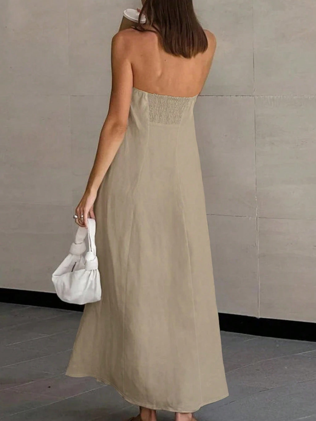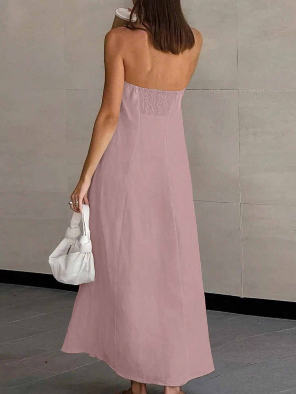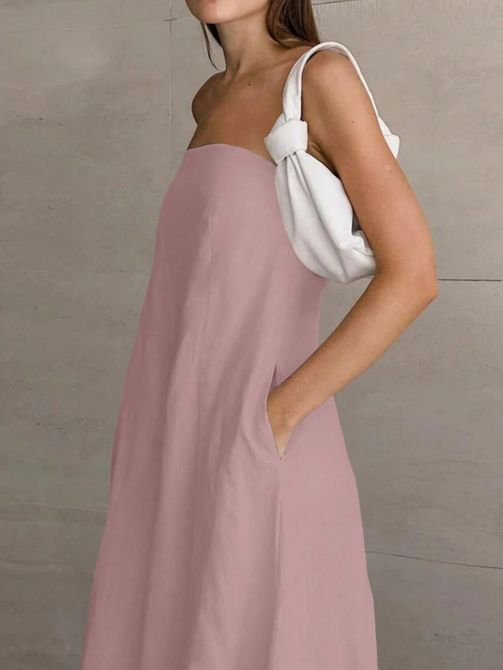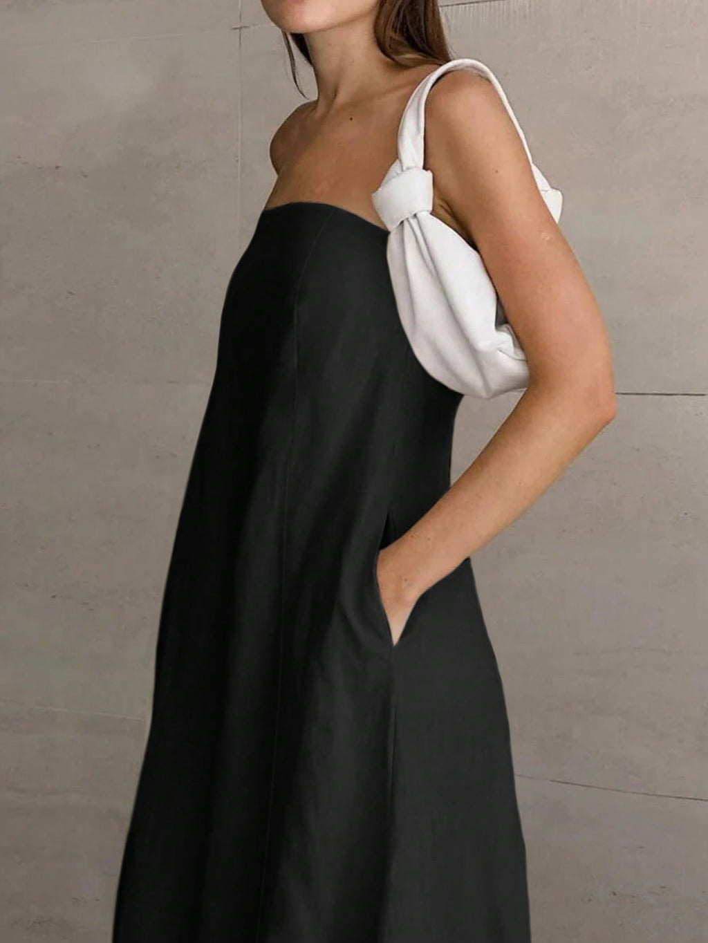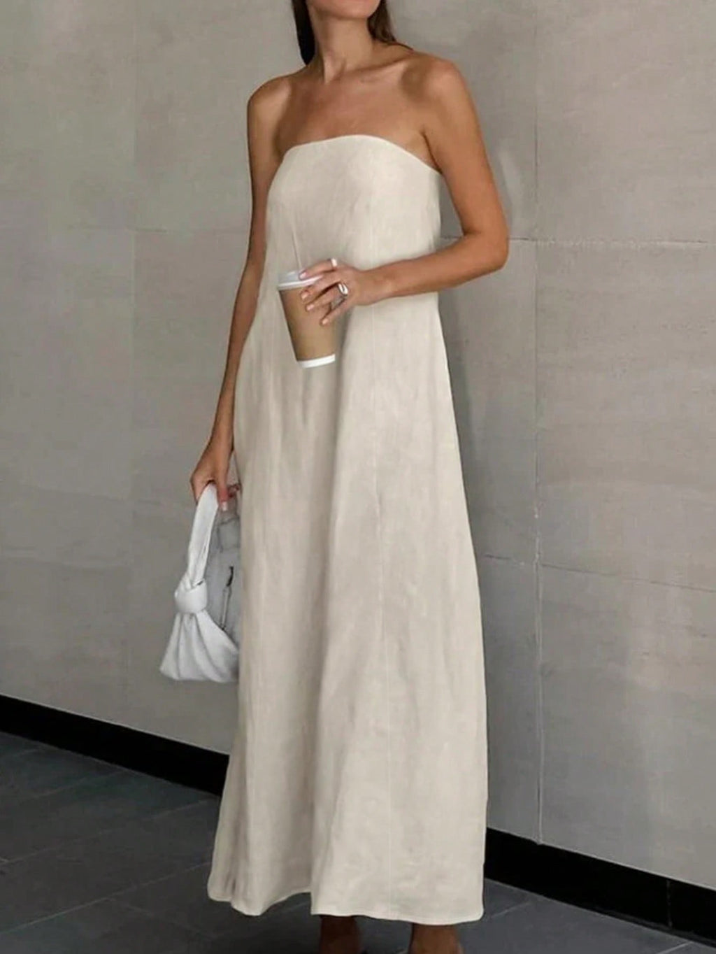BELLAVOG Plus Size Women Solid Color Bandeau Loose Casual Dress