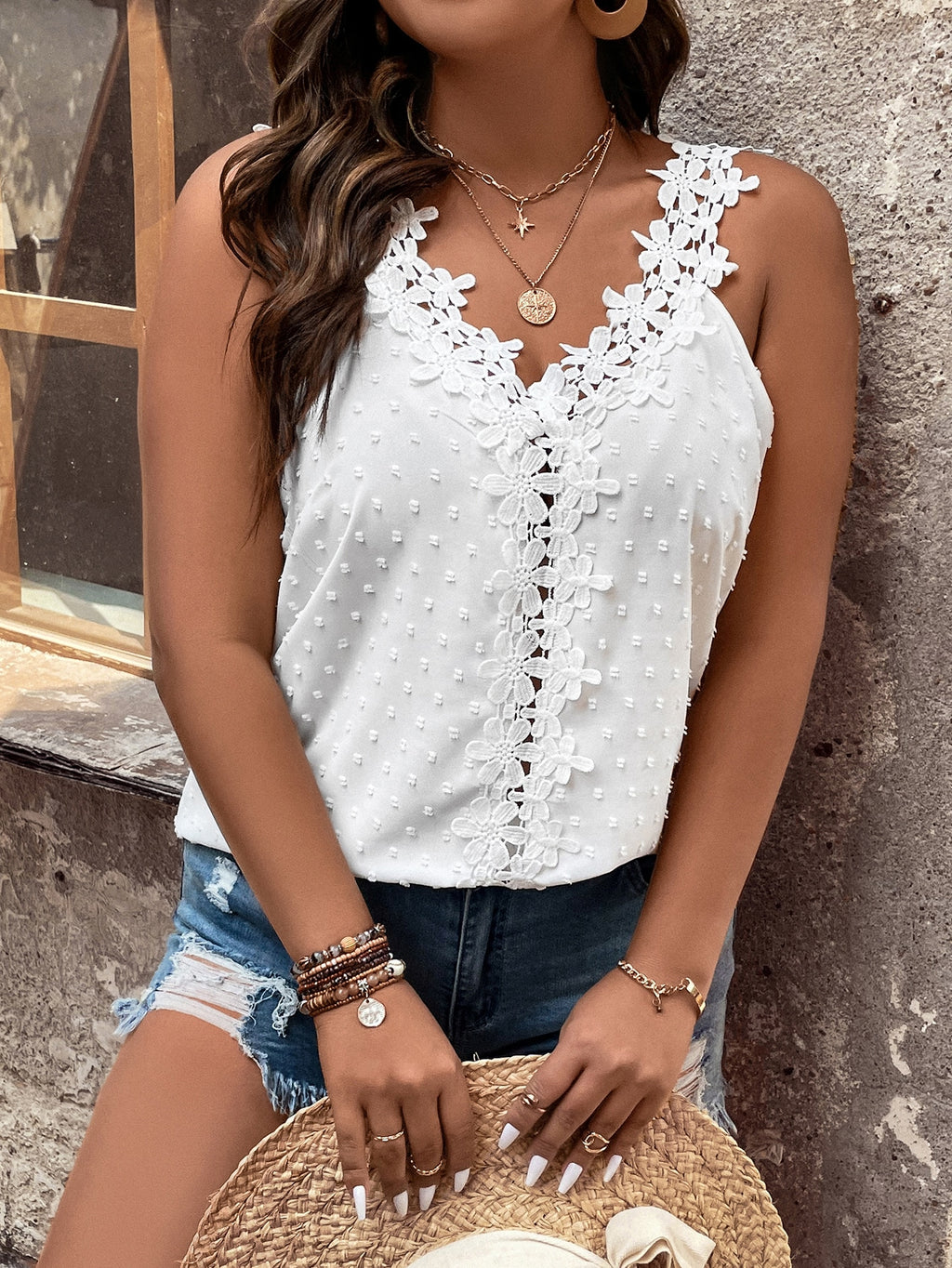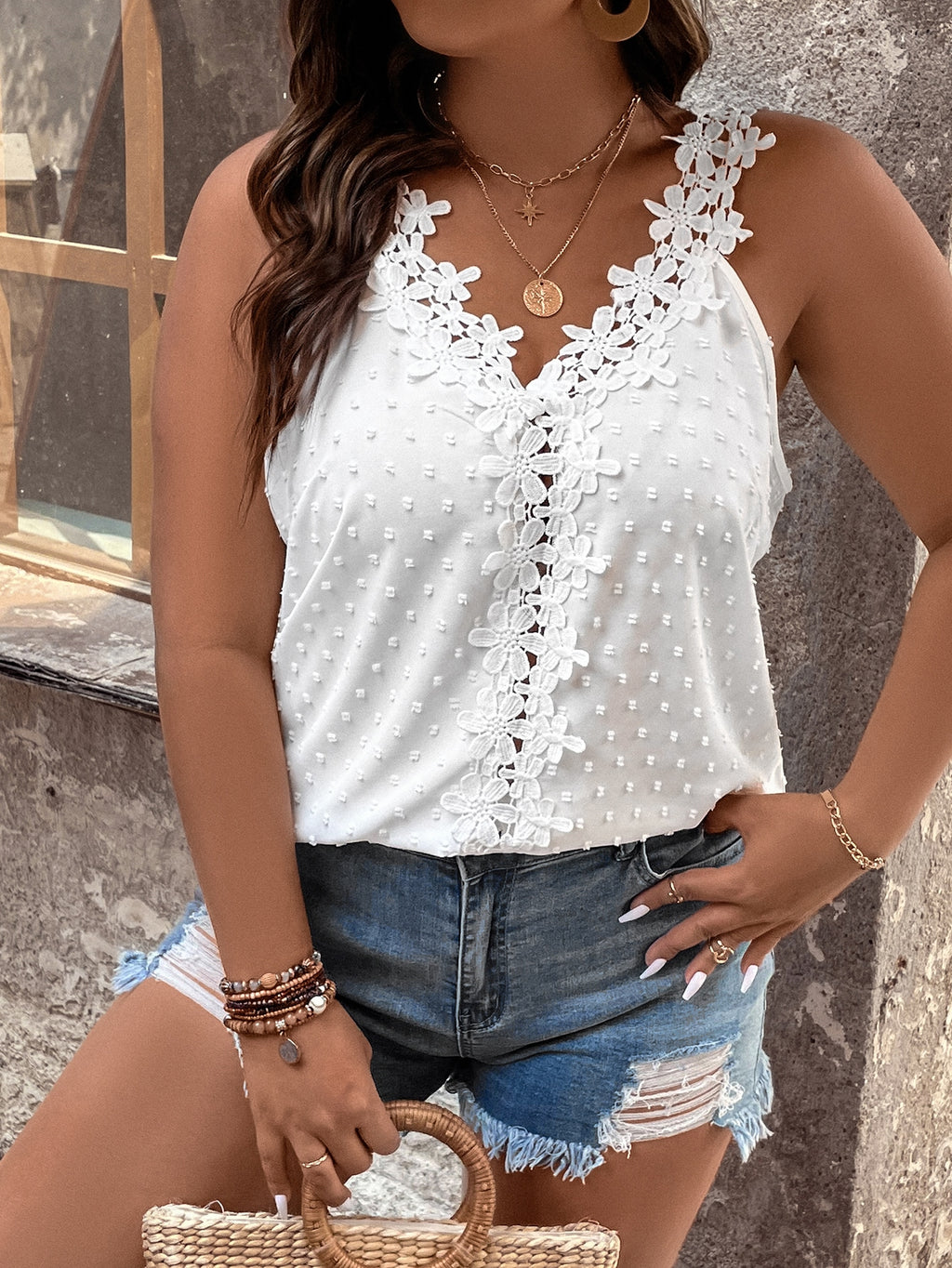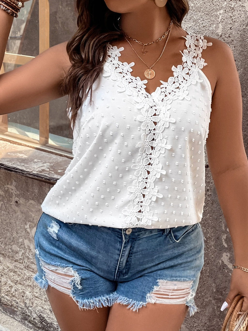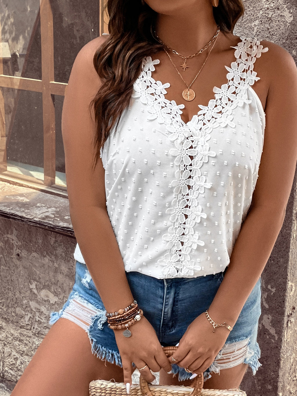 BELLAVOG Plus Swiss Dot Guipure Lace Panel Tank Top