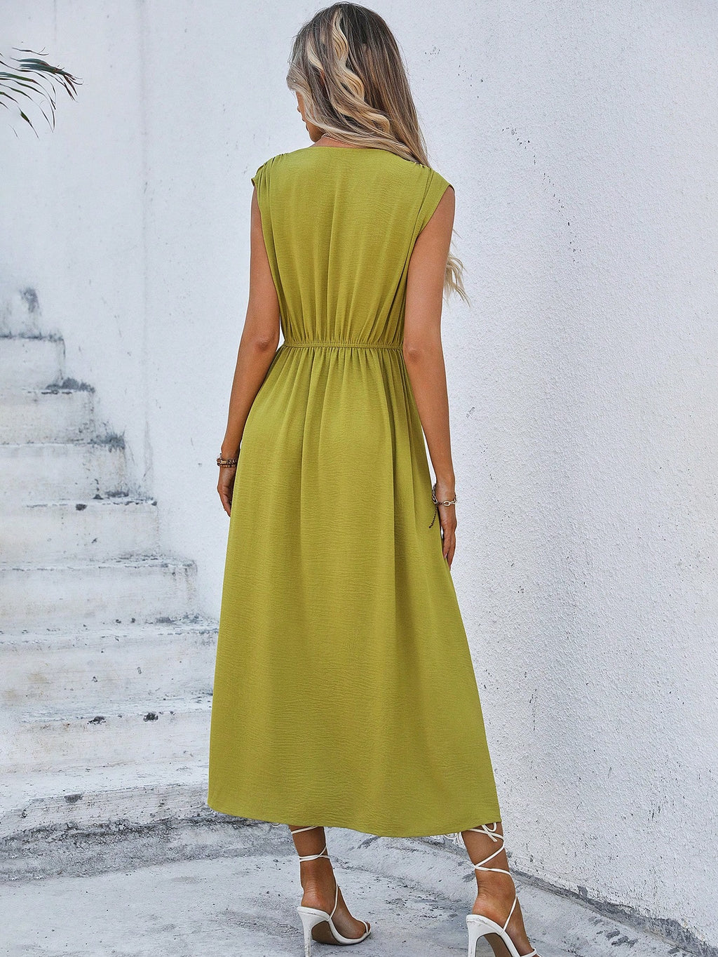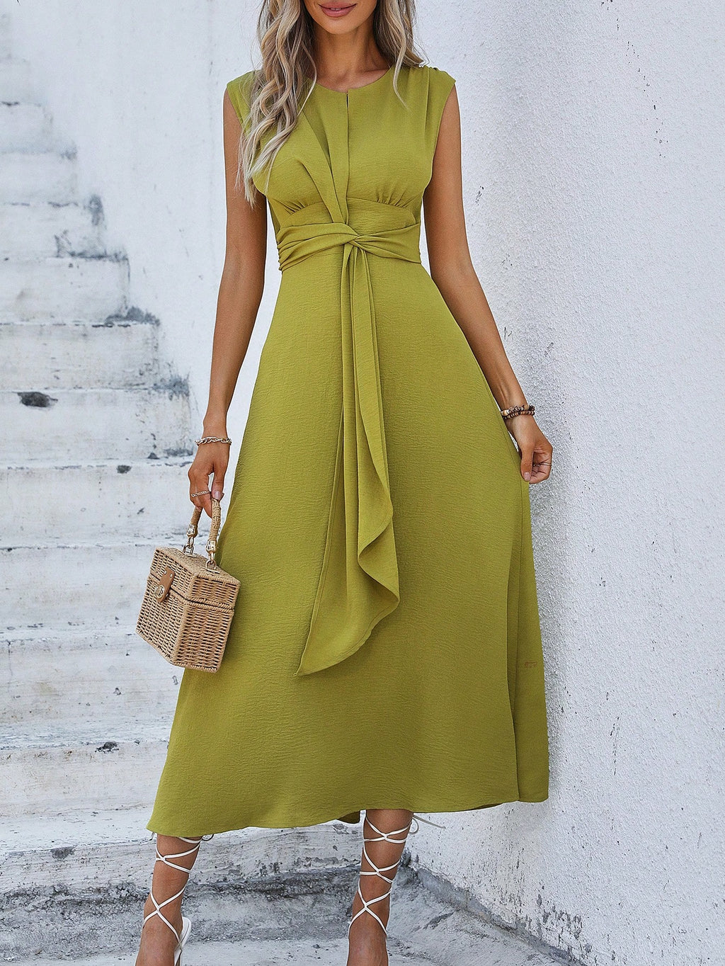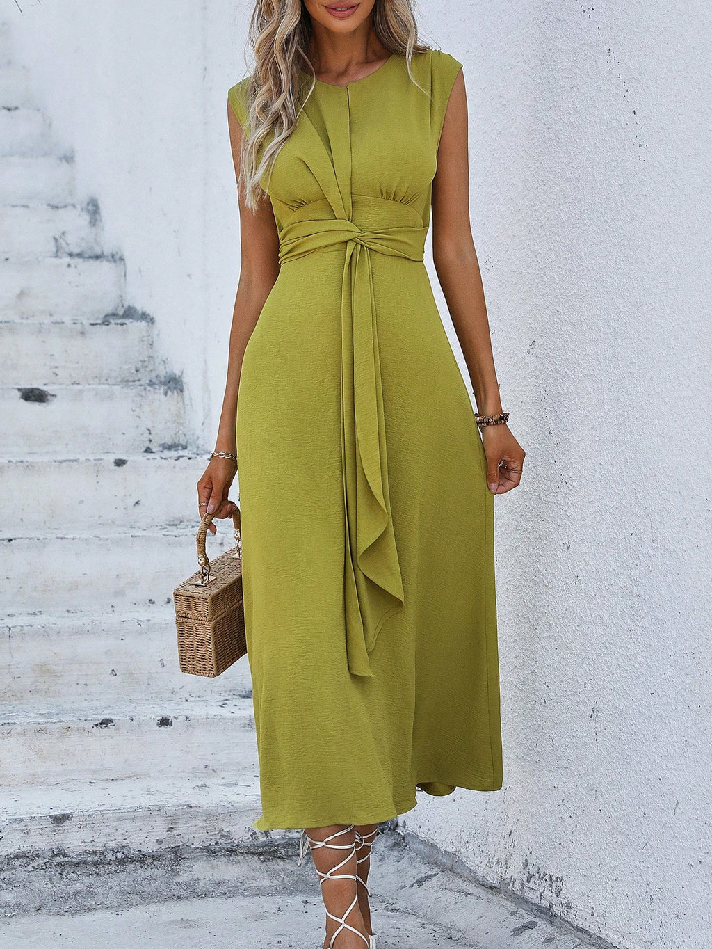 BELLAVOG Solid Tie Front Sleeveless A-Line Dress Maxi Women Outfit