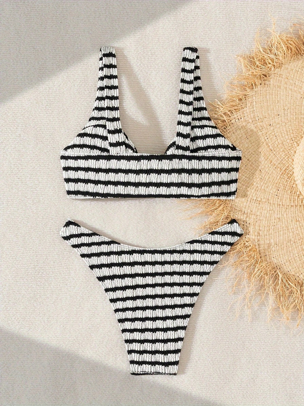 BELLAVOG Summer Beach Women's Striped Printed Vacation Style Bikini, Perfect Match