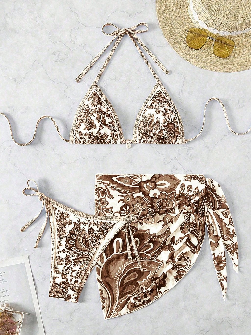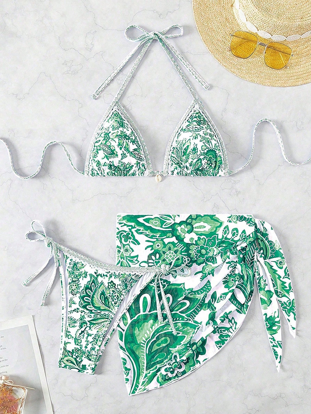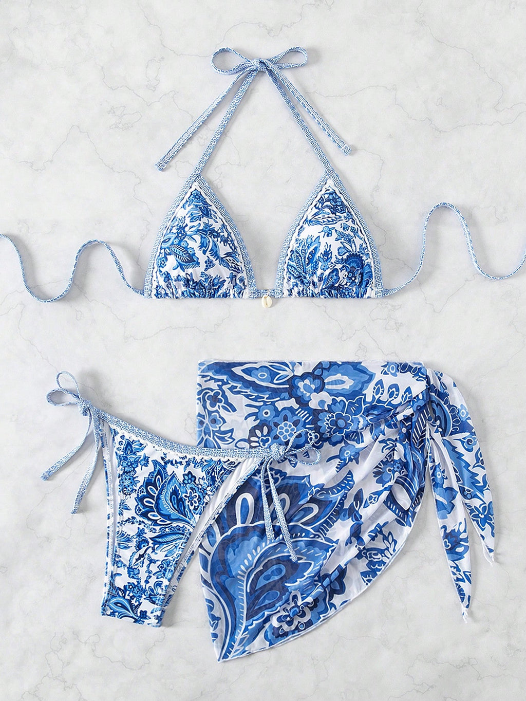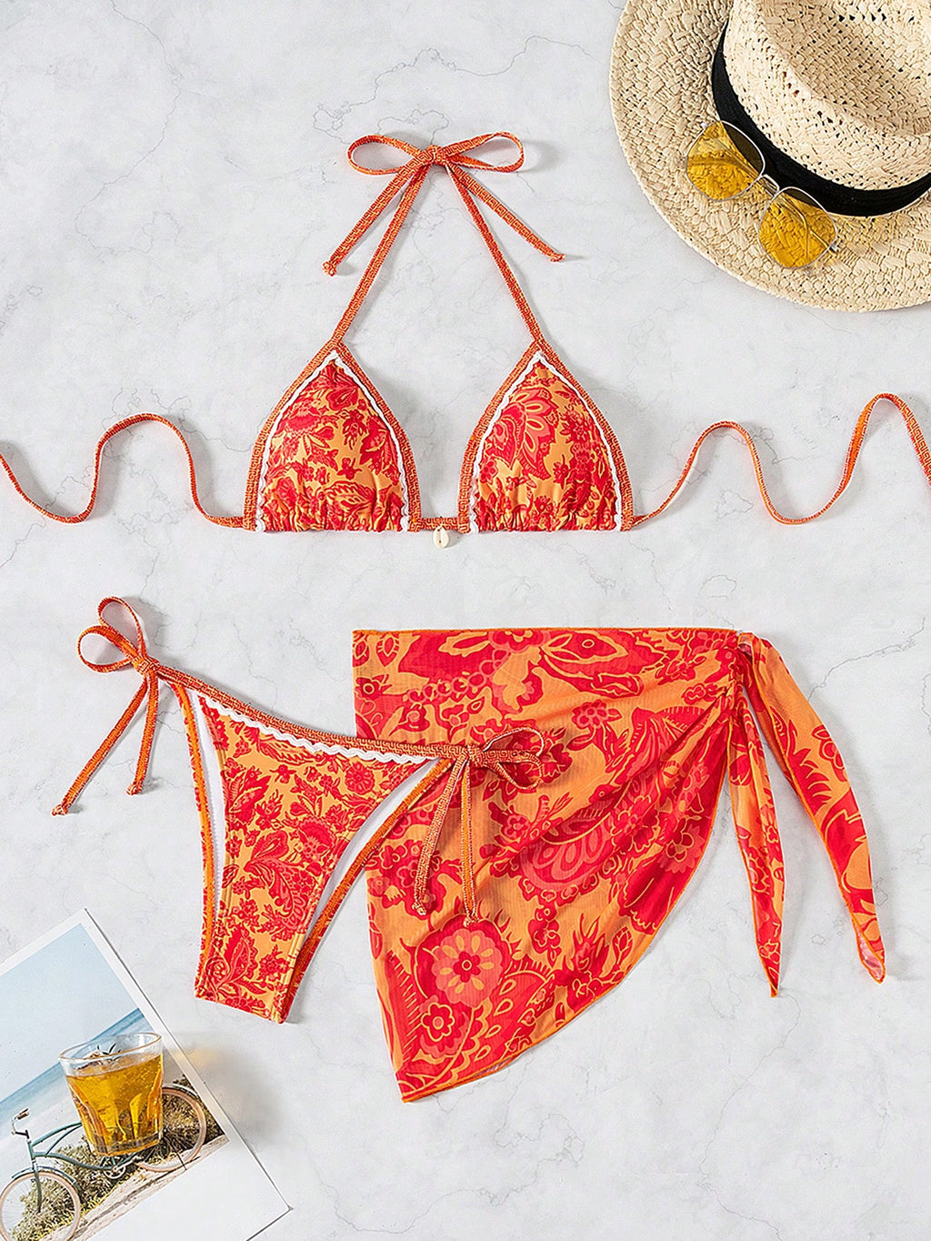 BELLAVOG Swim Vcay Swimsuits For Woman Summer Beach 3pcs/Set Women's Random Printed Bikini Set