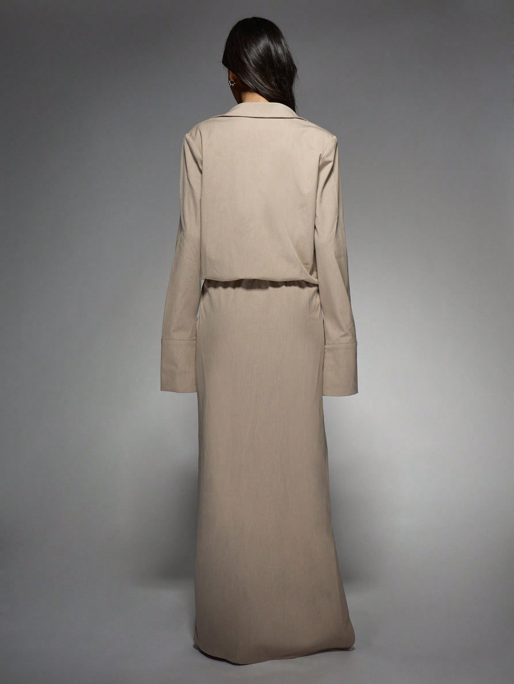 BELLAVOG Tailored Wrap Around Plunge Neck Long Sleeves Shirt Maxi Dress
