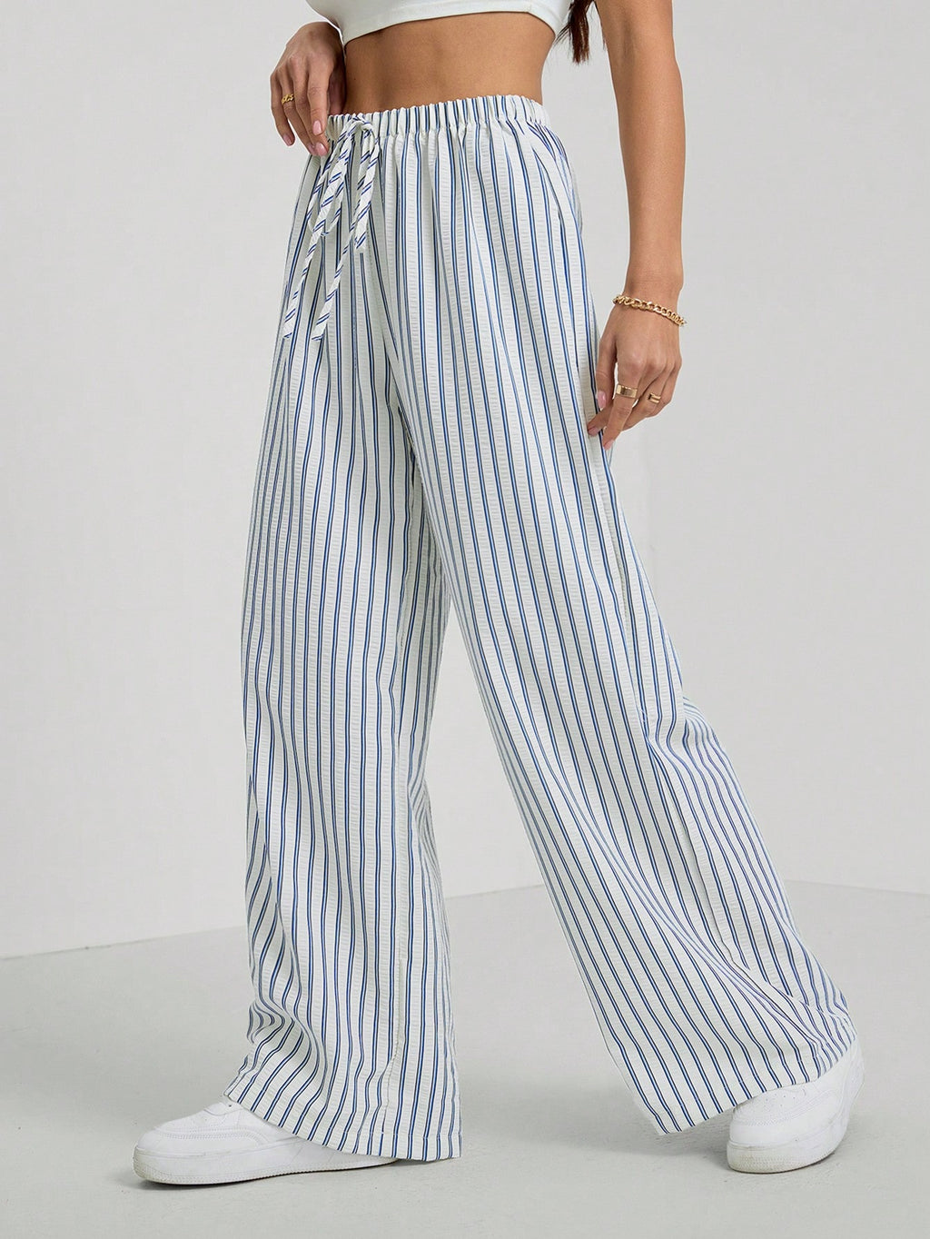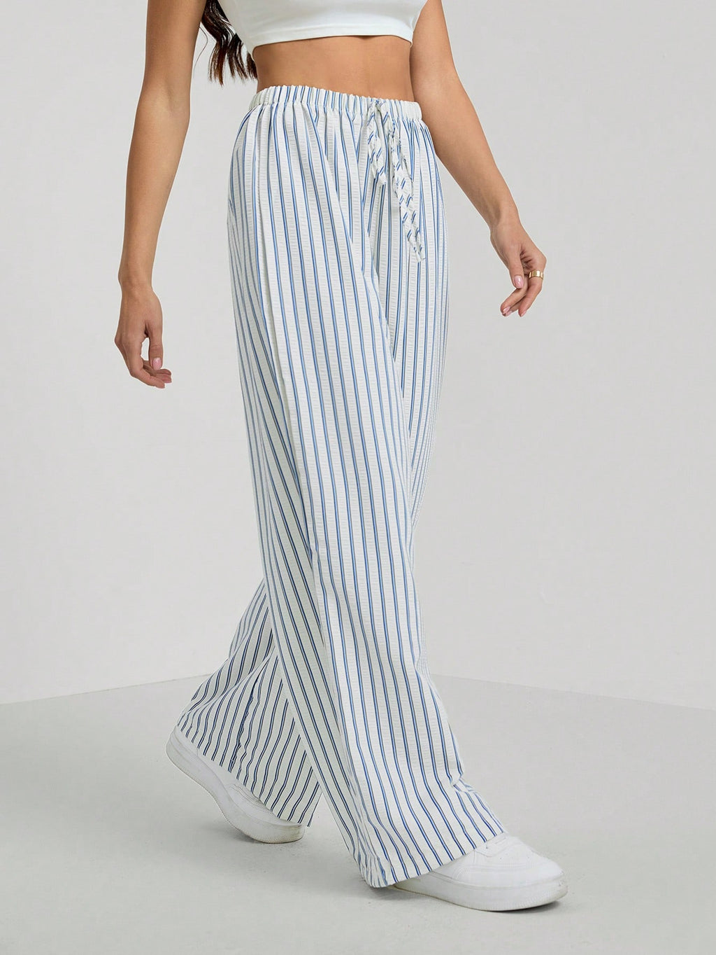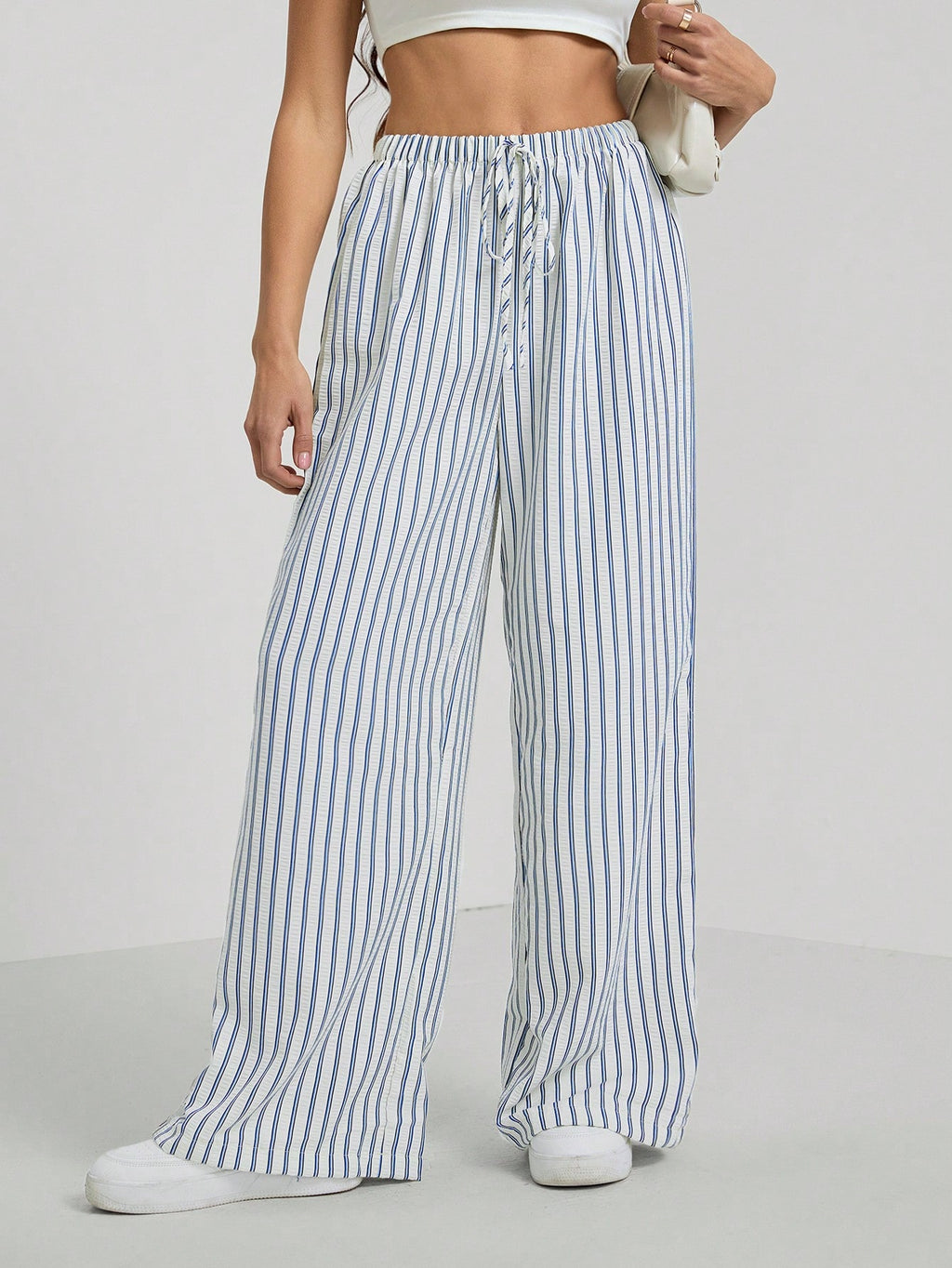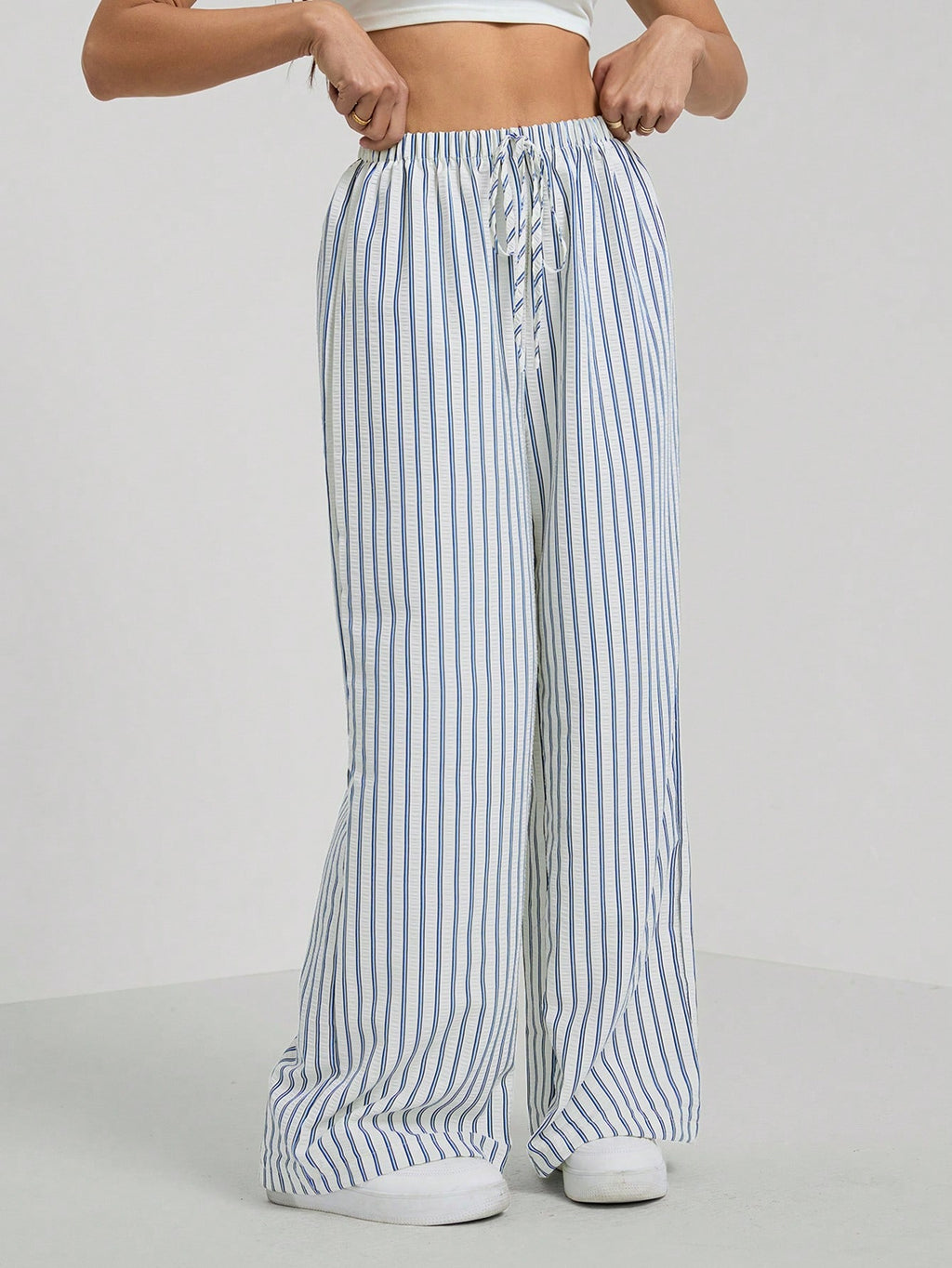 BELLAVOG Tall Loose Striped Wide-Leg Pants With Front Tie, Casual Wear