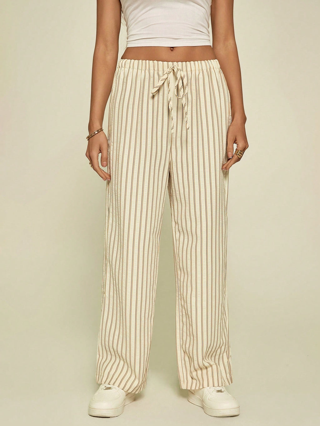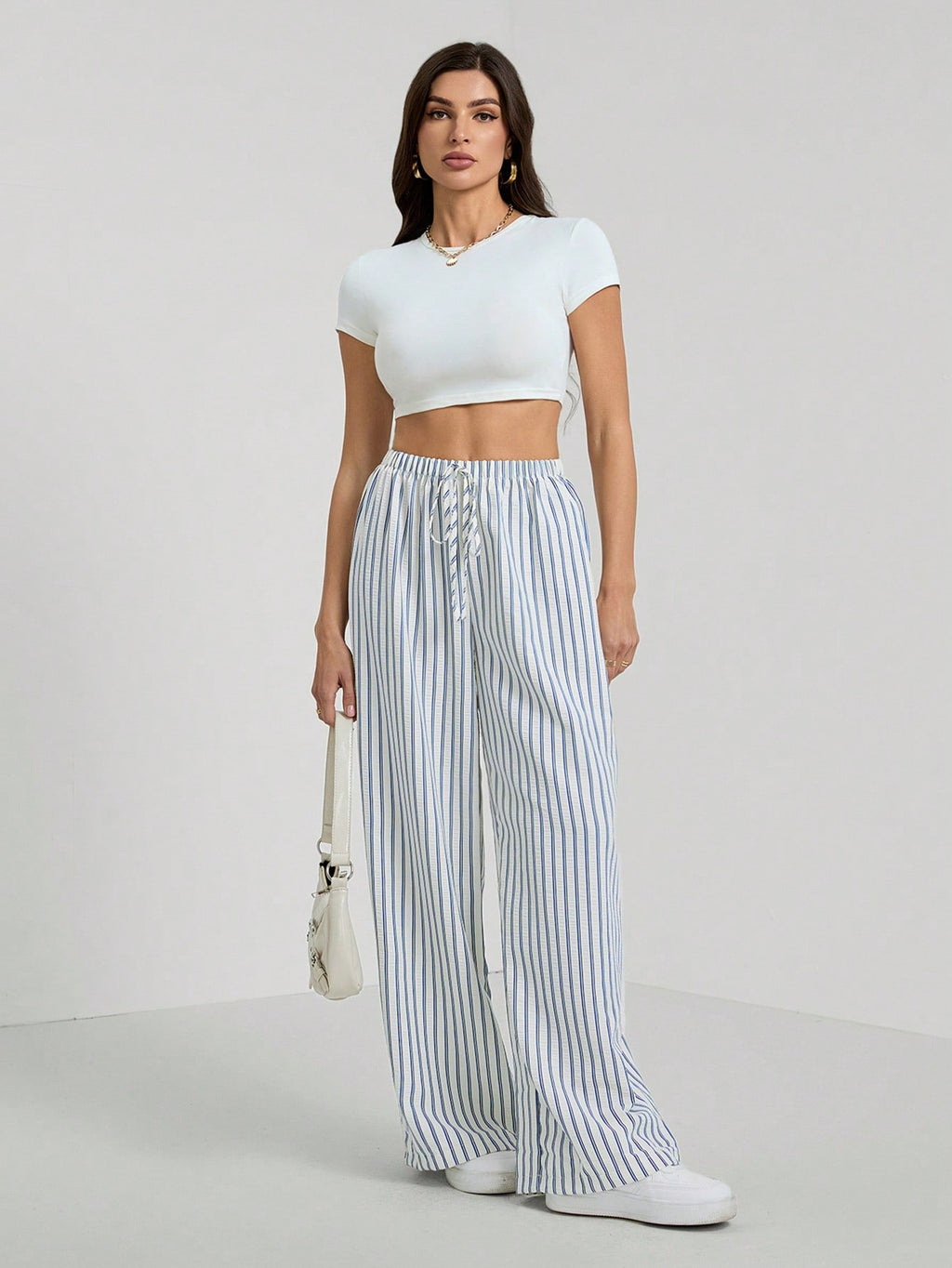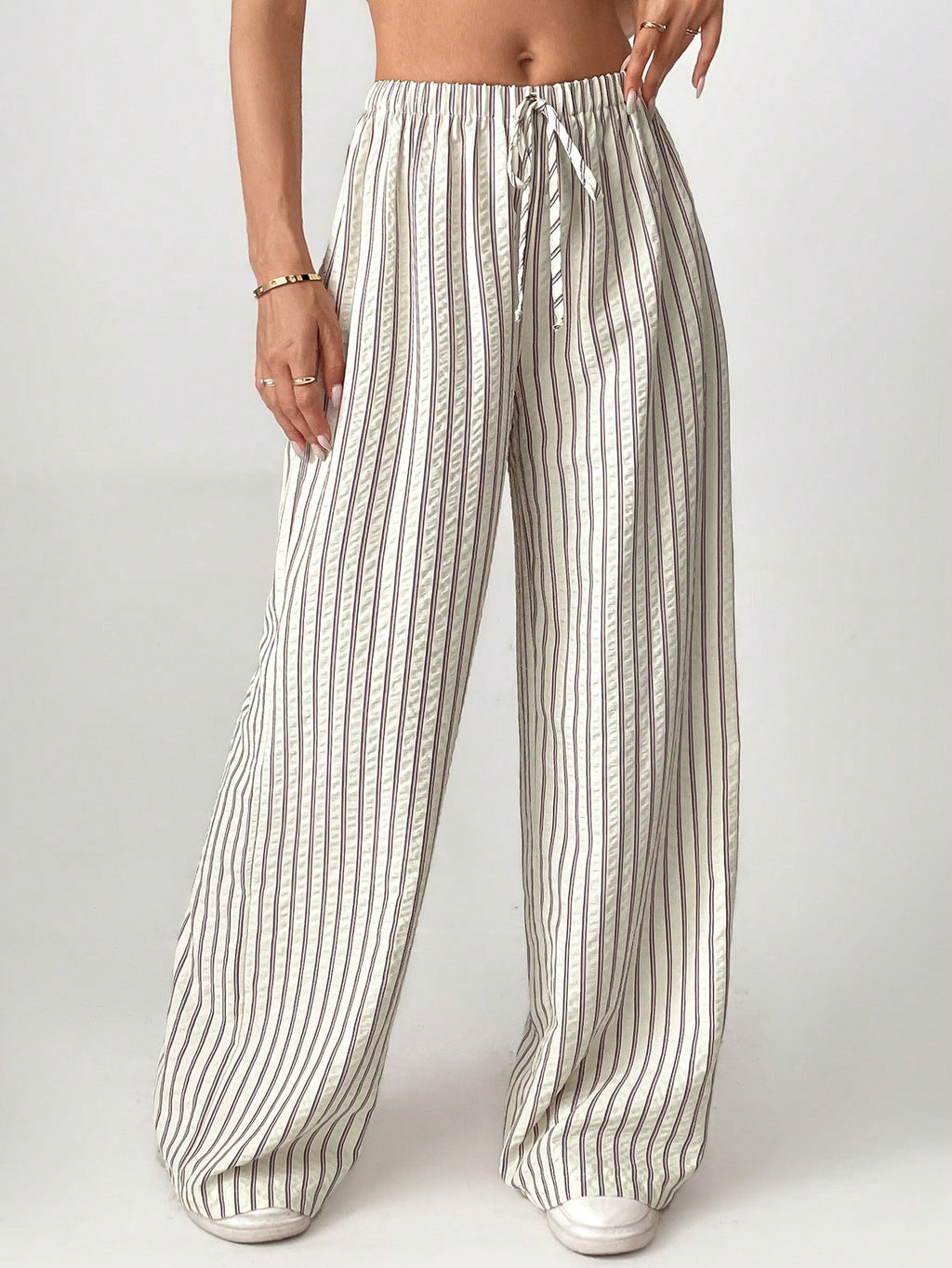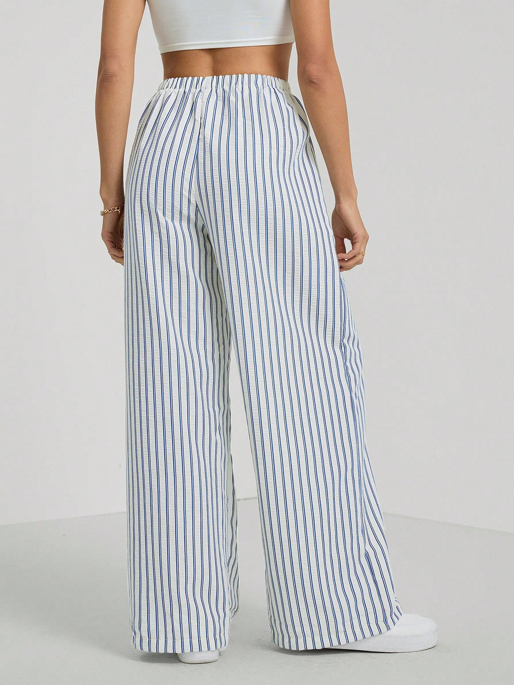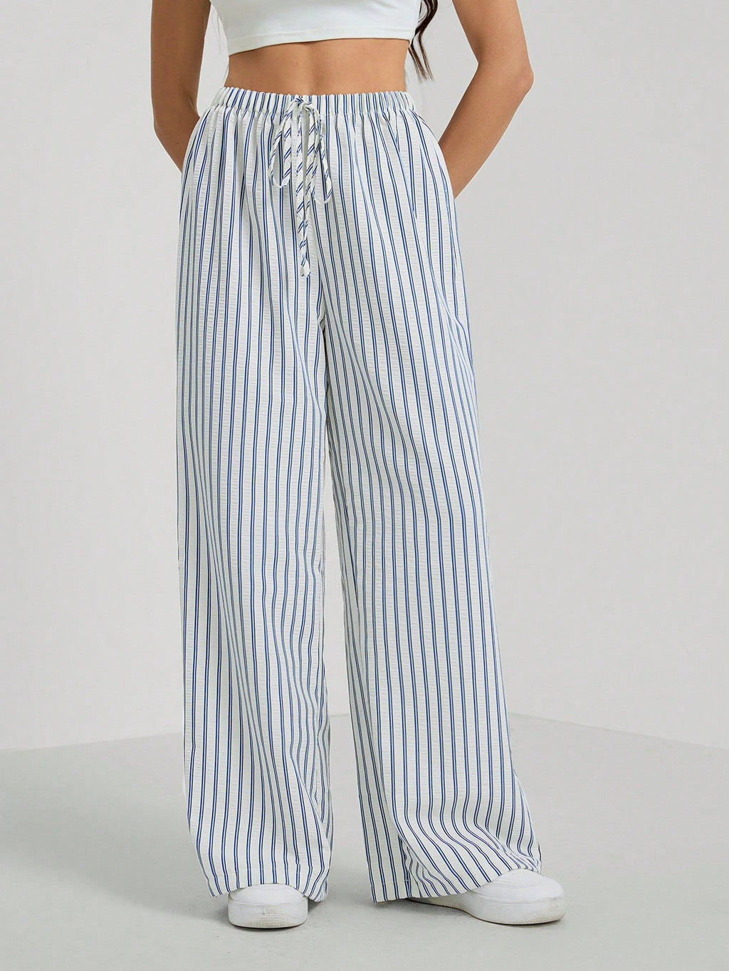BELLAVOG Tall Loose Striped Wide-Leg Pants With Front Tie, Casual Wear