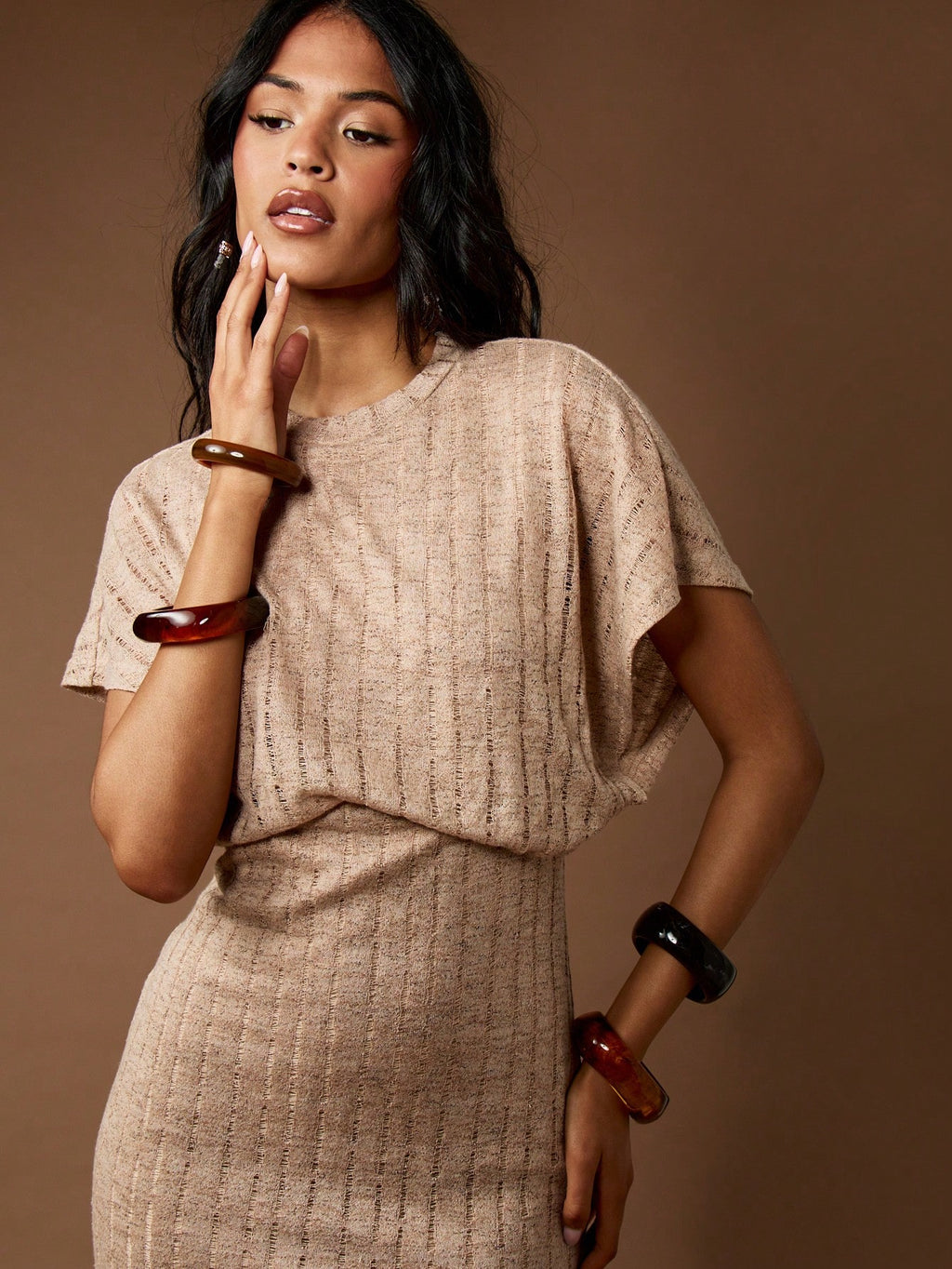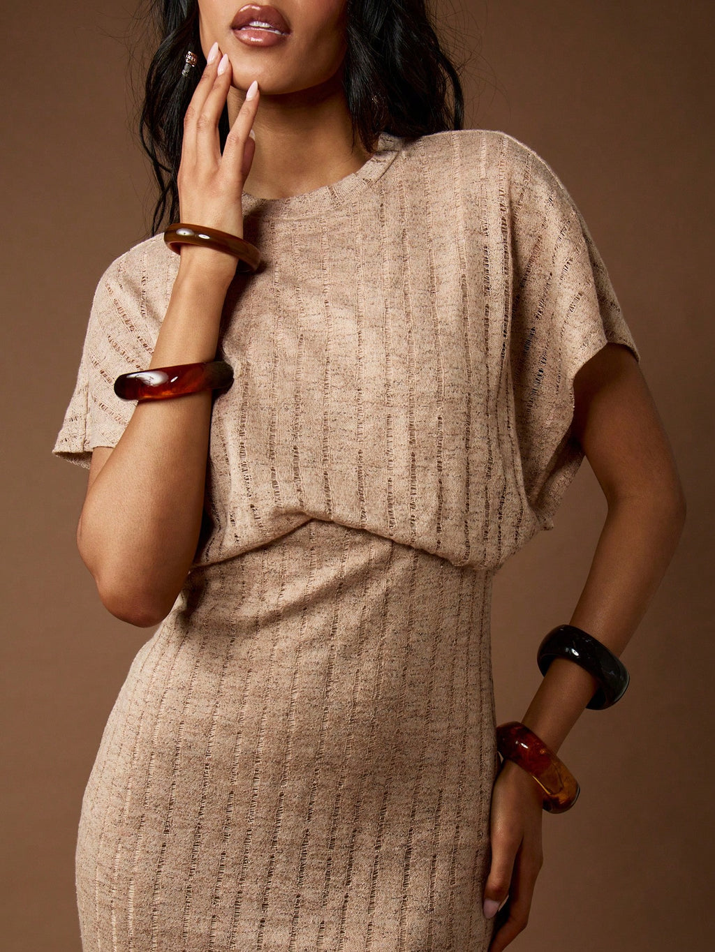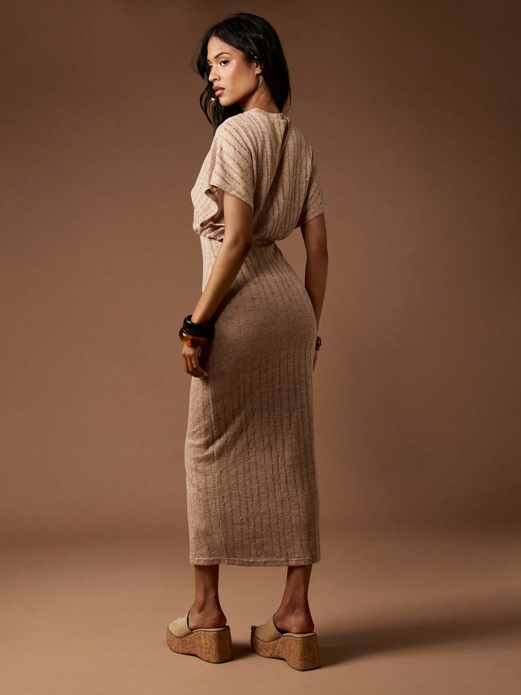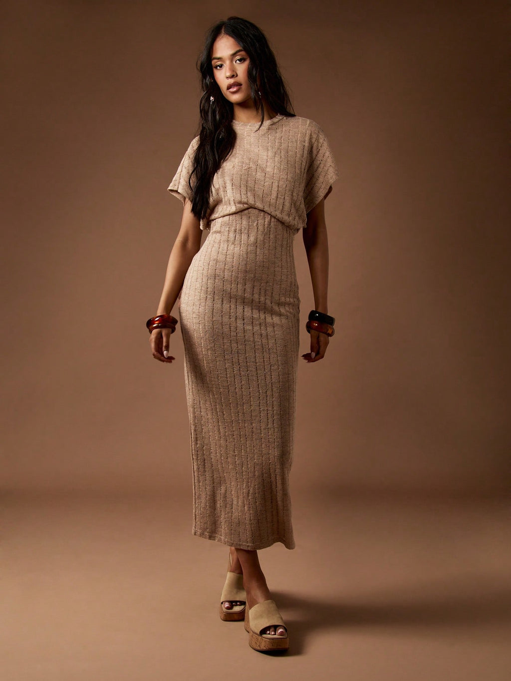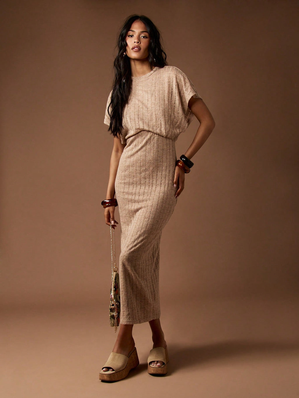 BELLAVOG Textured Ribbed Knit Midaxi Dress Dolman Sleeve Cinched Waist Autumn Winter Resort Wear Casual Day Long Dress