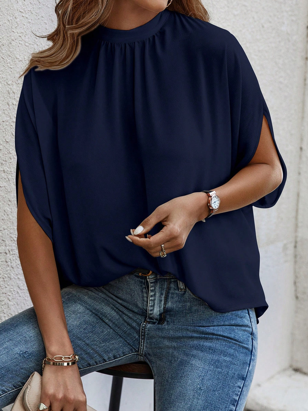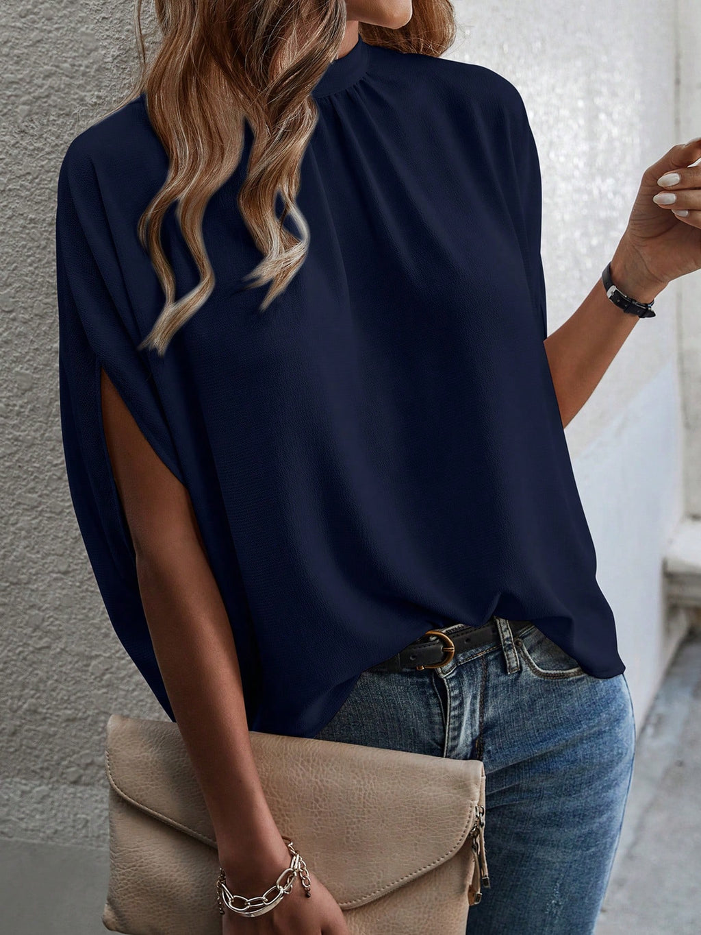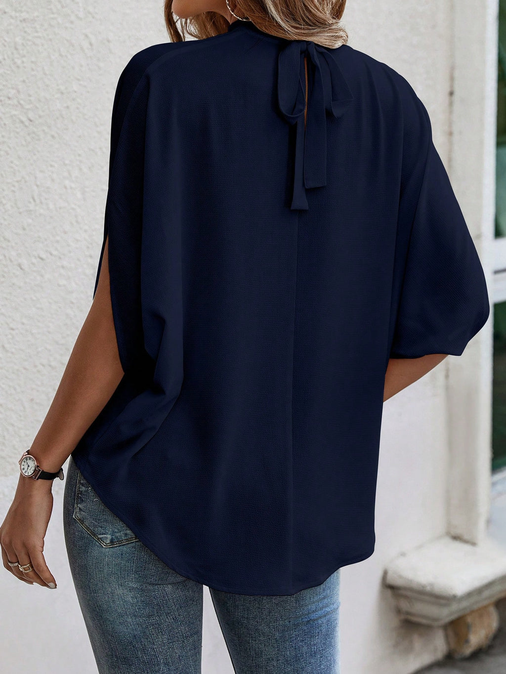 BELLAVOG Tie Back Batwing Sleeve Solid Blouse