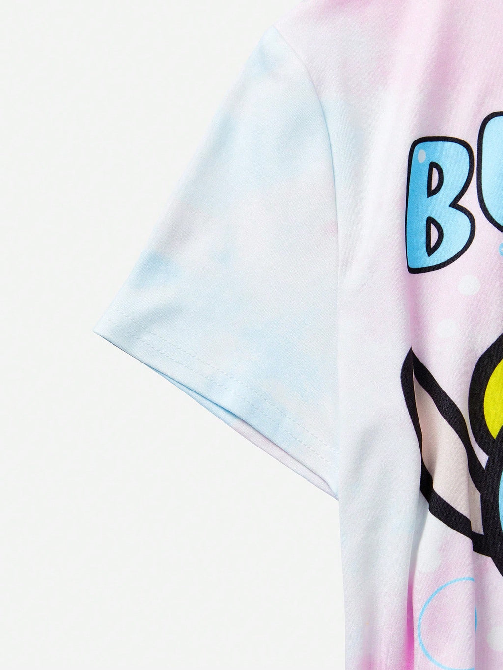 BELLAVOG Tween Girl Cartoon Character Tie-Dye Bubble Print Sweet Short Sleeve Top
