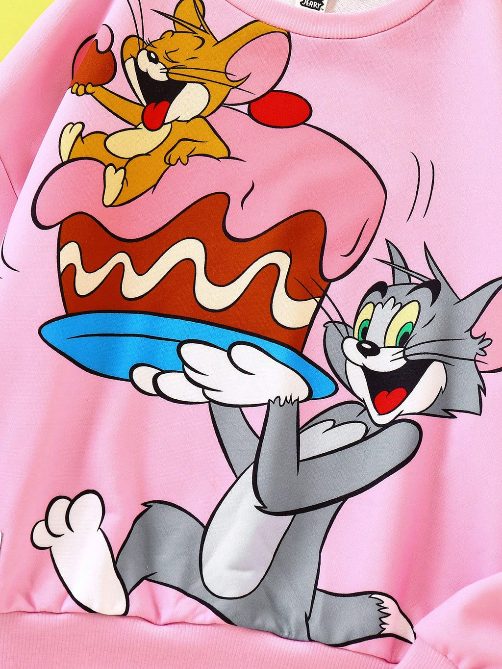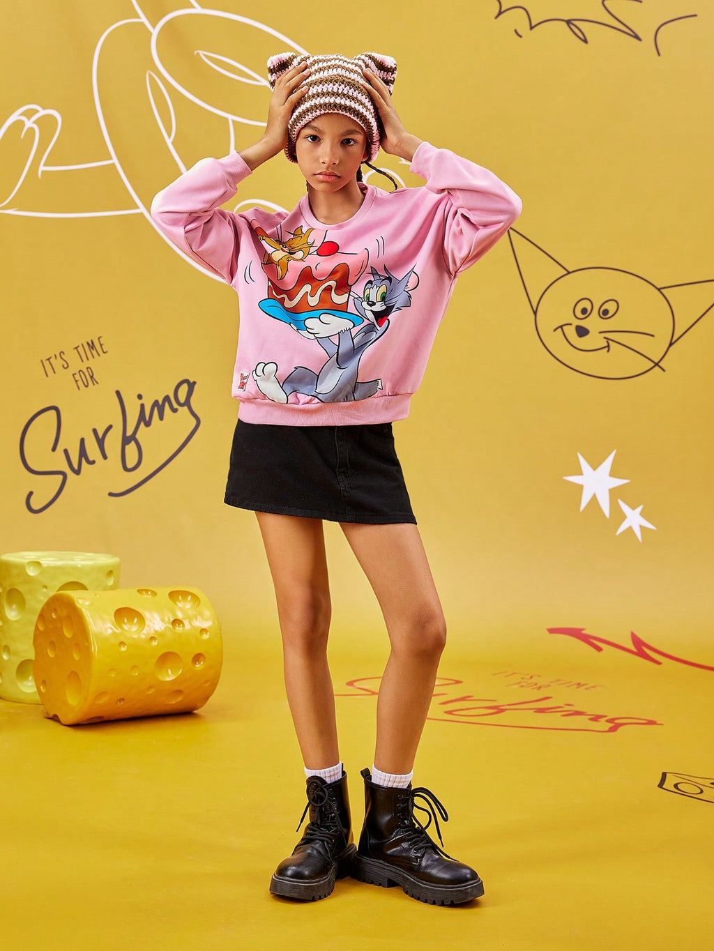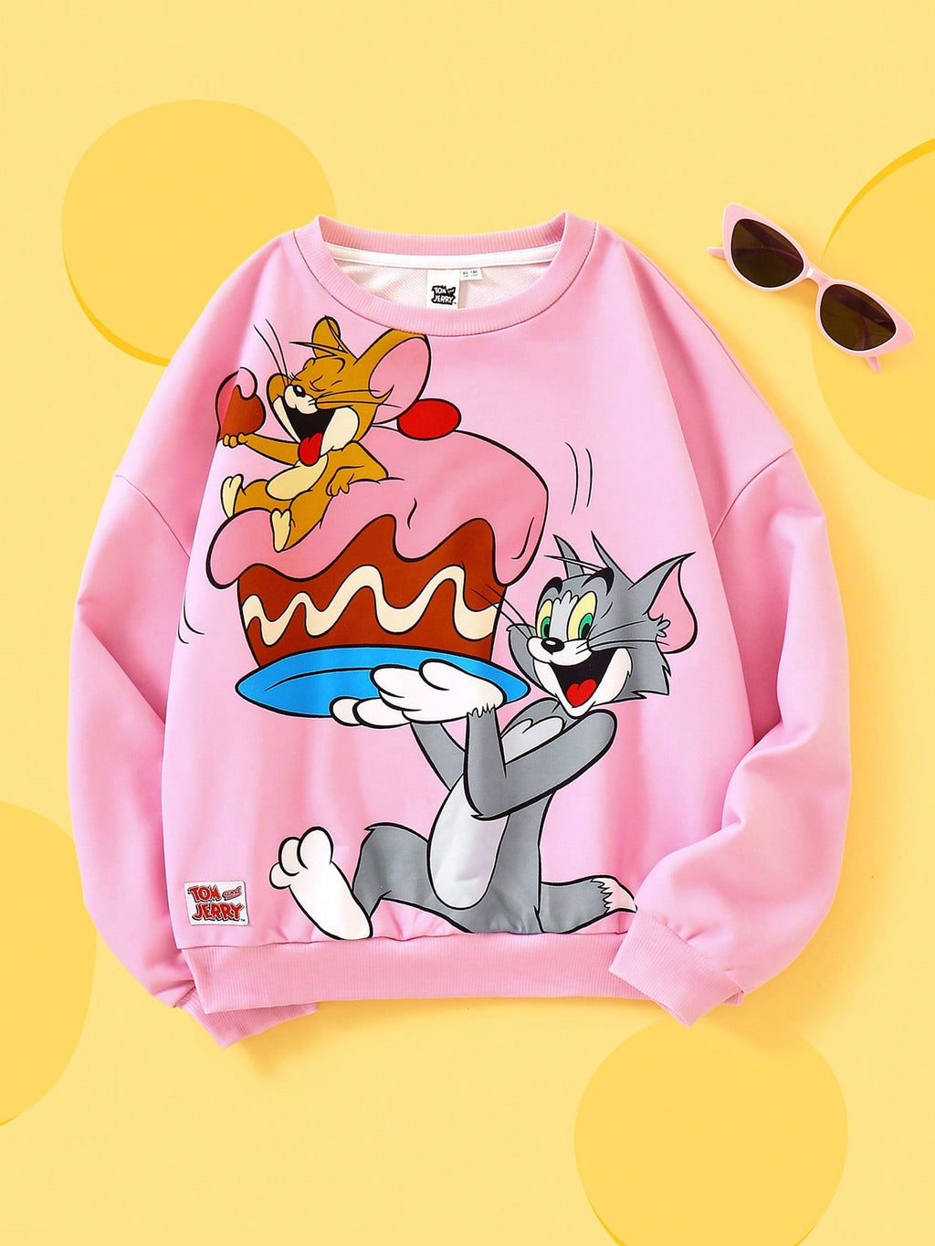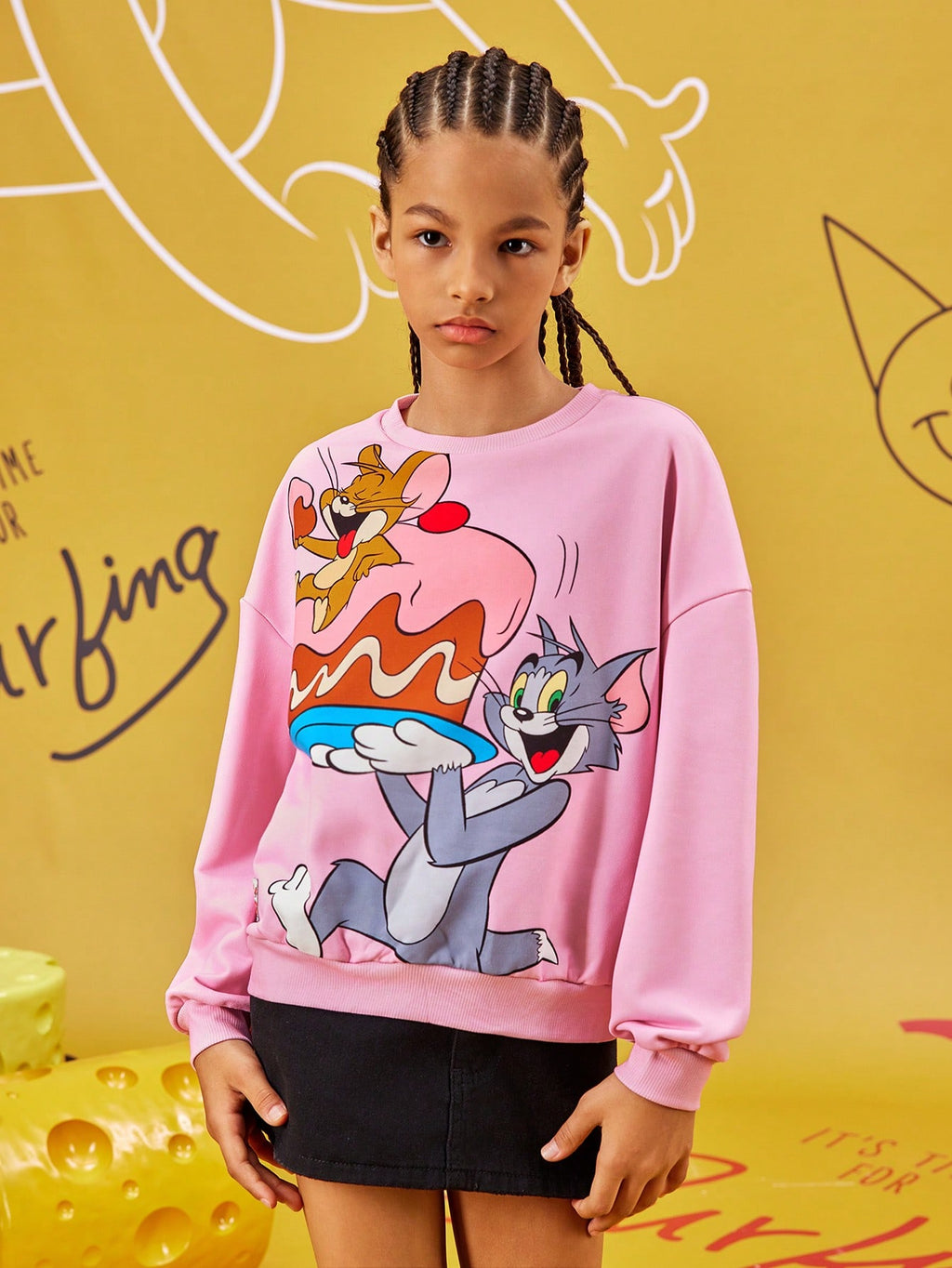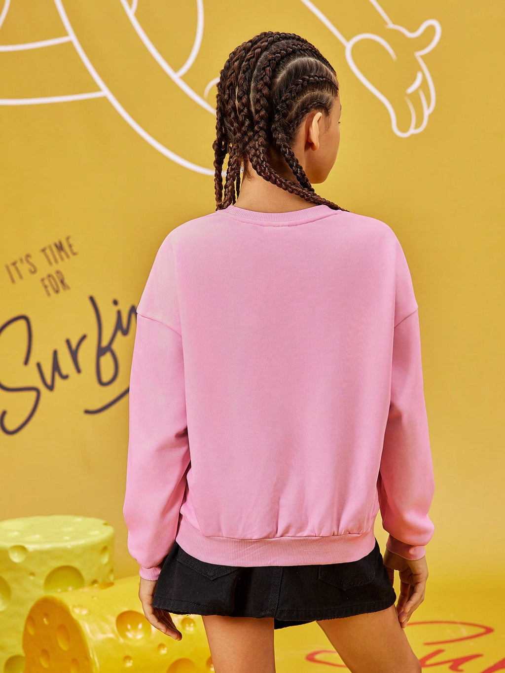 BELLAVOG Tween Girl Cartoon Printed Pink Casual Loose Drop Shoulder Sweatshirt